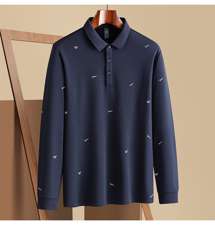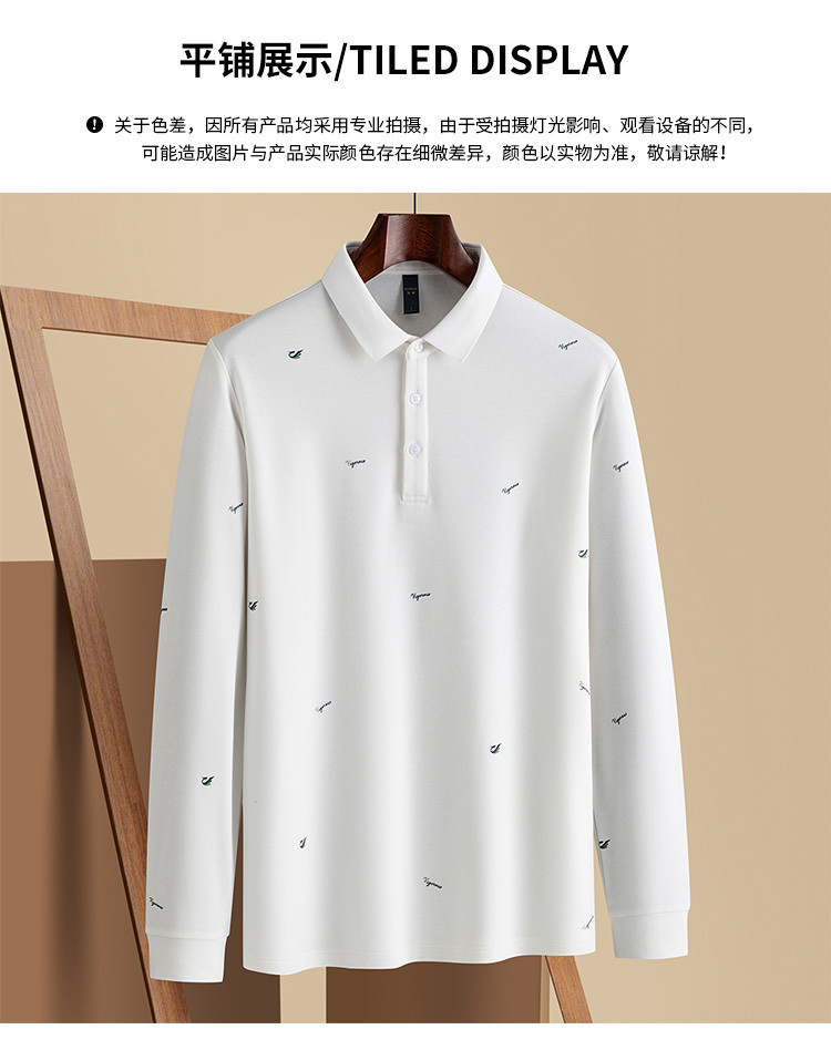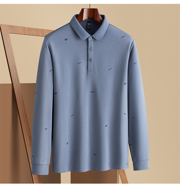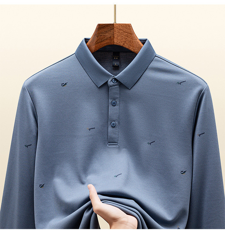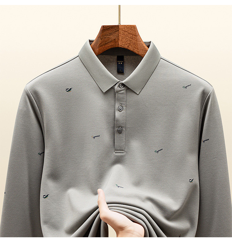 罗蒙秋冬男士Polo衫满印含羊毛蚕丝休闲百搭双面磨毛polo衫男长袖t恤男