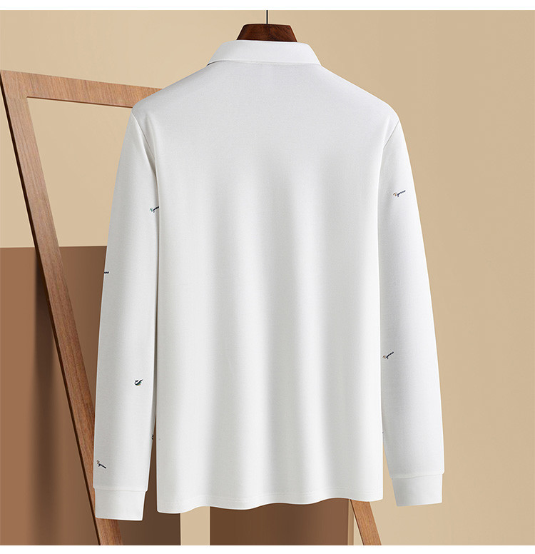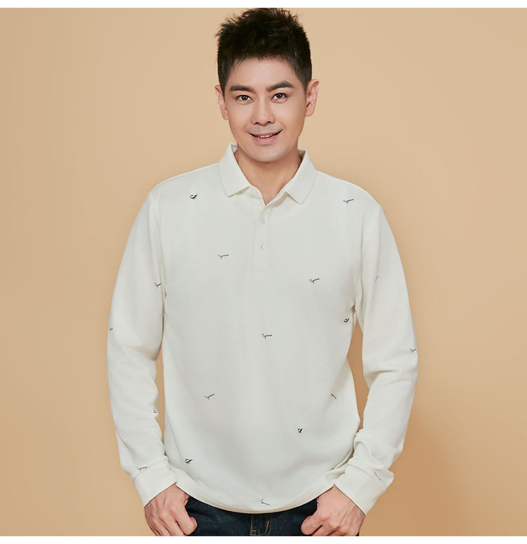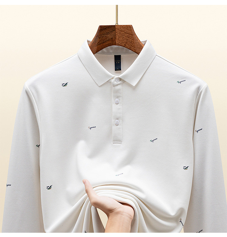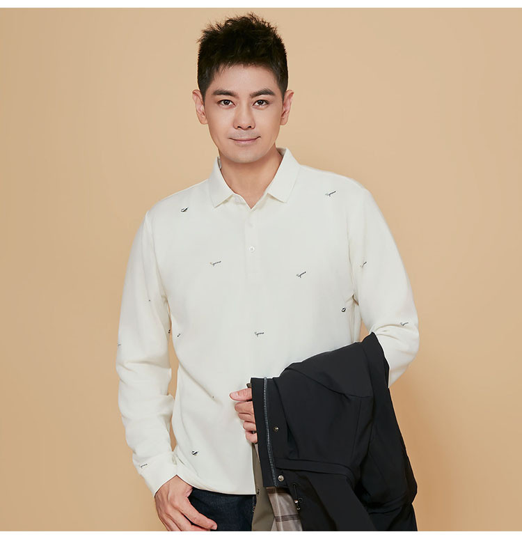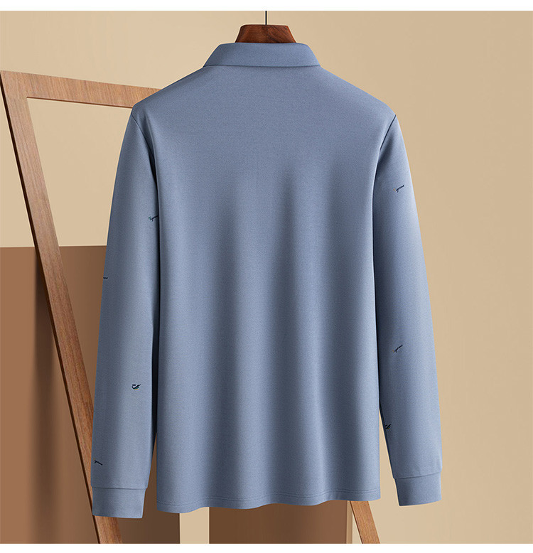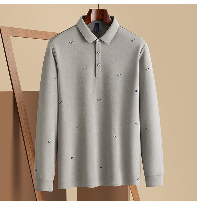 罗蒙秋冬男士Polo衫满印含羊毛蚕丝休闲百搭双面磨毛polo衫男长袖t恤男