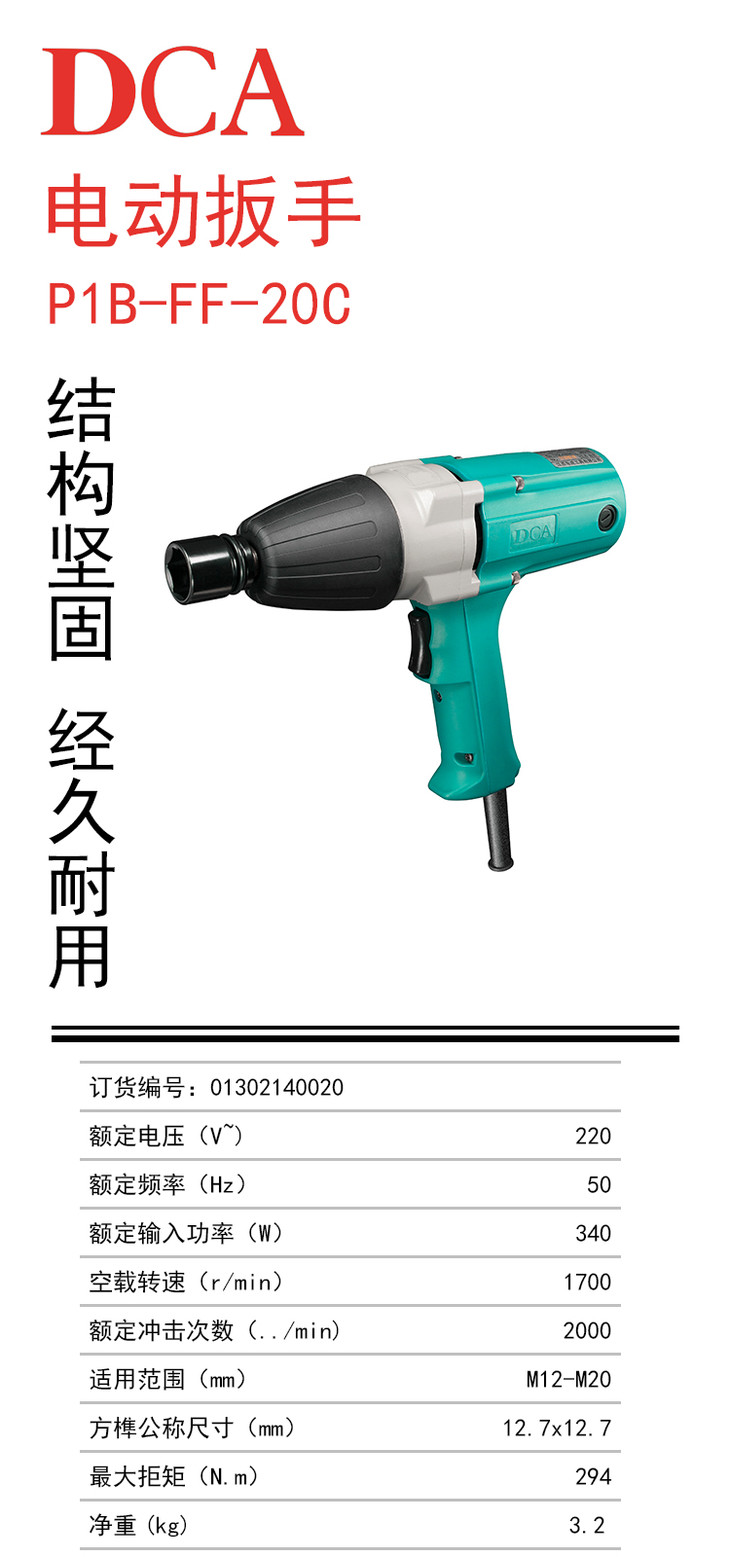 P1B-FF-20C 东成(DCA)电动扳手 340W 最大扭矩 294N