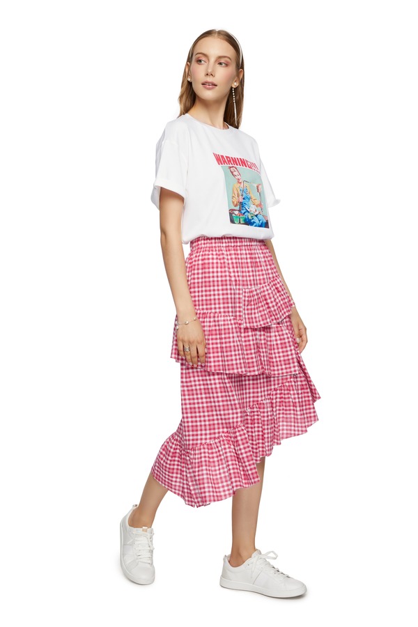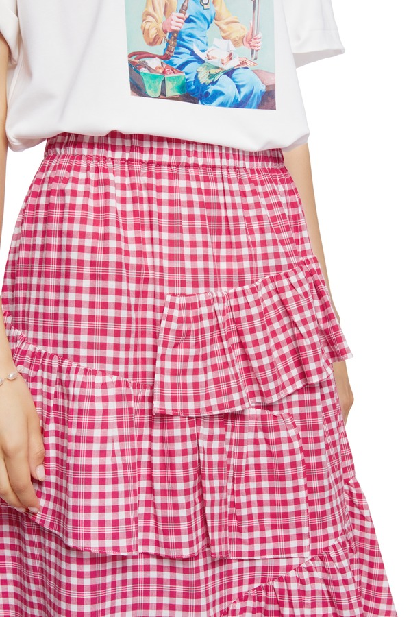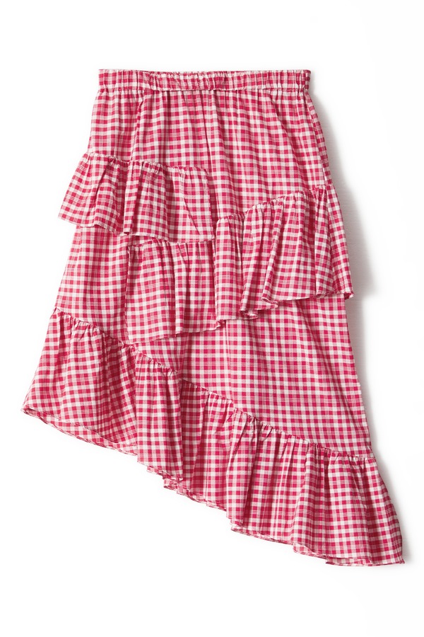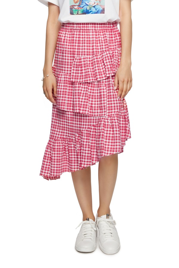 SUMMER & SAGE 红色格纹不规则蛋糕裙 6840
