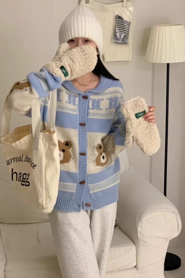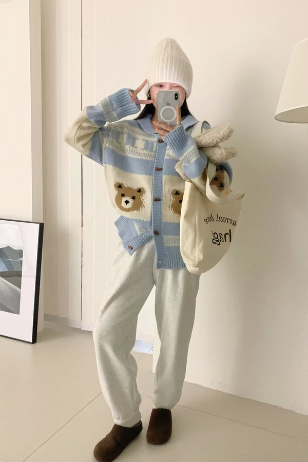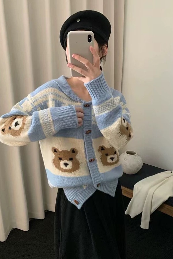 Stay2Weeks 韩系小熊提花休闲洋气羊毛开衫 21919