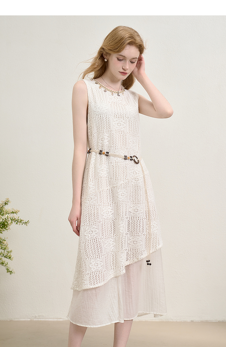 西遇民族风无袖背心裙女夏季新款波西米亚镂空旅游连衣裙K0051013/H0051131