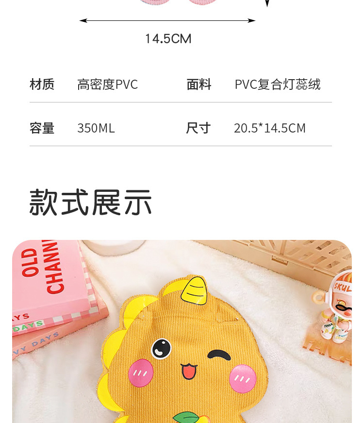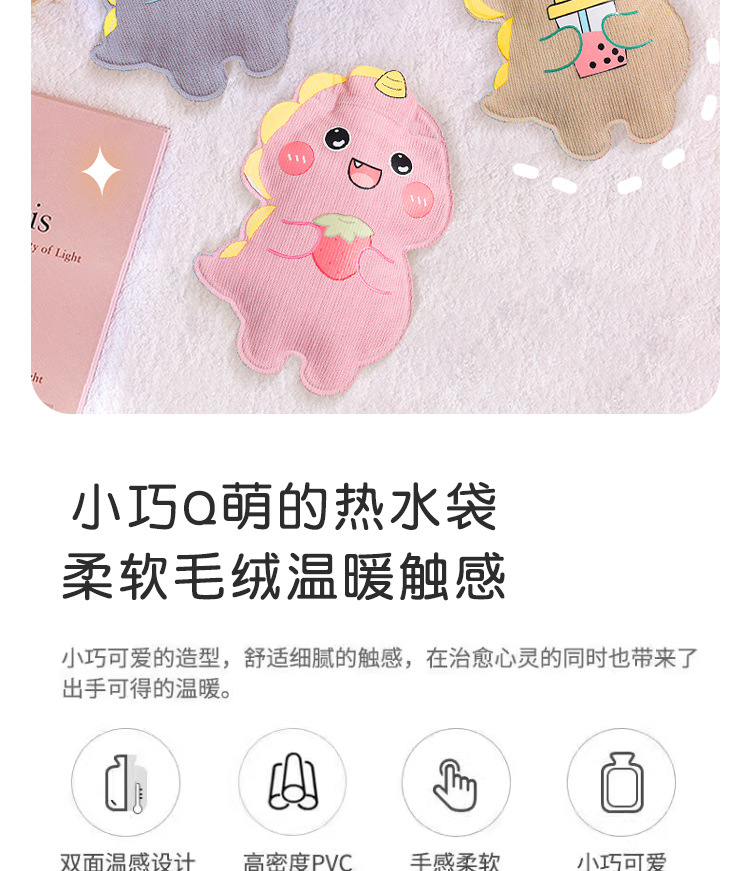 新品福利!15.9/1个!【萌趣恐龙!卡通注水热水袋】恐龙暖手宝,Q萌可爱。热水注入,舒适触感。持久保温,随身便携。少女心毛绒材质,让你暖心暖手,放飞自我!