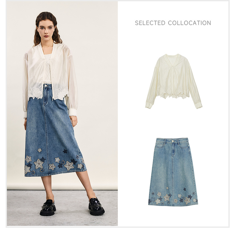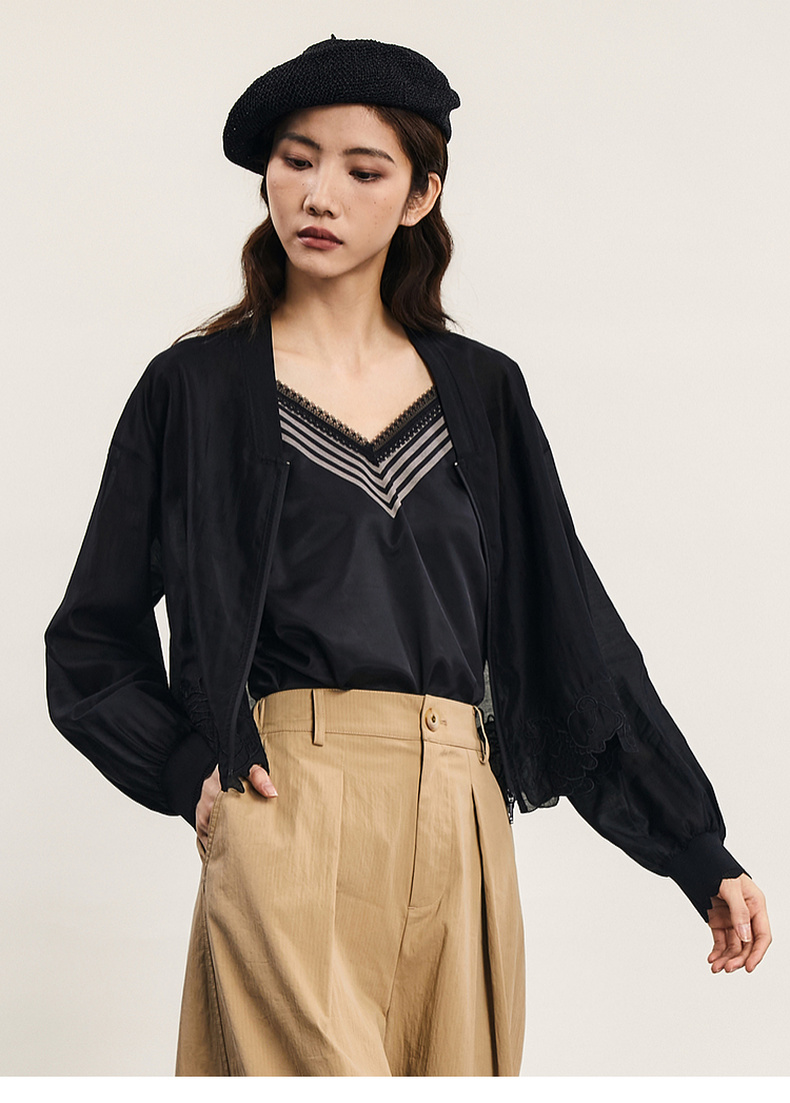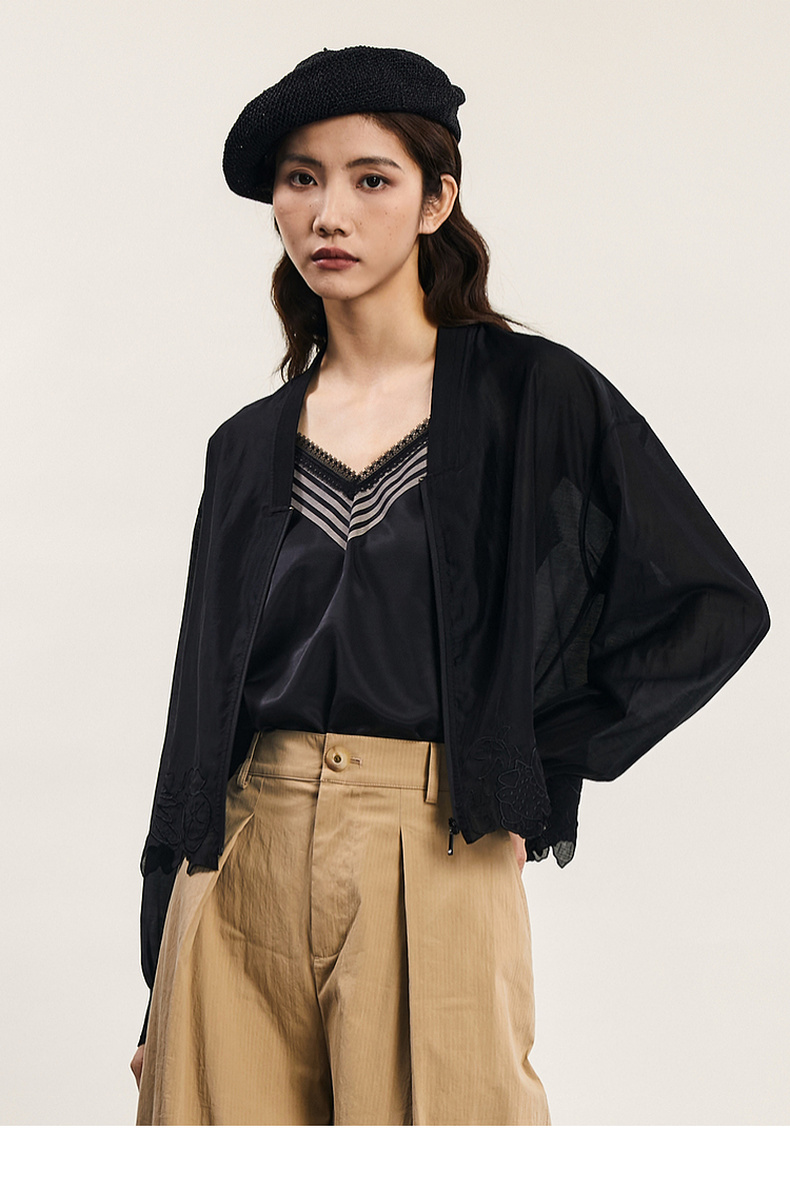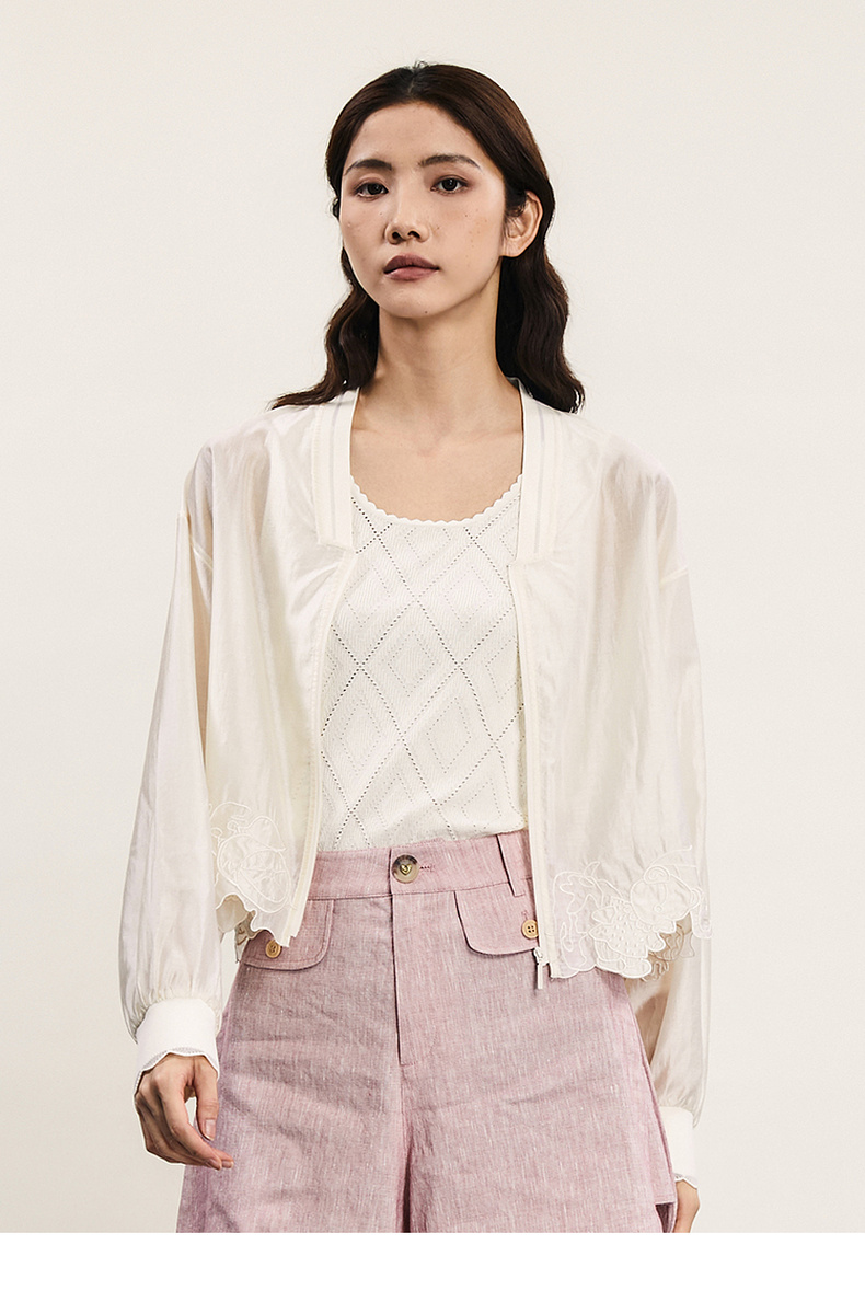谜底短外套长袖女2024年夏新品设计感百搭下摆绣花薄款242MW0632
