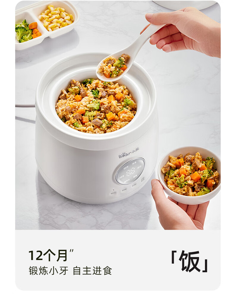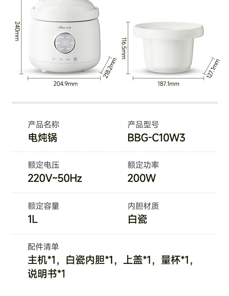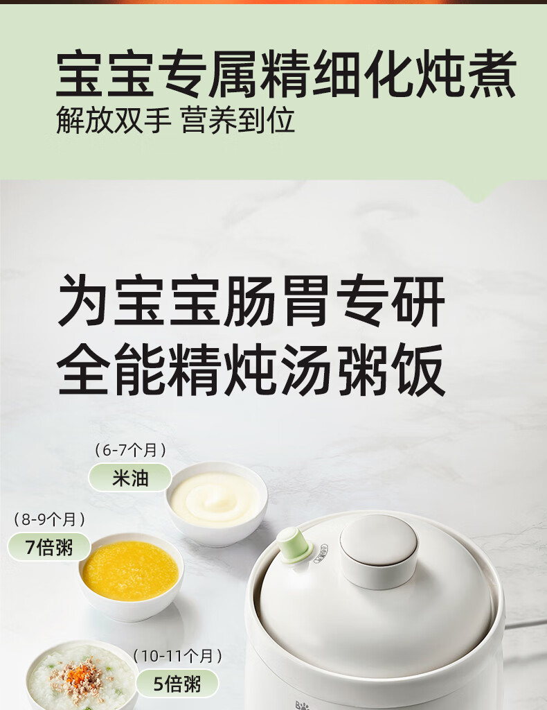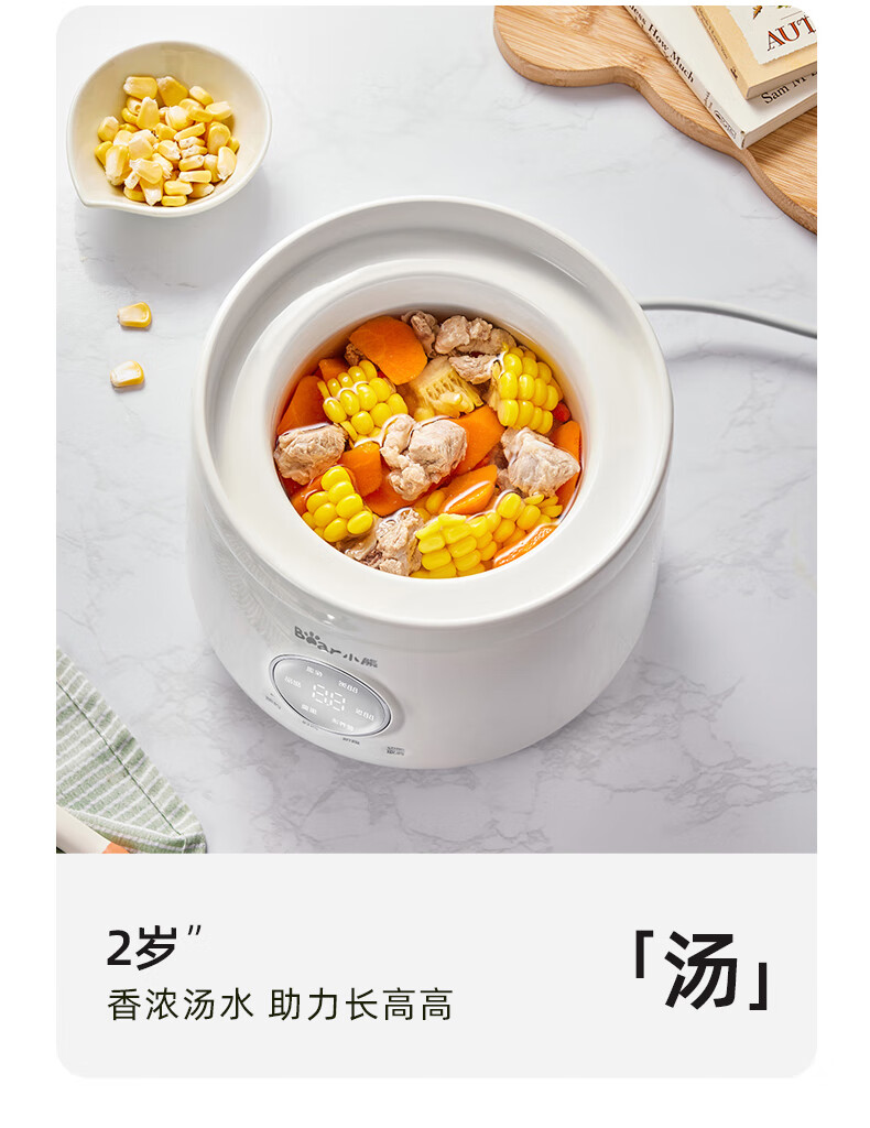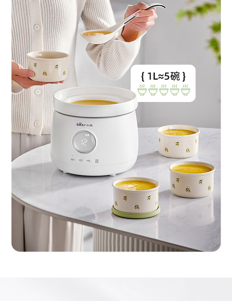 小熊宝宝辅食白瓷微压电炖盅电炖锅1L