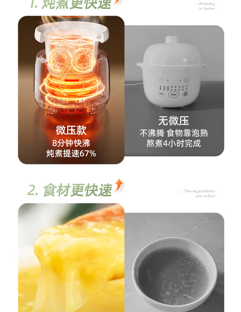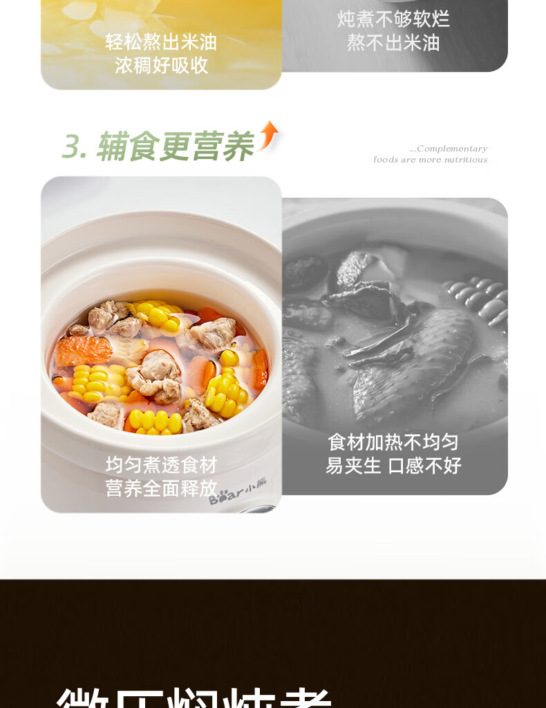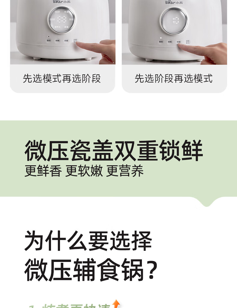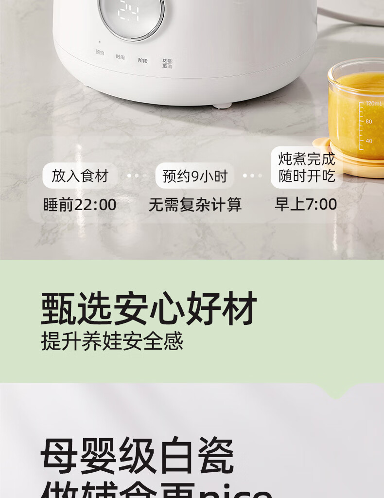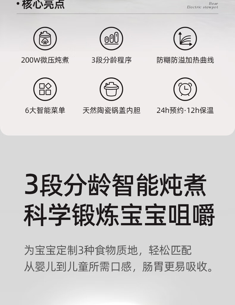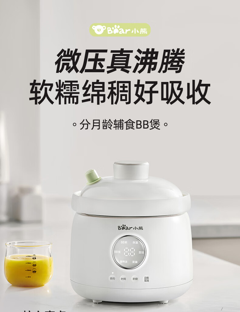 小熊宝宝辅食白瓷微压电炖盅电炖锅1L