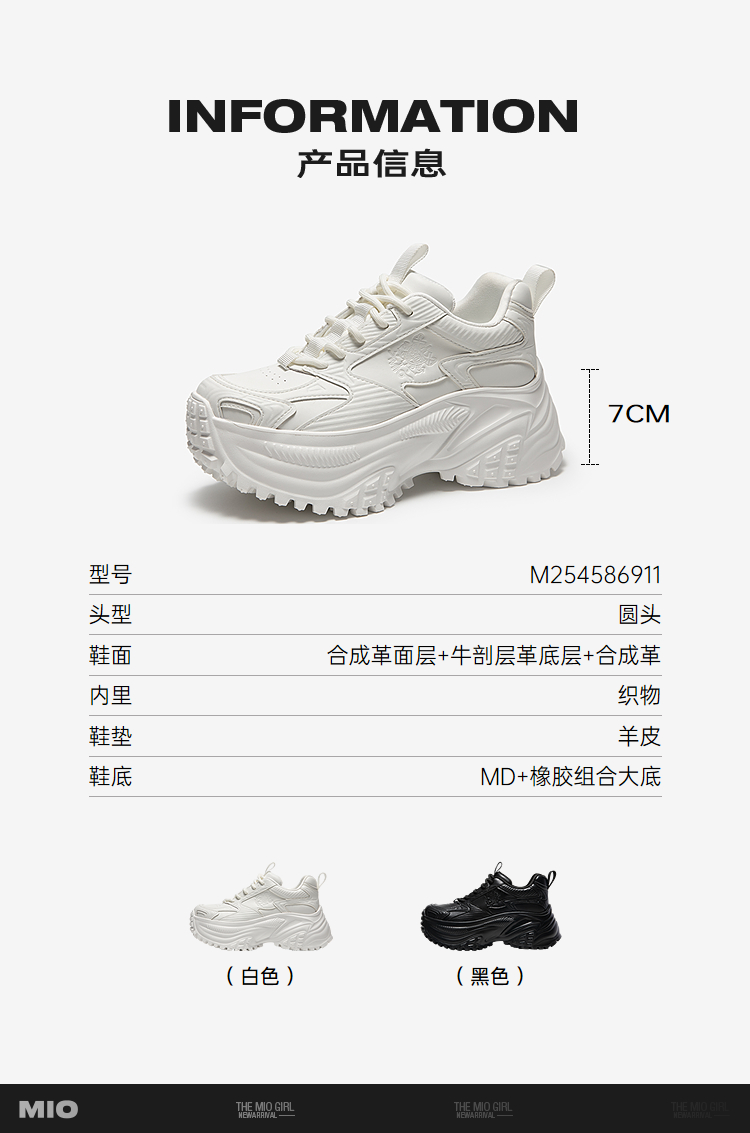 MIO米奥厚底小白鞋圆头运动鞋时尚休闲增高6cm女鞋M254586911