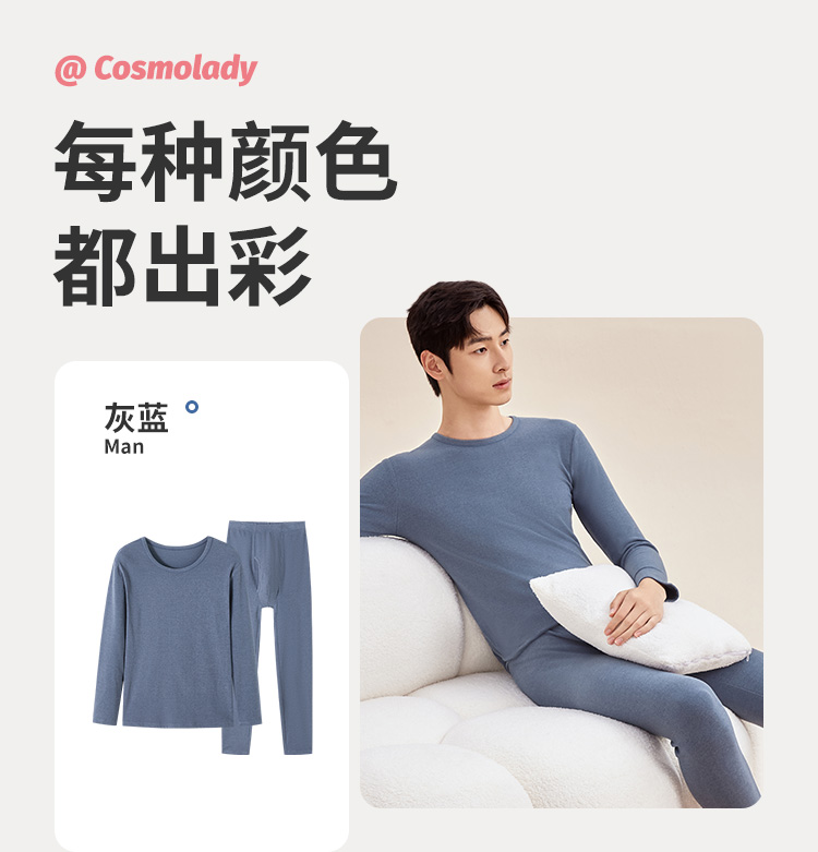 都市锋尚男士套装保暖衣圆领云彩绒男士保暖衣4WT1A9