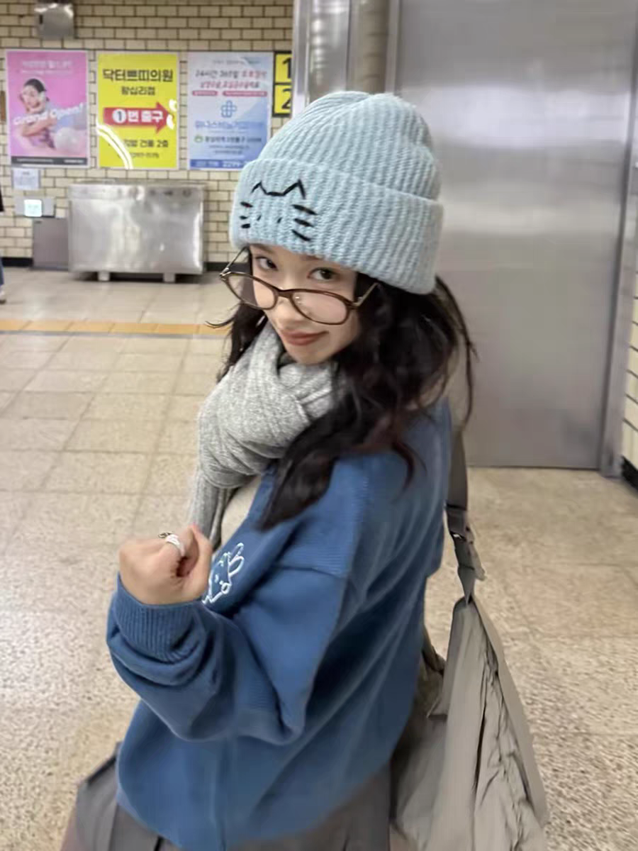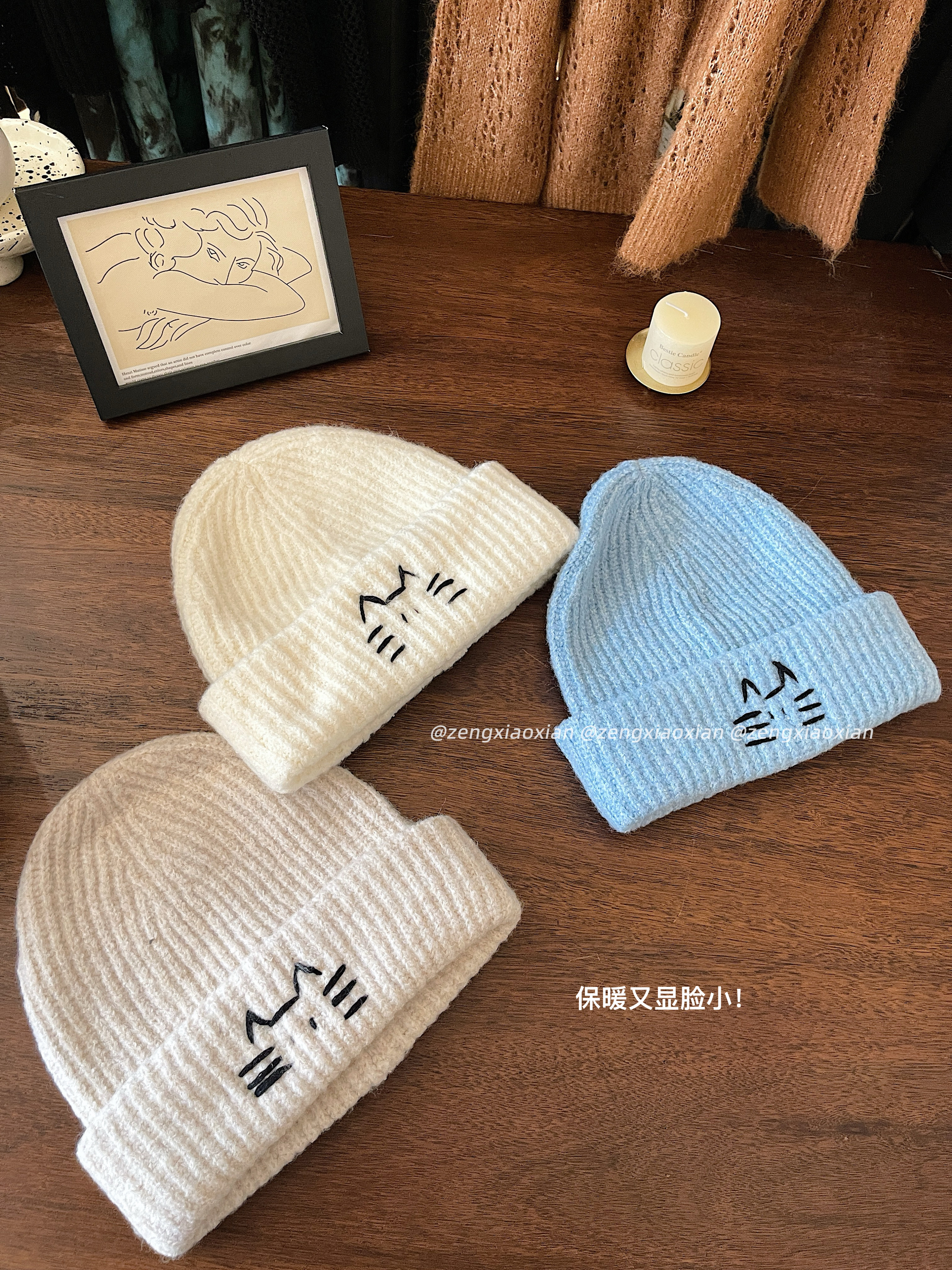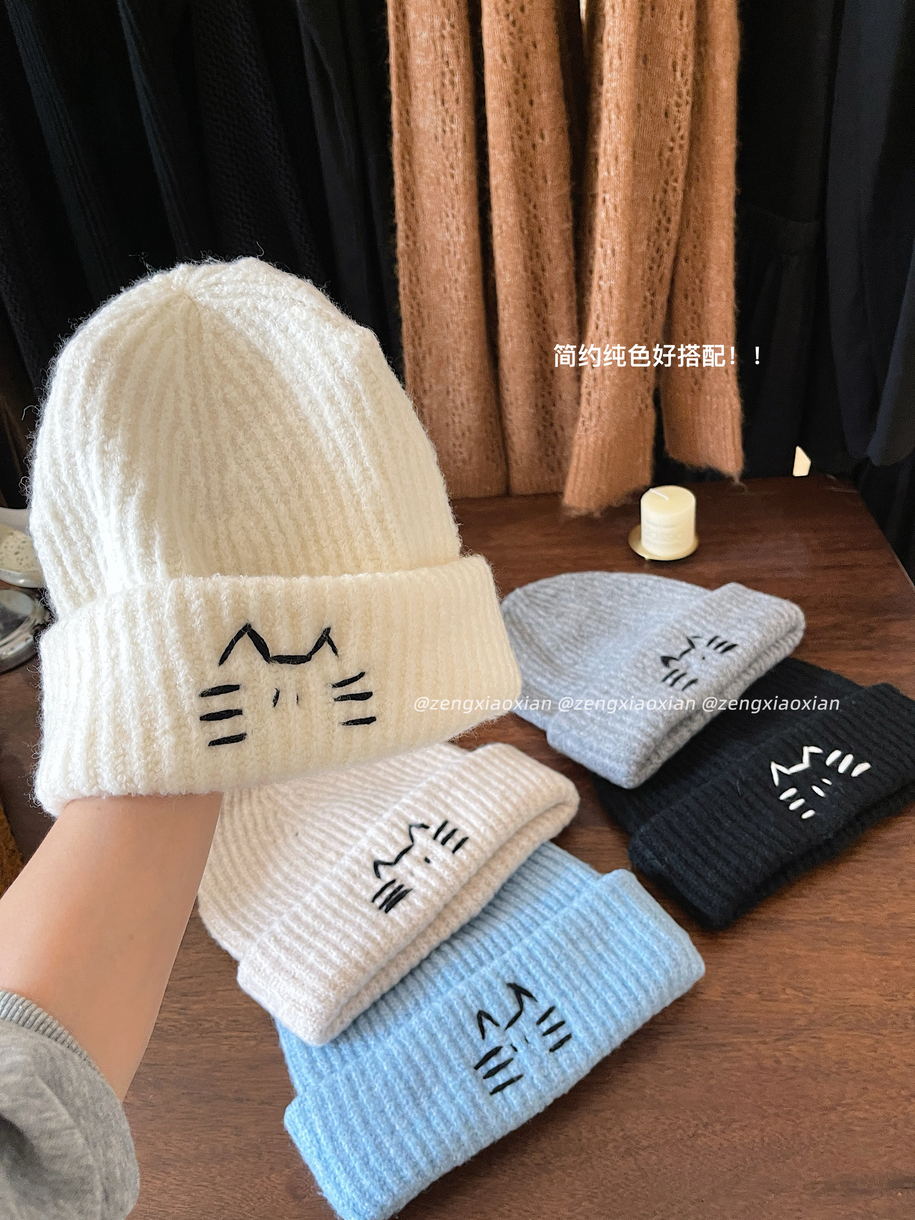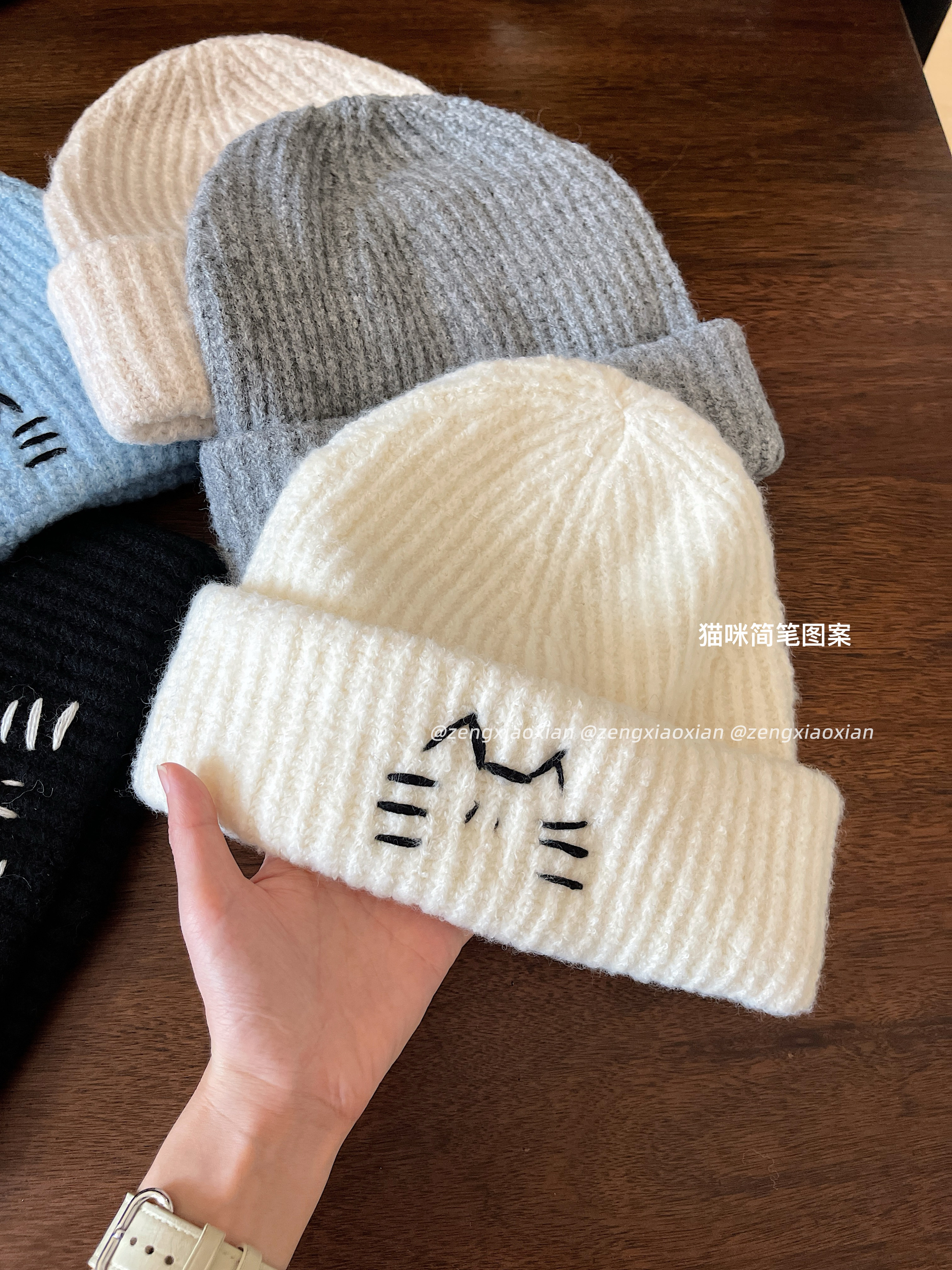 <曾小咸推荐> 线条小猫针织帽 日常89/件