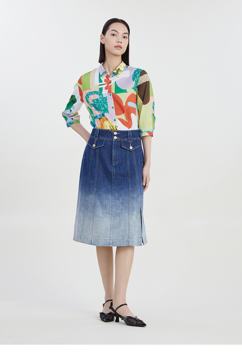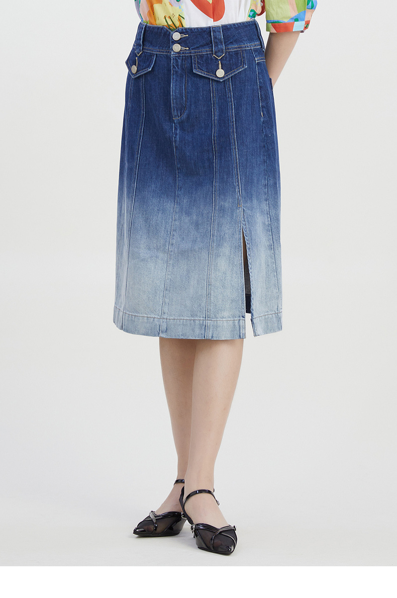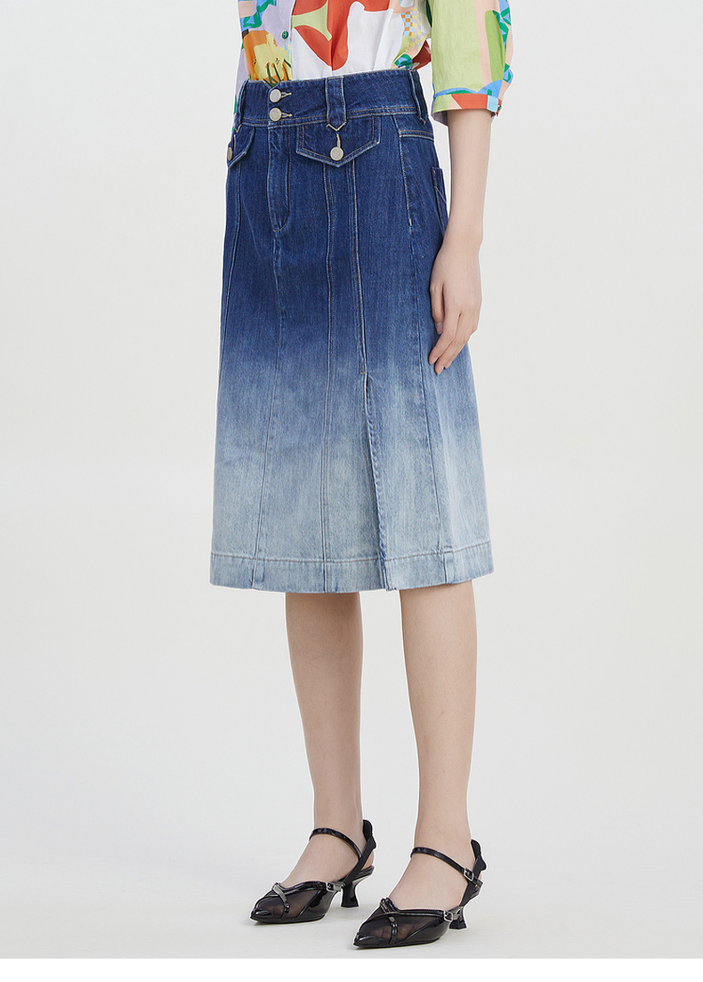 谜底牛仔半身裙女2023夏季新款水洗渐变色A型长款牛仔裙232MB0554