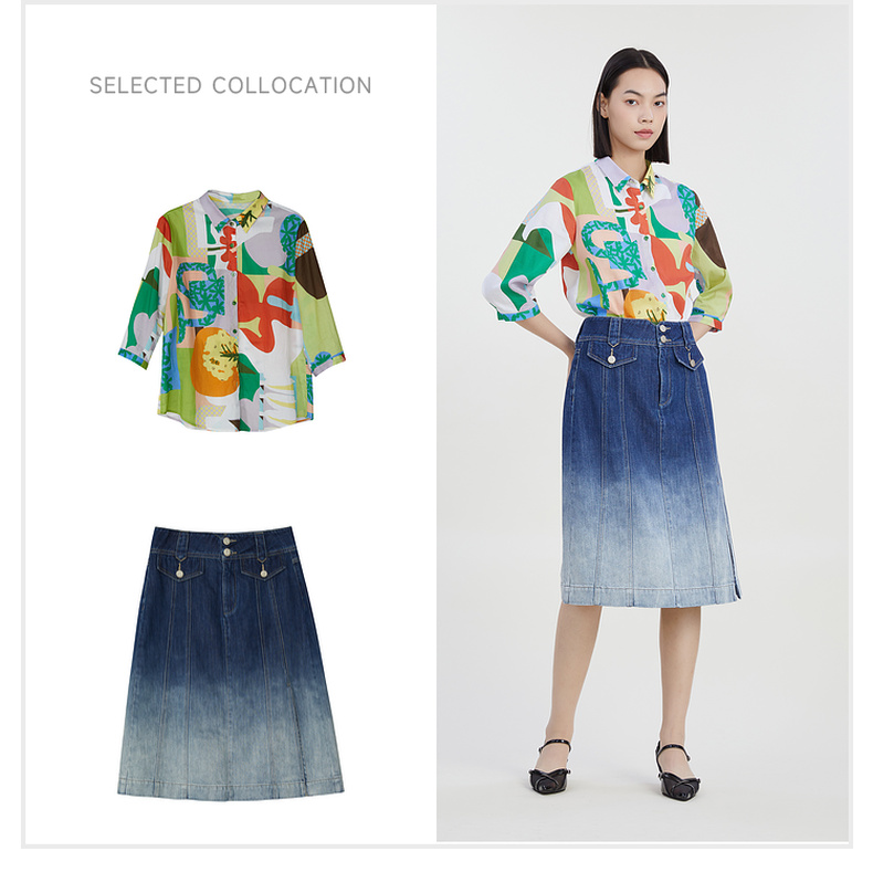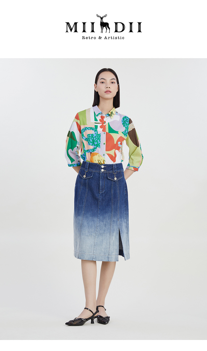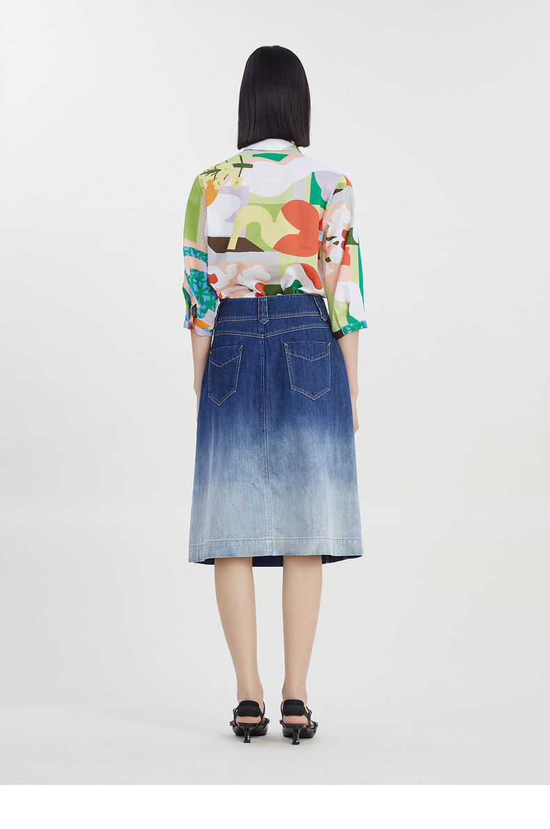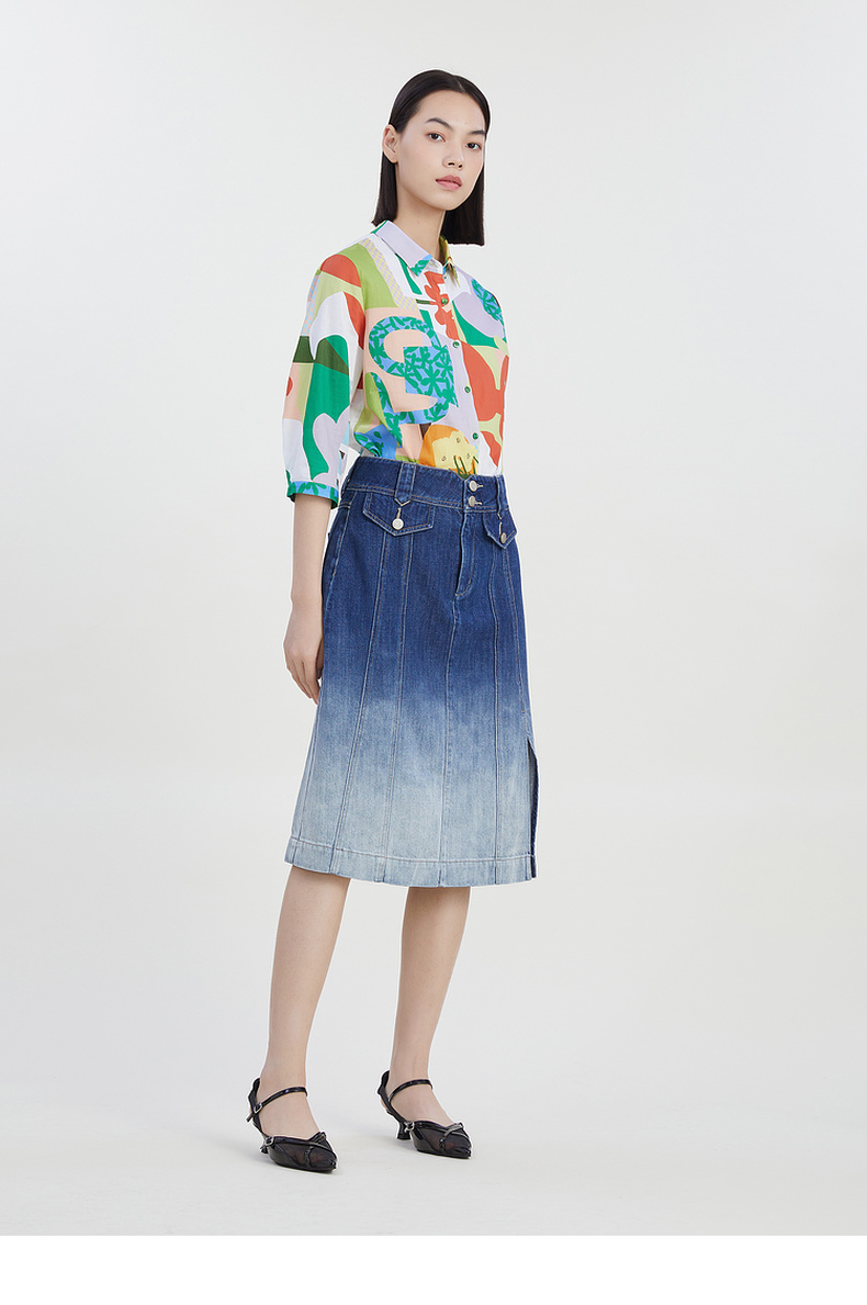谜底牛仔半身裙女2023夏季新款水洗渐变色A型长款牛仔裙232MB0554