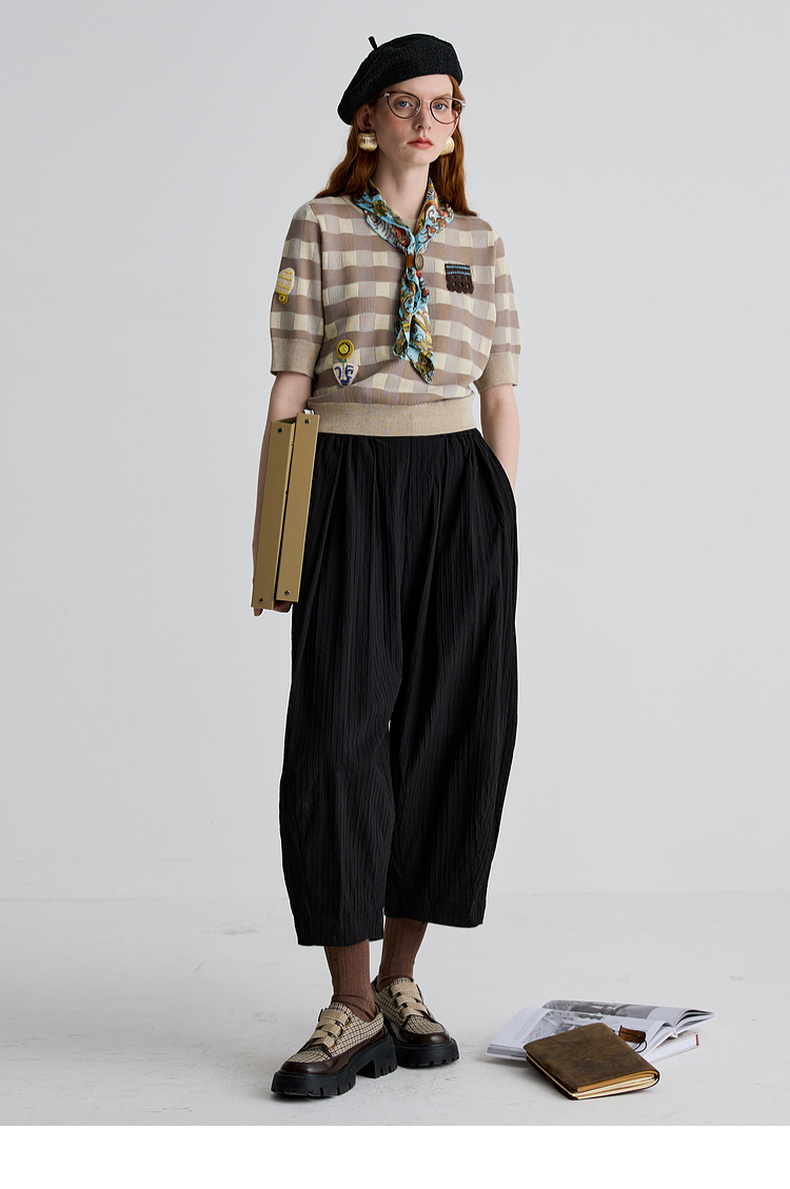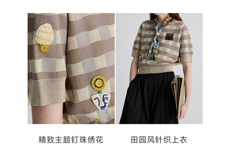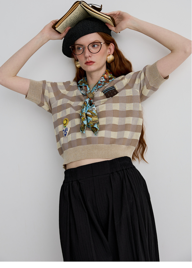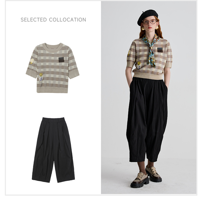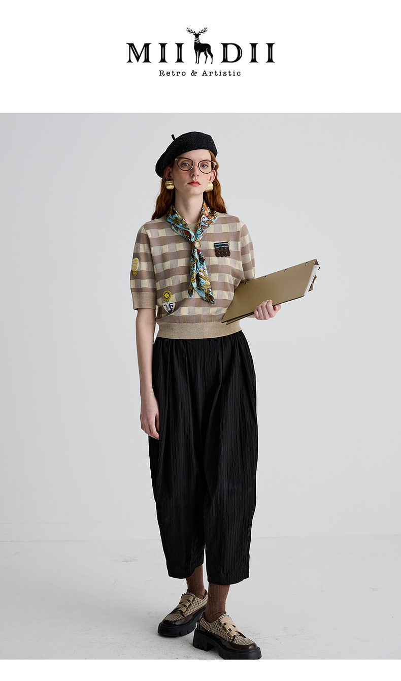 谜底针织衫短袖女2025夏季新品复古文艺宽松T型短毛衣252MZ0867