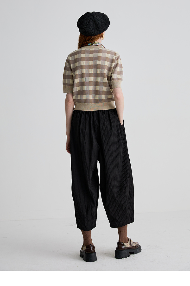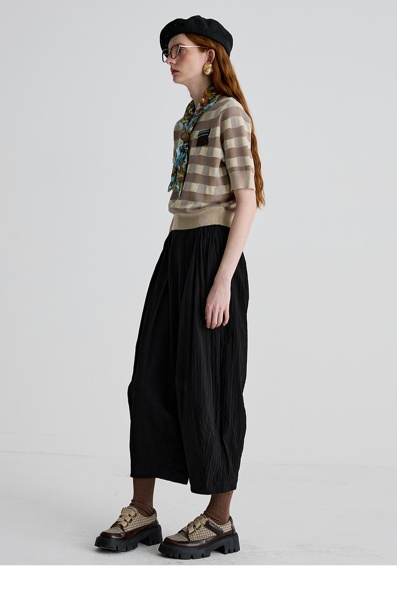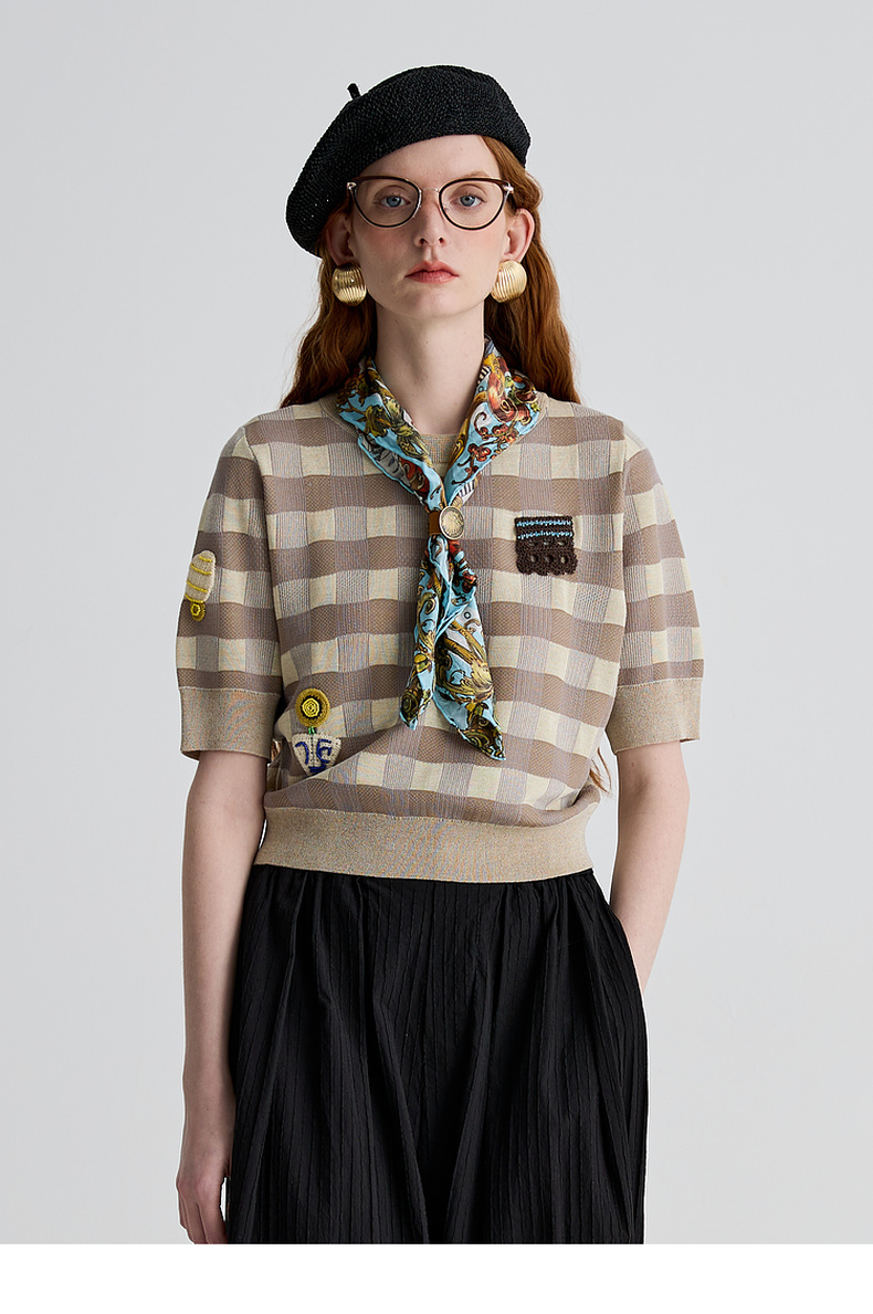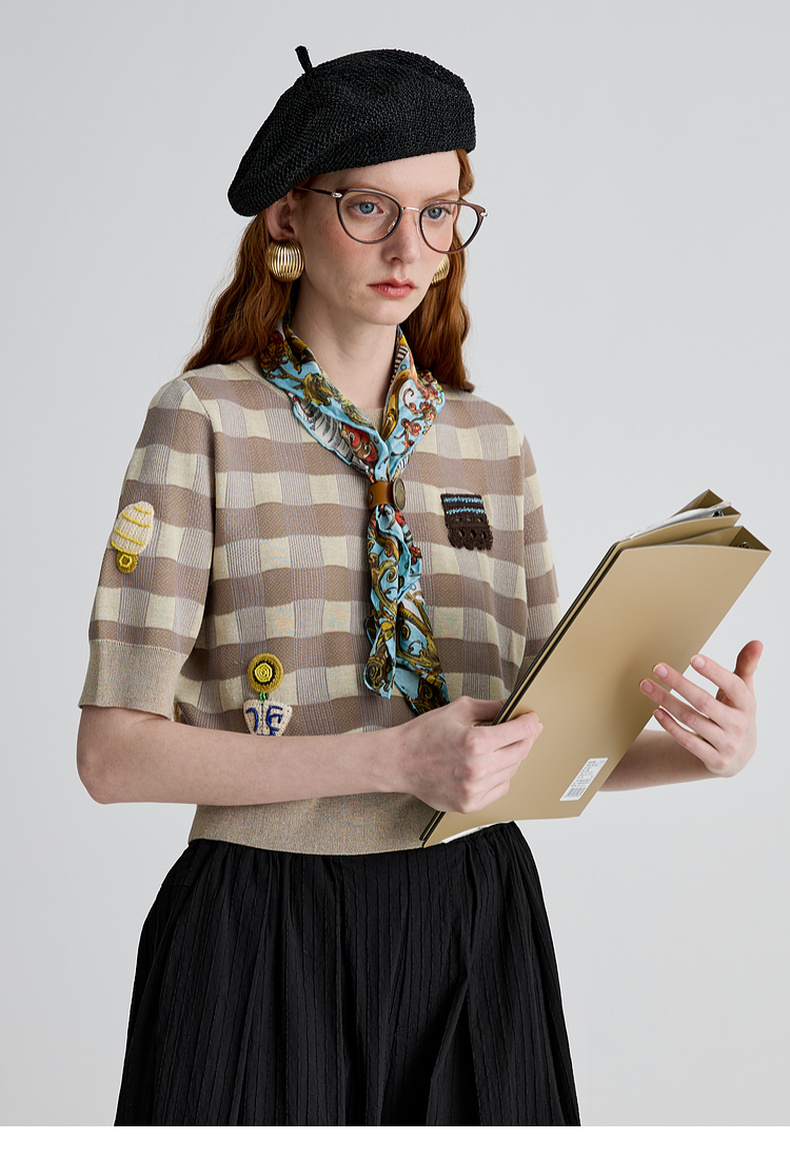 谜底针织衫短袖女2025夏季新品复古文艺宽松T型短毛衣252MZ0867