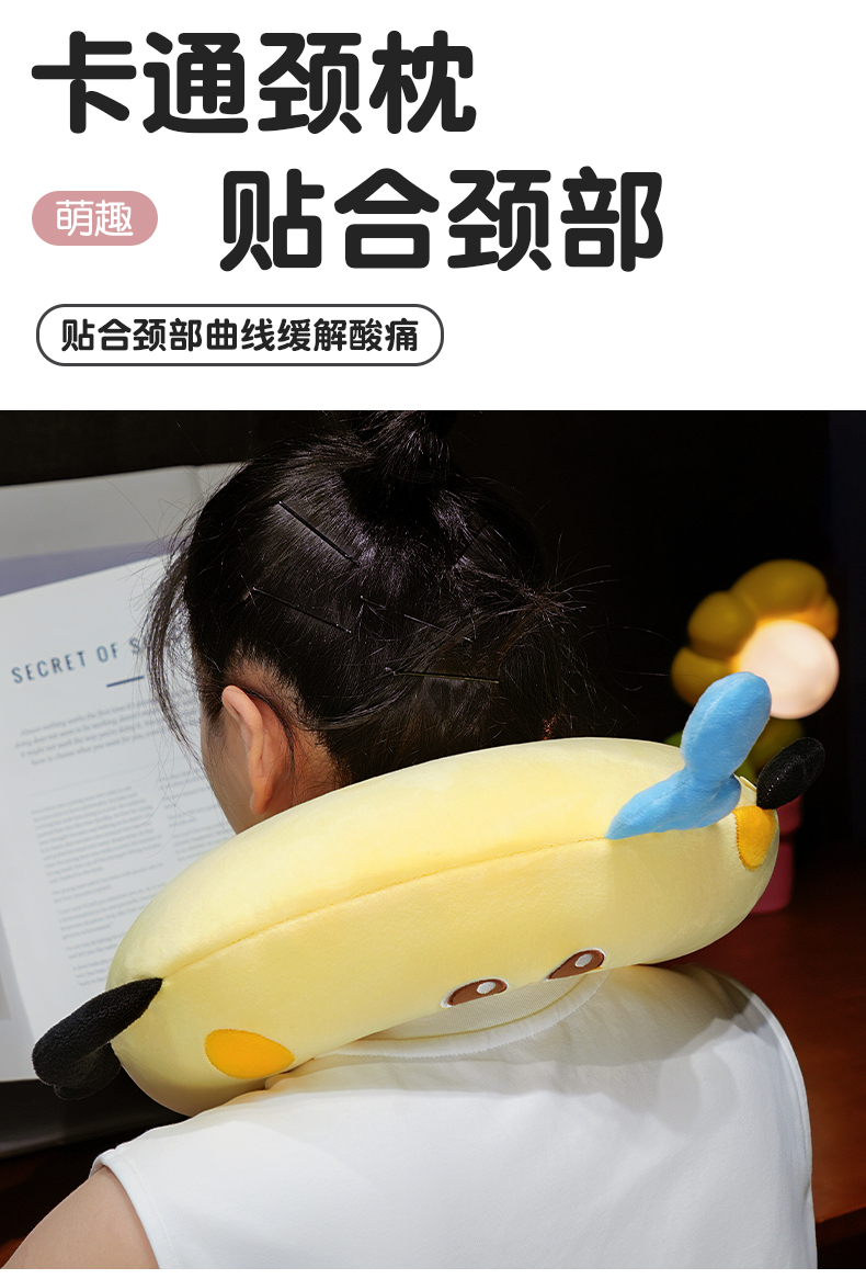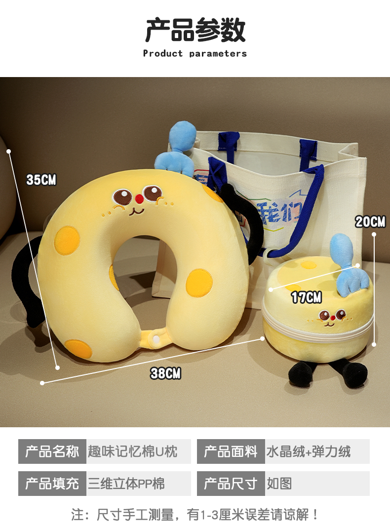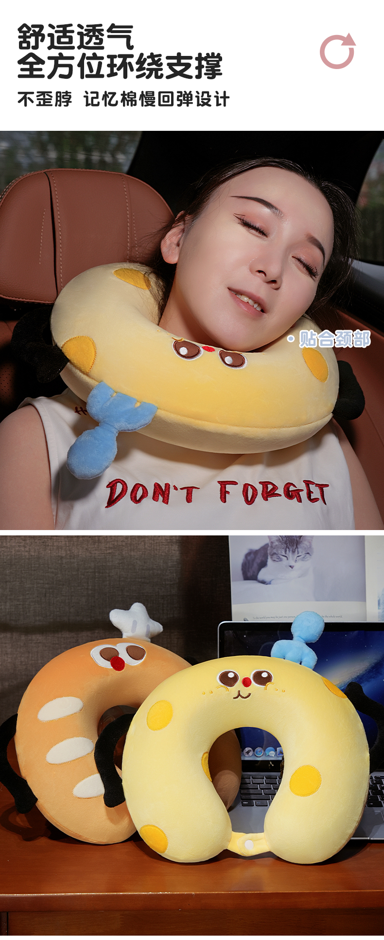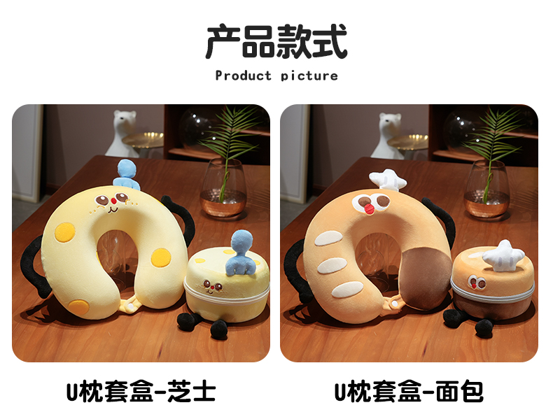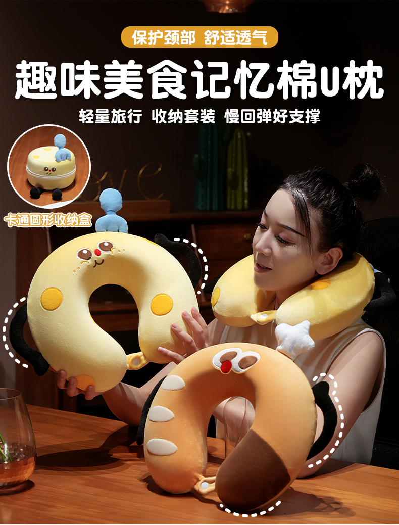自然醒美食系列记忆棉U枕套盒卡通旅行头枕颈部便携车用颈椎枕可收纳盒QYL