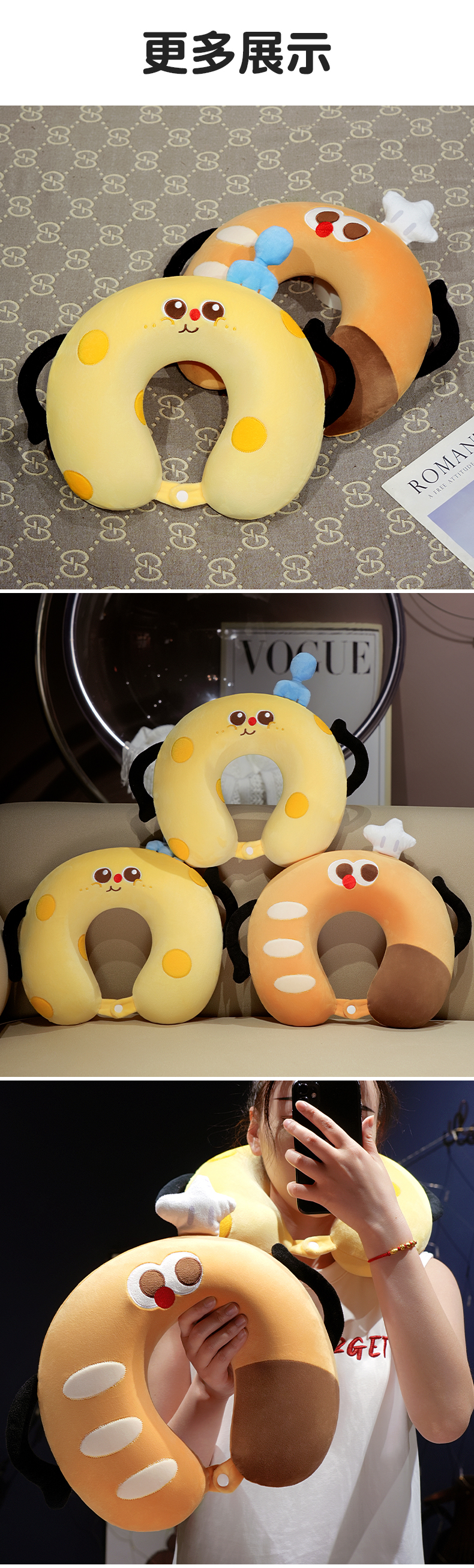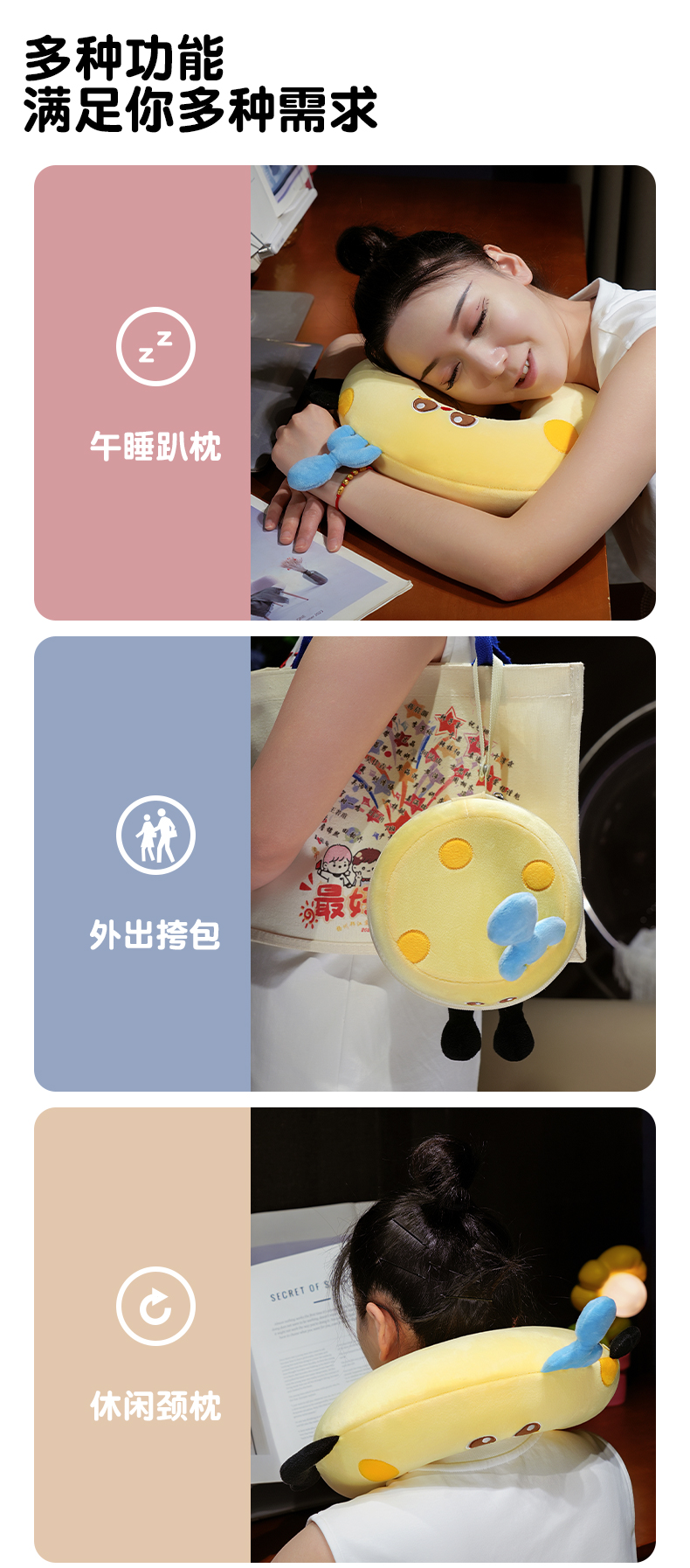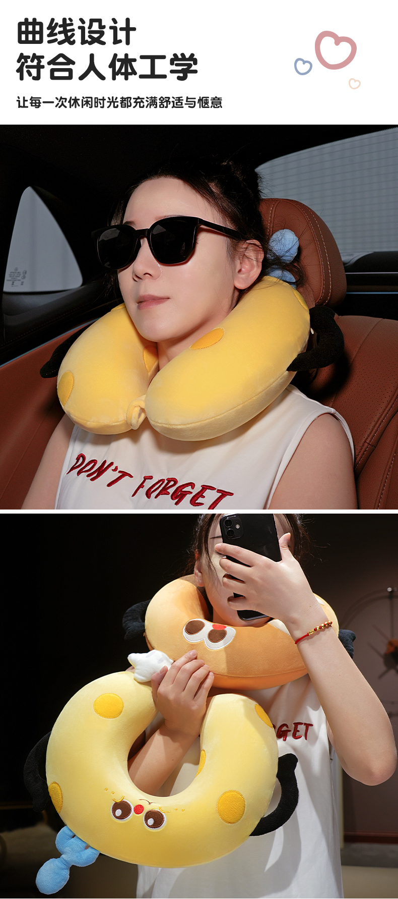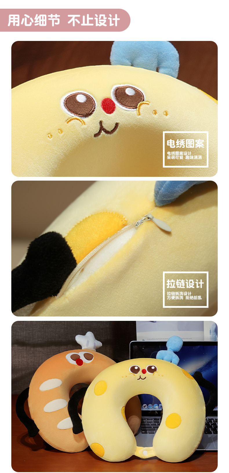 自然醒美食系列记忆棉U枕套盒卡通旅行头枕颈部便携车用颈椎枕可收纳盒QYL