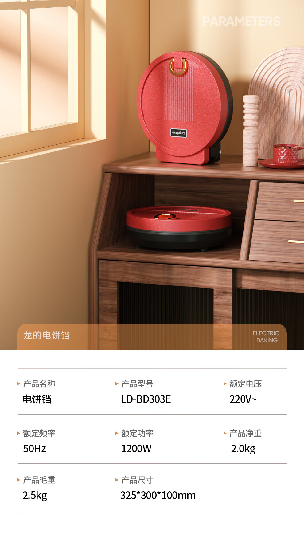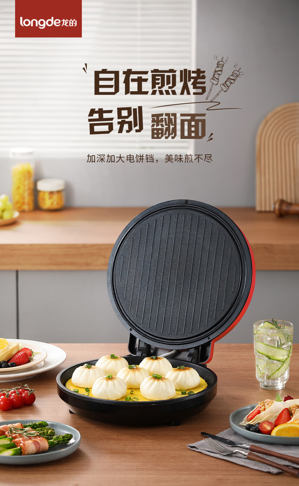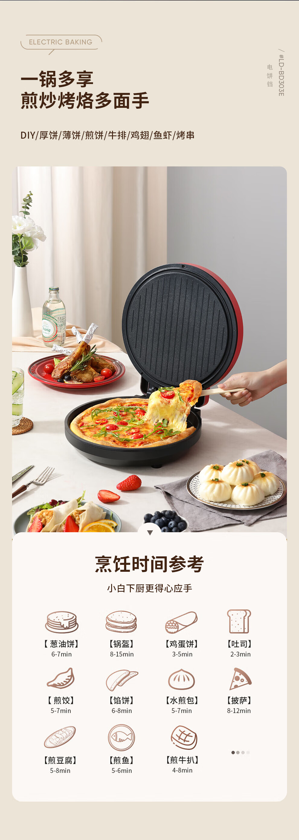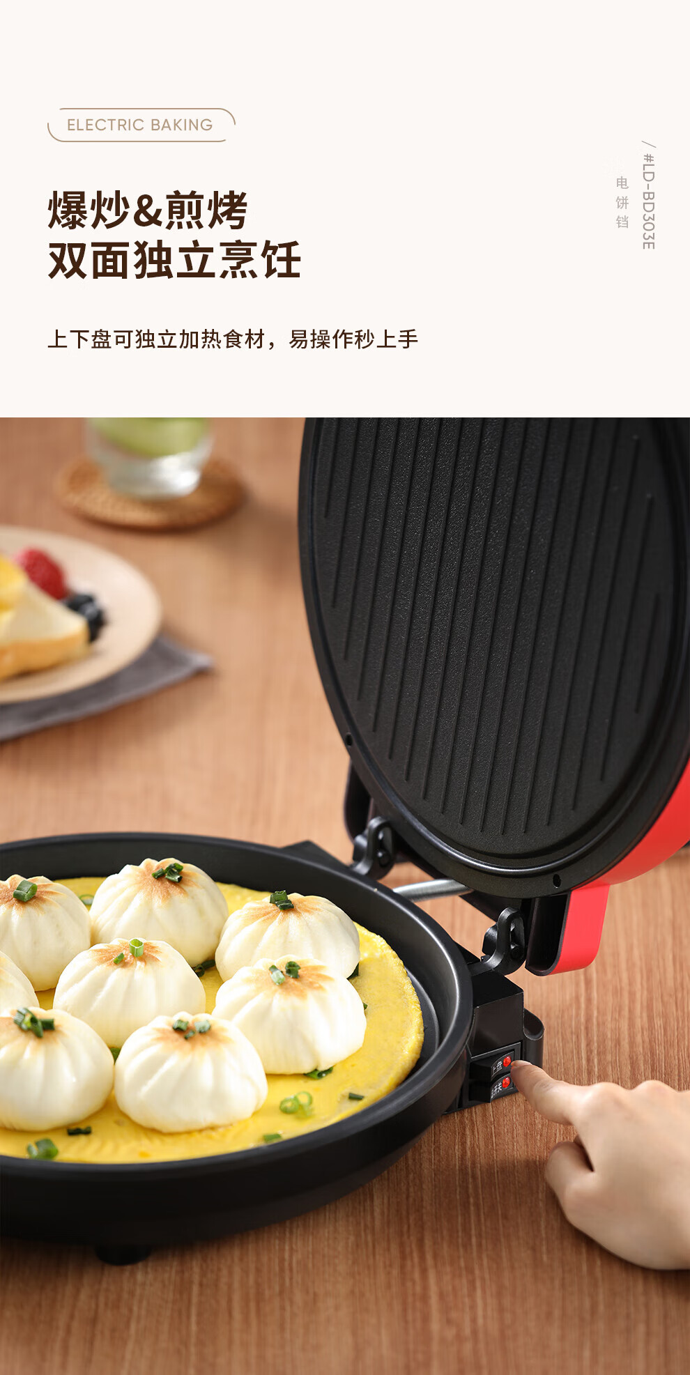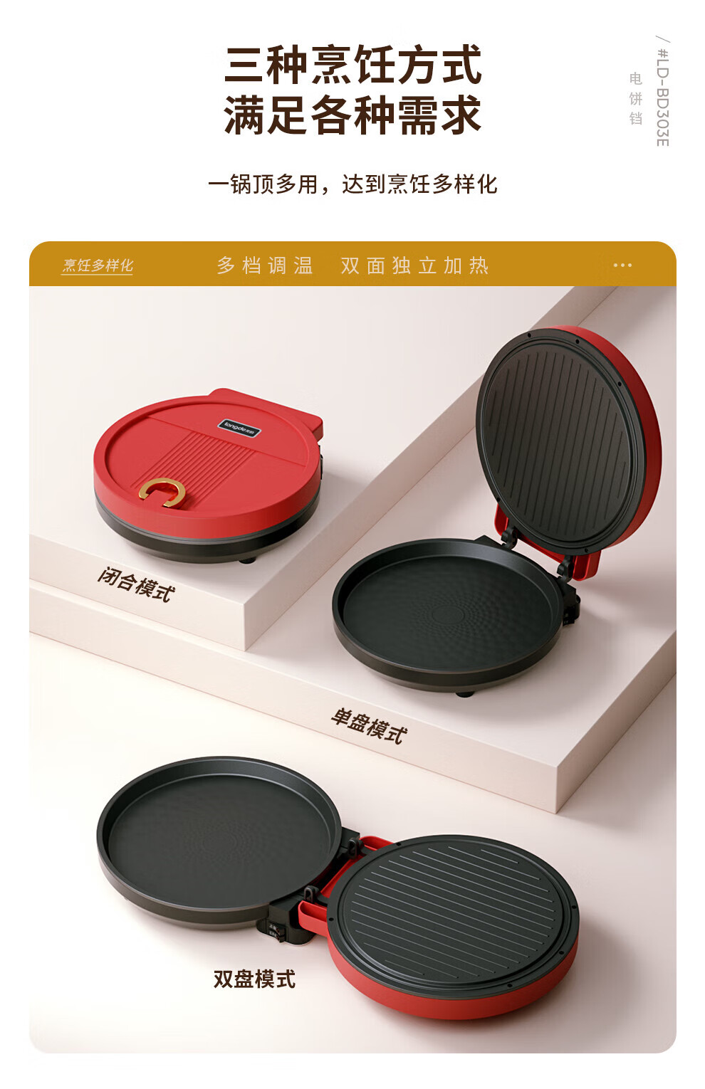 【小家电】龙的longde电饼铛 家用聚餐 多功能煎饼铛 煎烤机优质控温烙饼机 早餐机 LD-BD303E HF