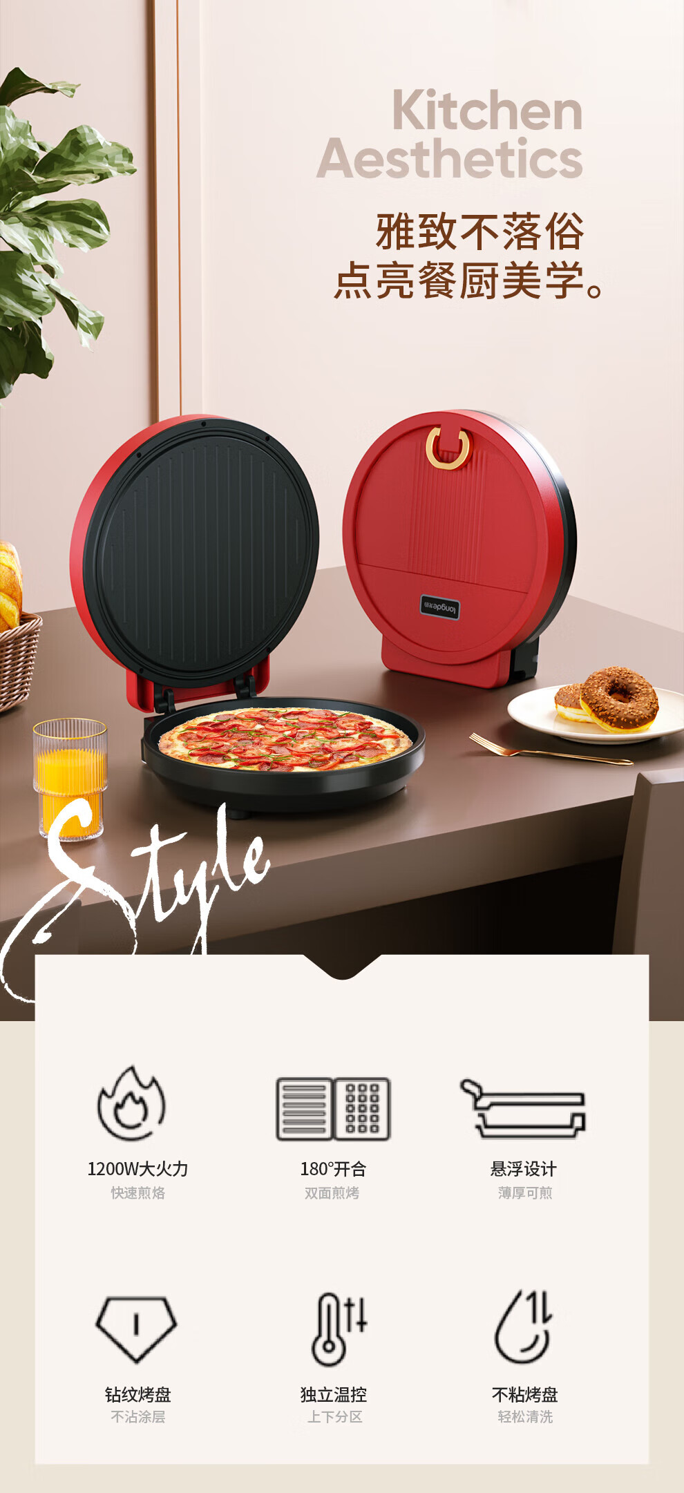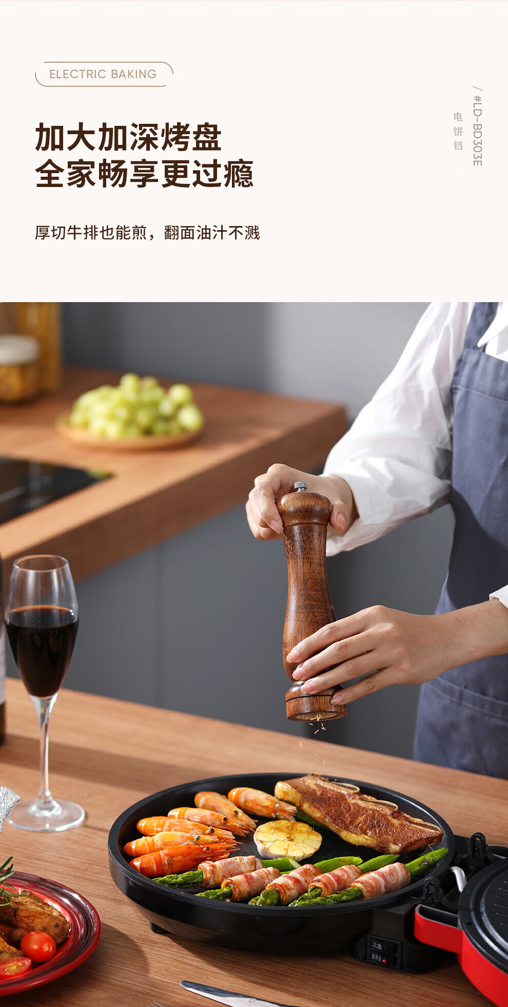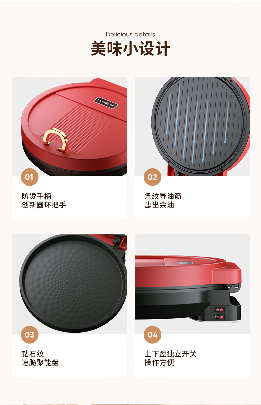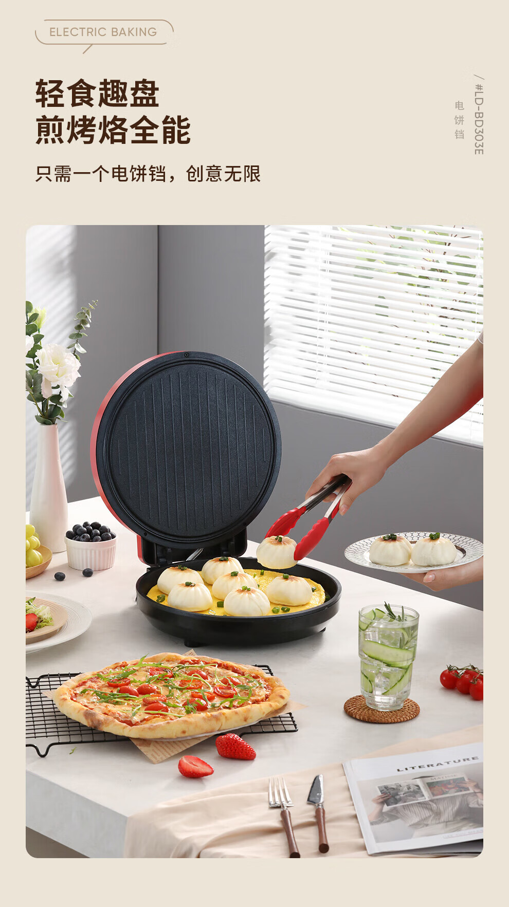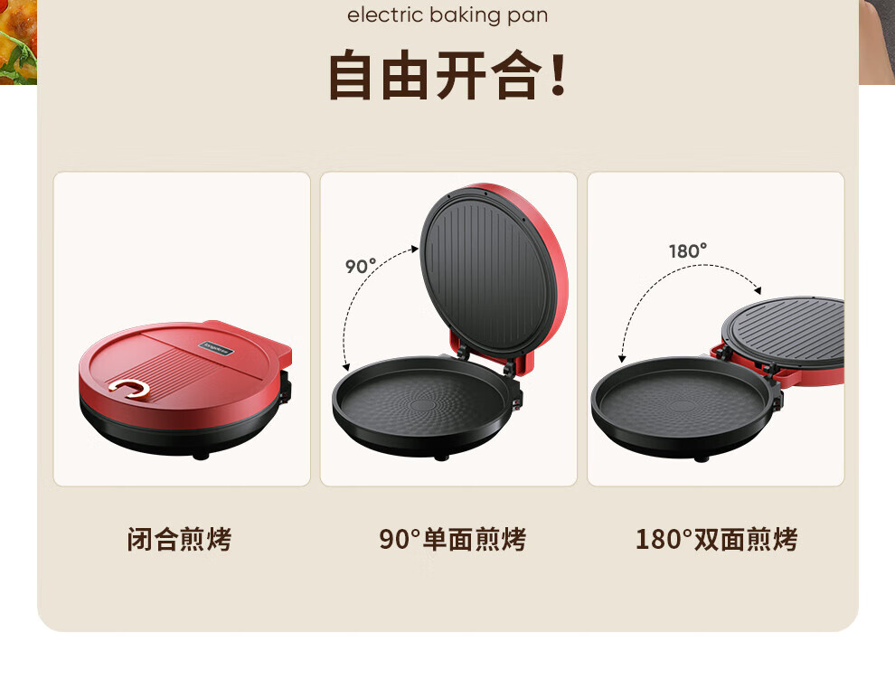 【小家电】龙的longde电饼铛 家用聚餐 多功能煎饼铛 煎烤机优质控温烙饼机 早餐机 LD-BD303E HF
