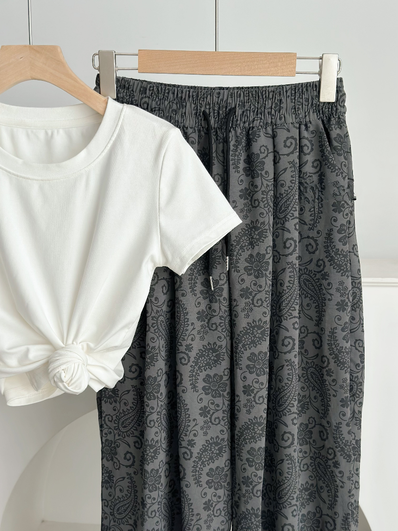 品名:腰果花阔腿裤