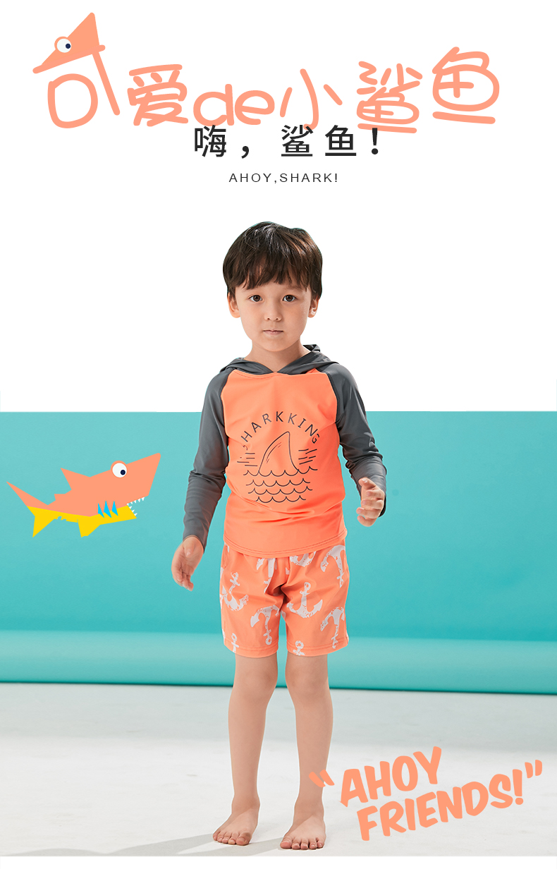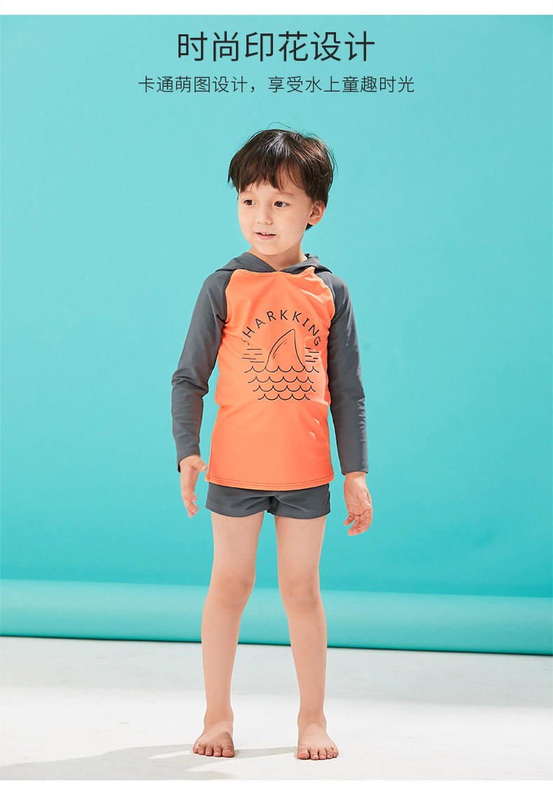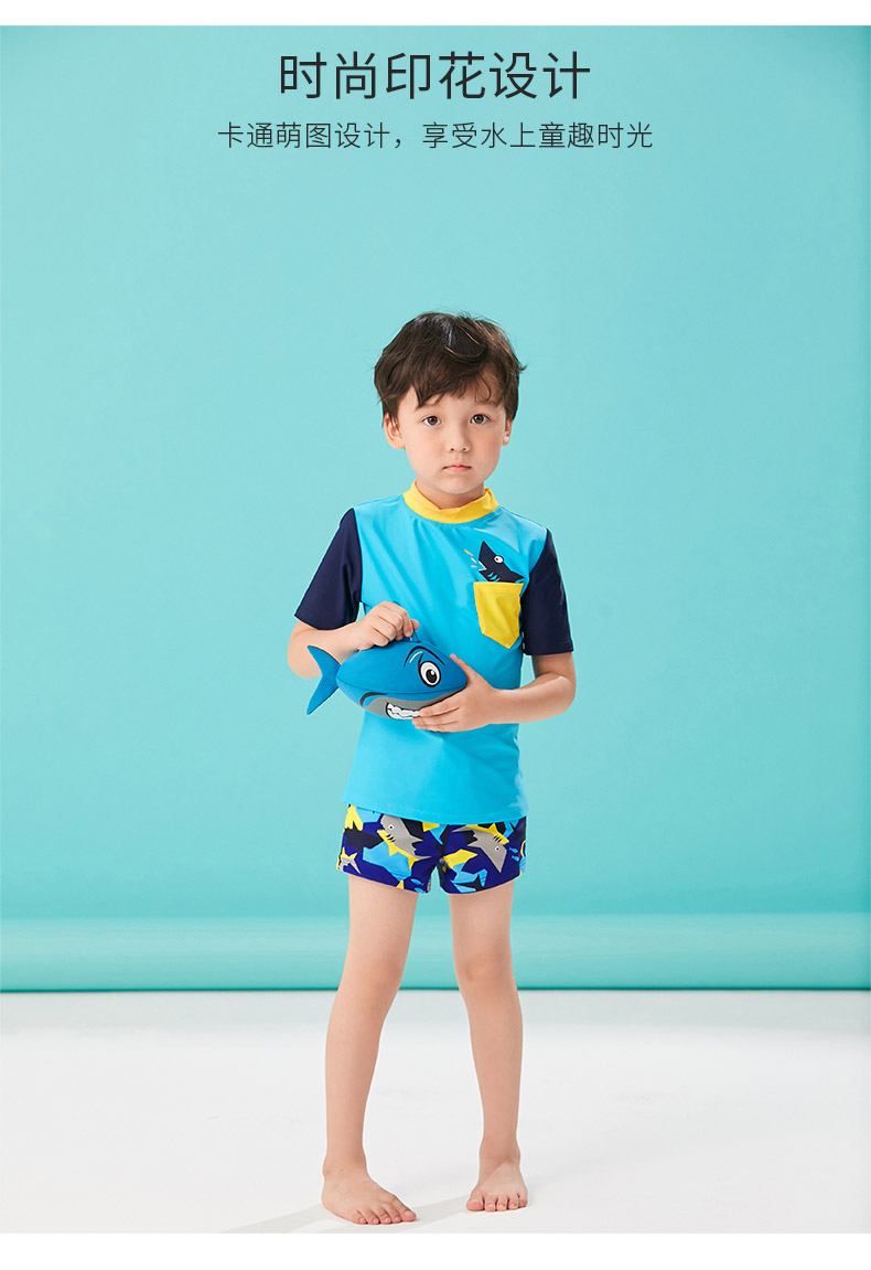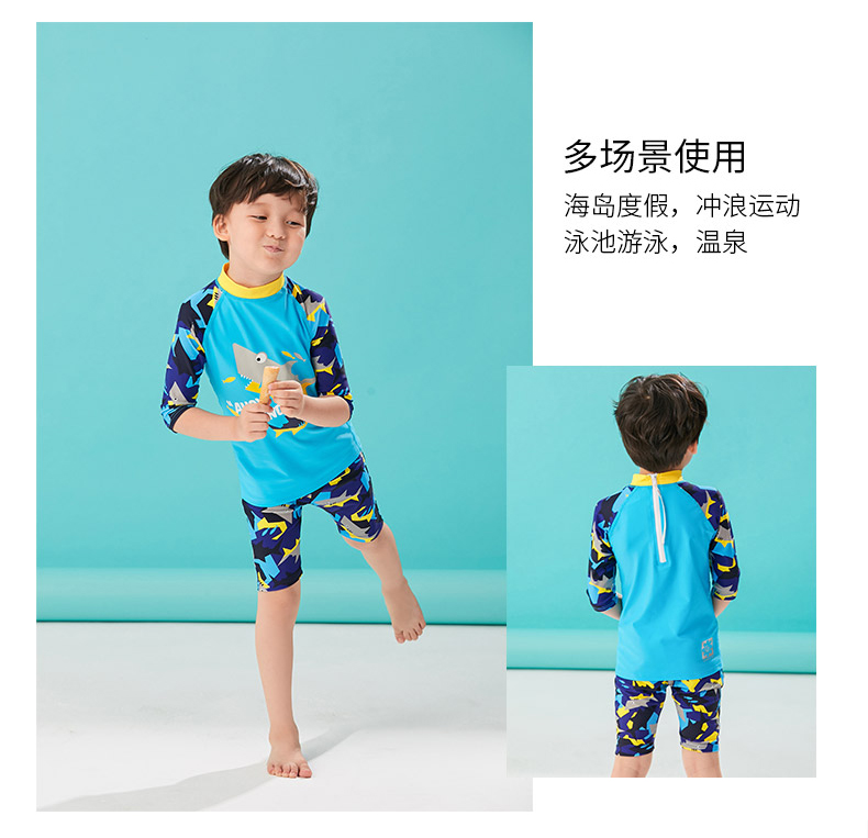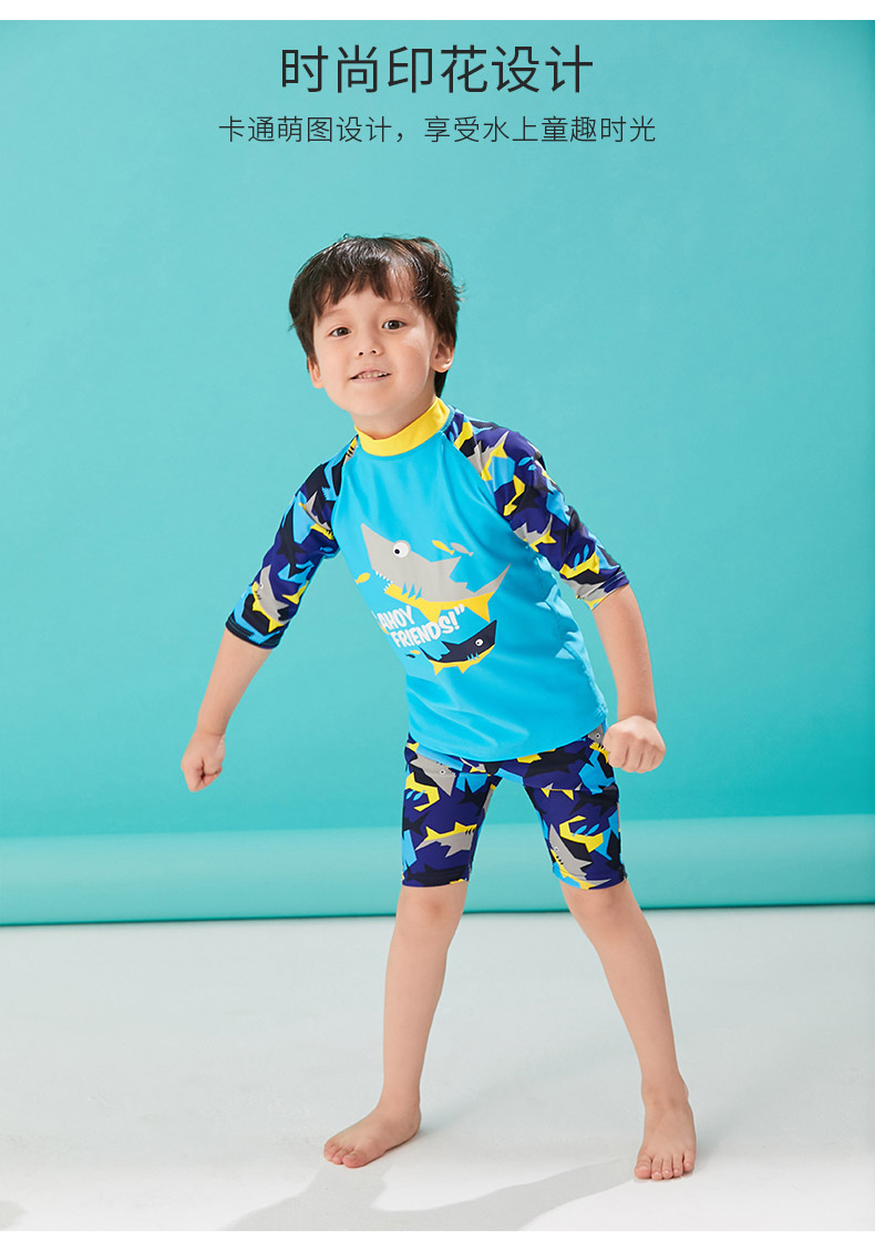 sisia儿童泳衣男童可爱卡通鲨鱼海边防晒中大童外套温泉游泳裤