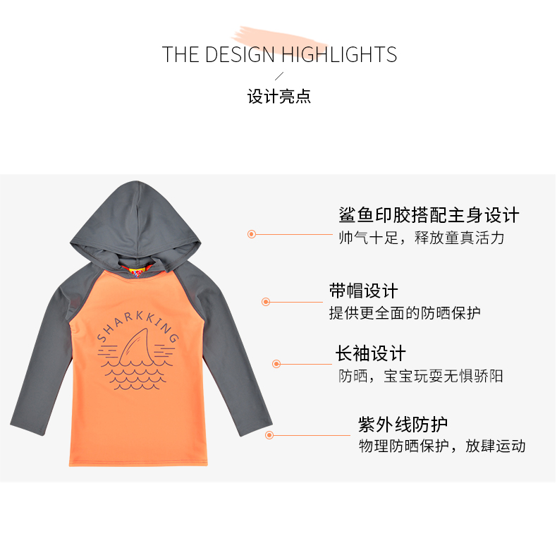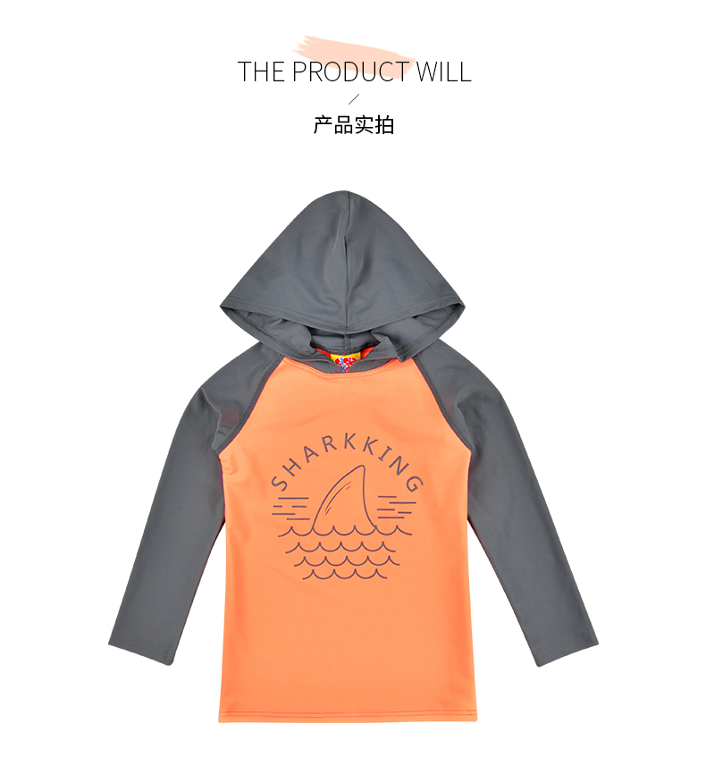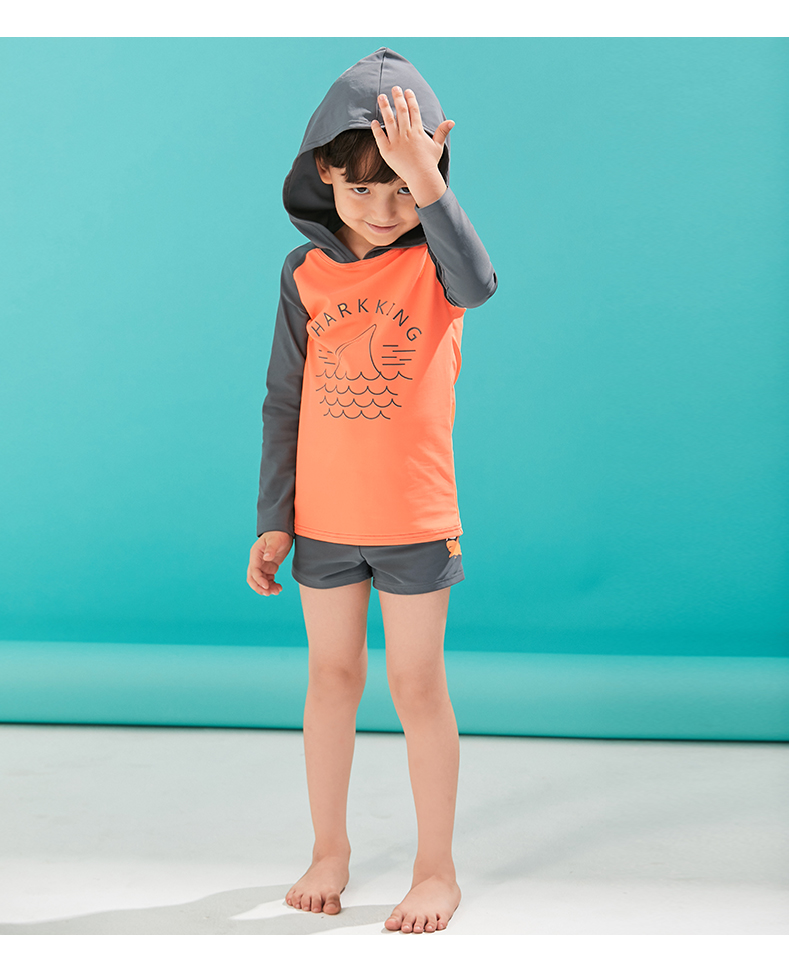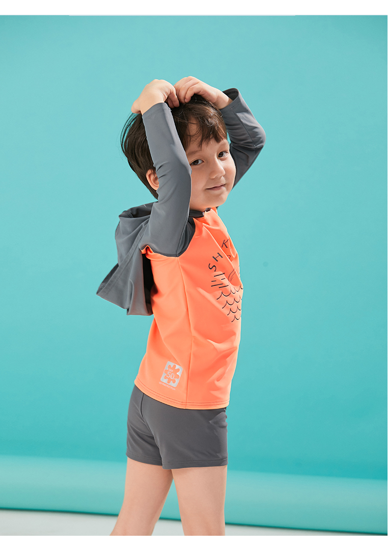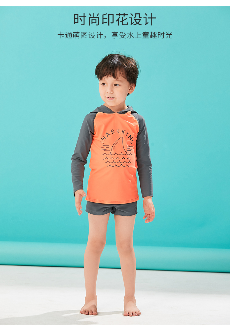 sisia儿童泳衣男童可爱卡通鲨鱼海边防晒中大童外套温泉游泳裤