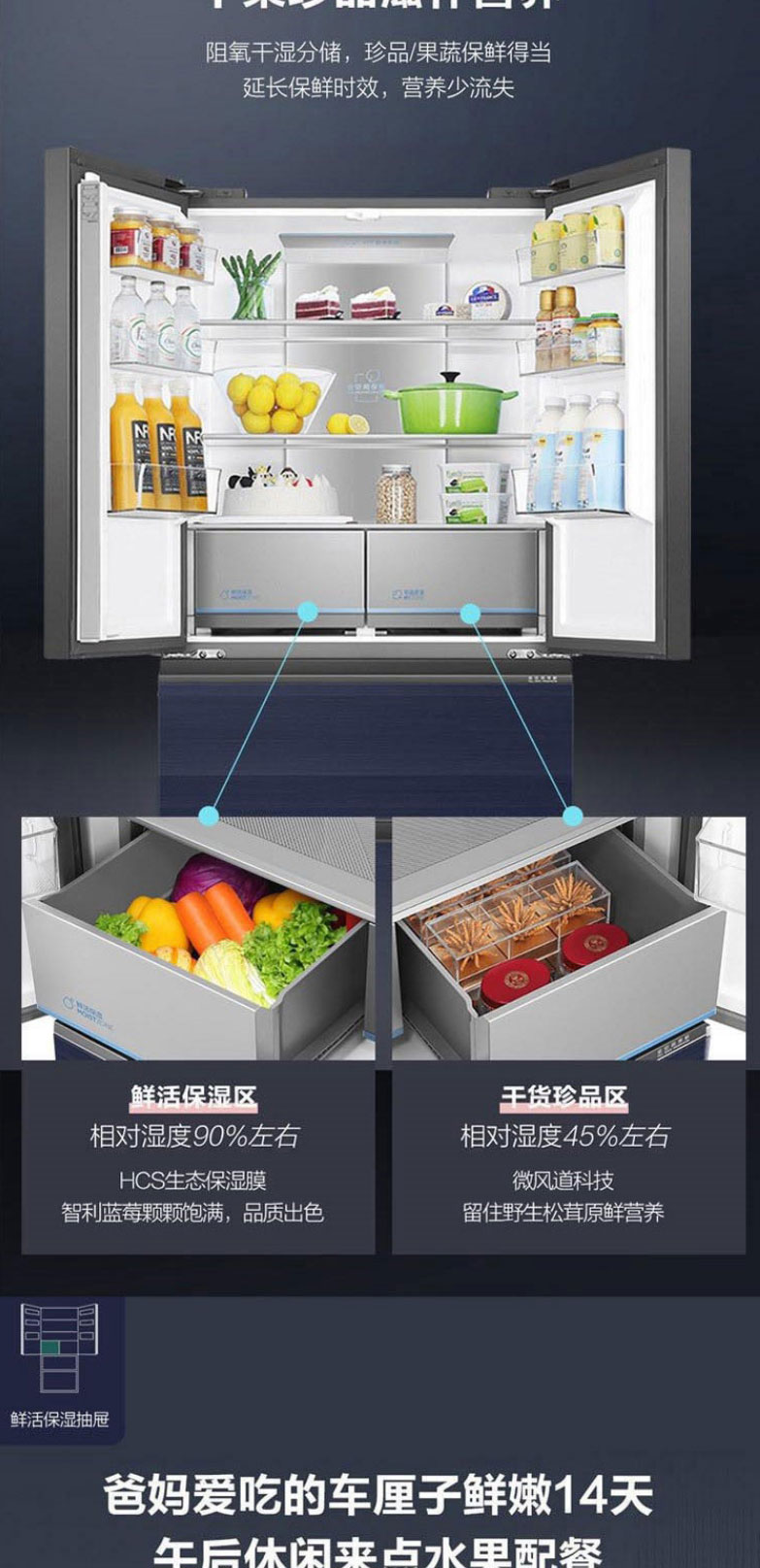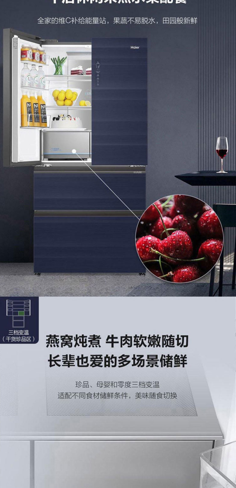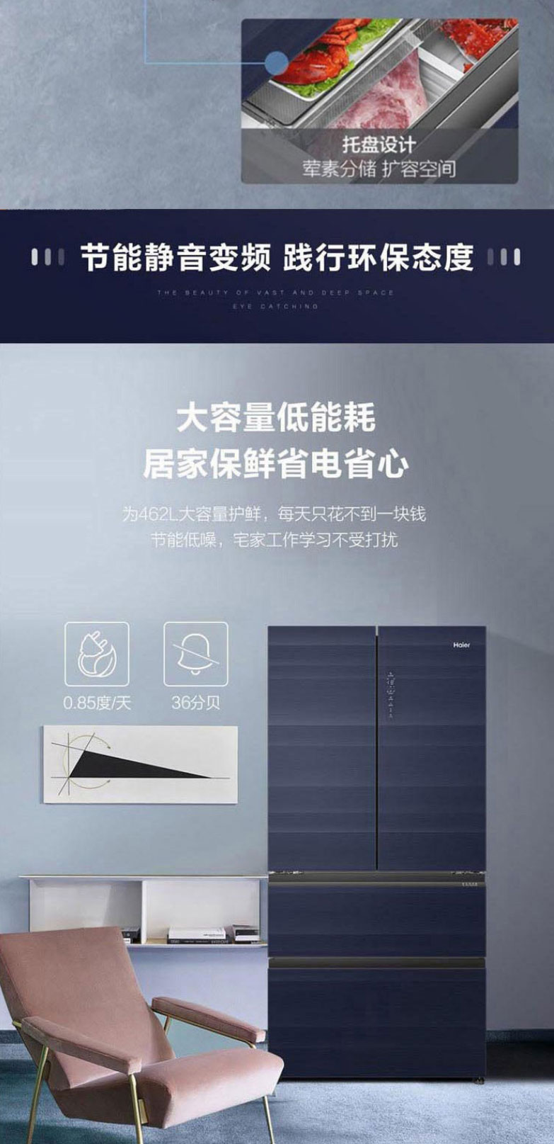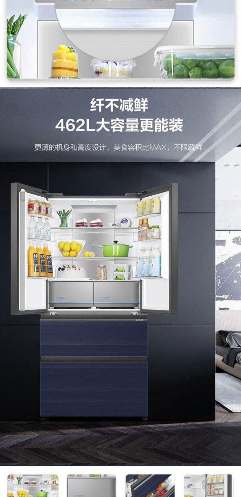海尔462升法式多门双开门全空间保鲜冰箱BCD-462WGHGD15BJU1