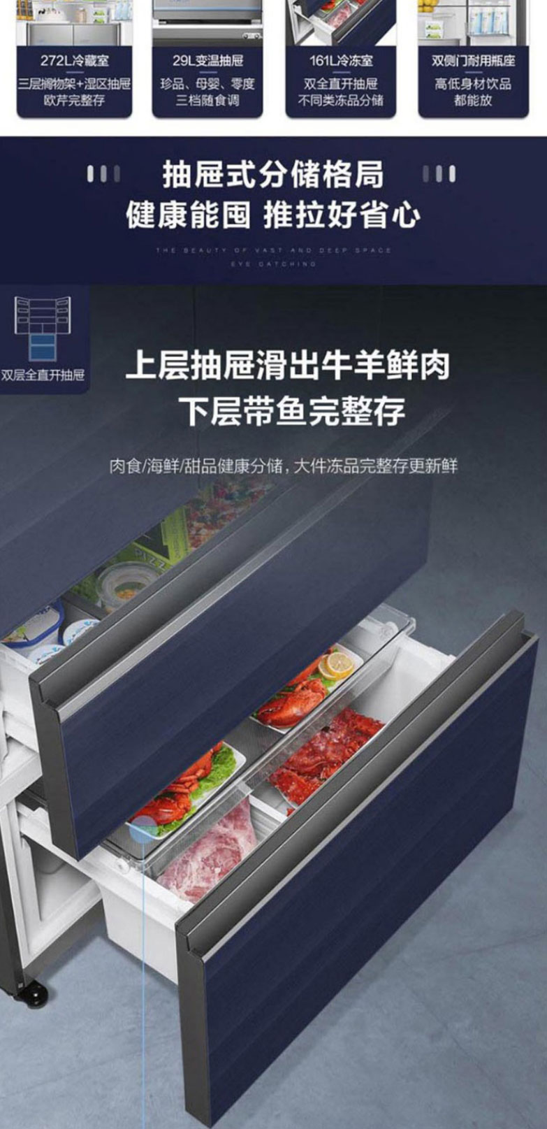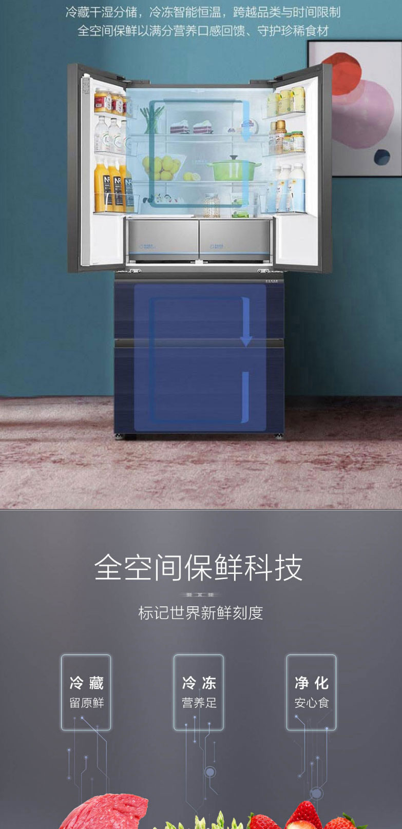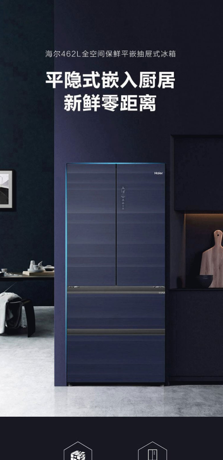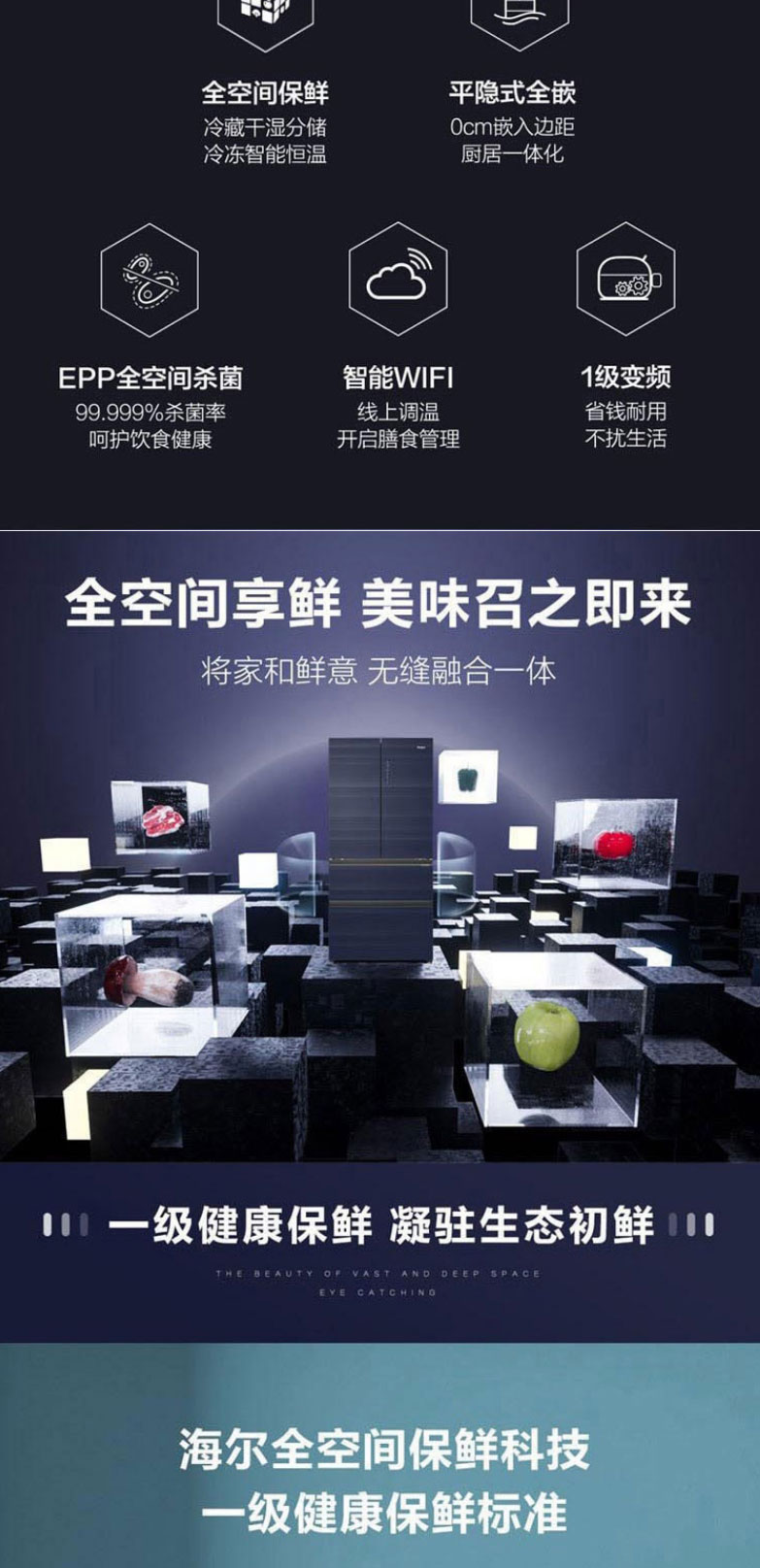 海尔462升法式多门双开门全空间保鲜冰箱BCD-462WGHGD15BJU1