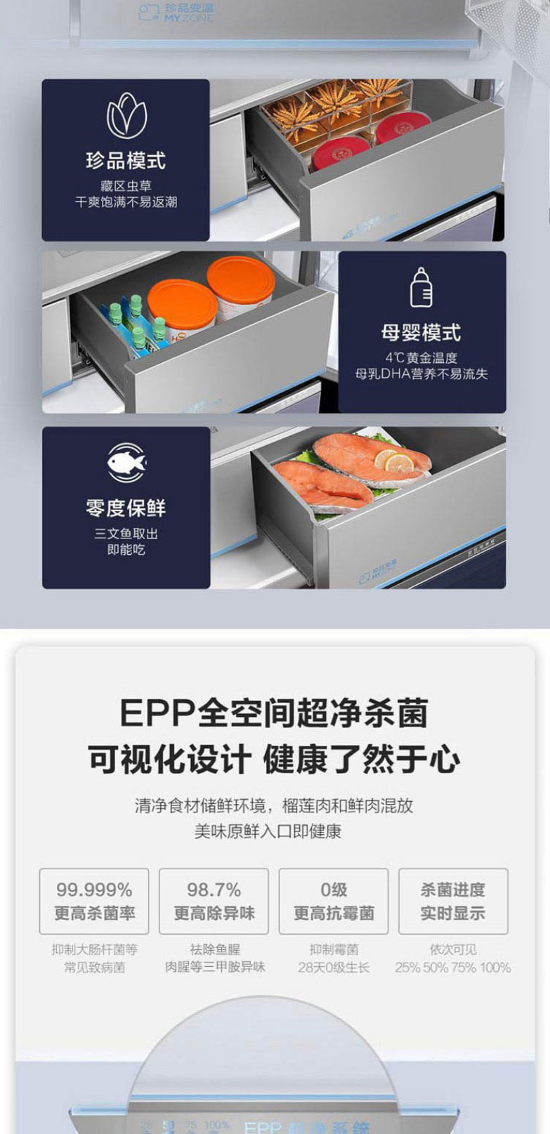 海信 535升 对开门双开门电冰箱 超薄大容量双门 抗菌净化 变频风冷无霜 节能静音BCD-535WTVBP/S