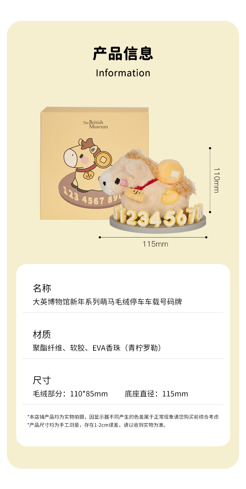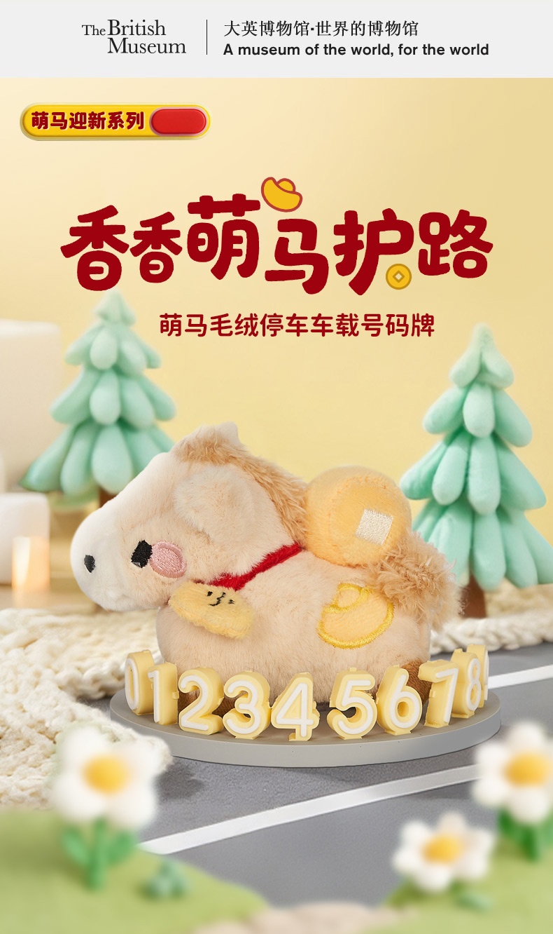 大英博物馆 新年系列 萌马毛绒停车车载号码牌