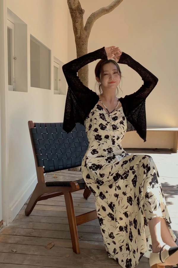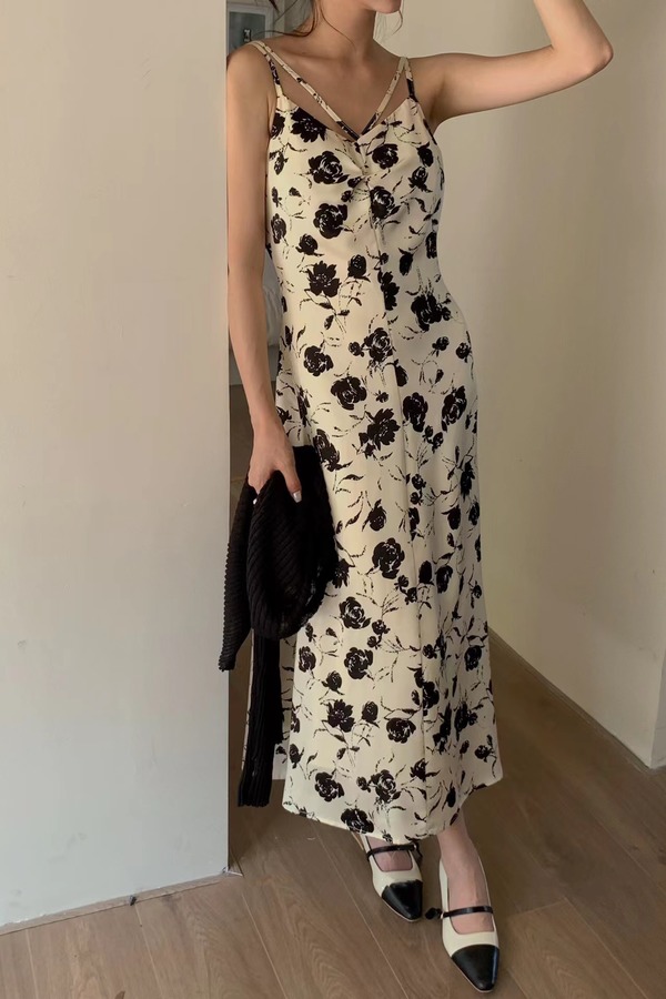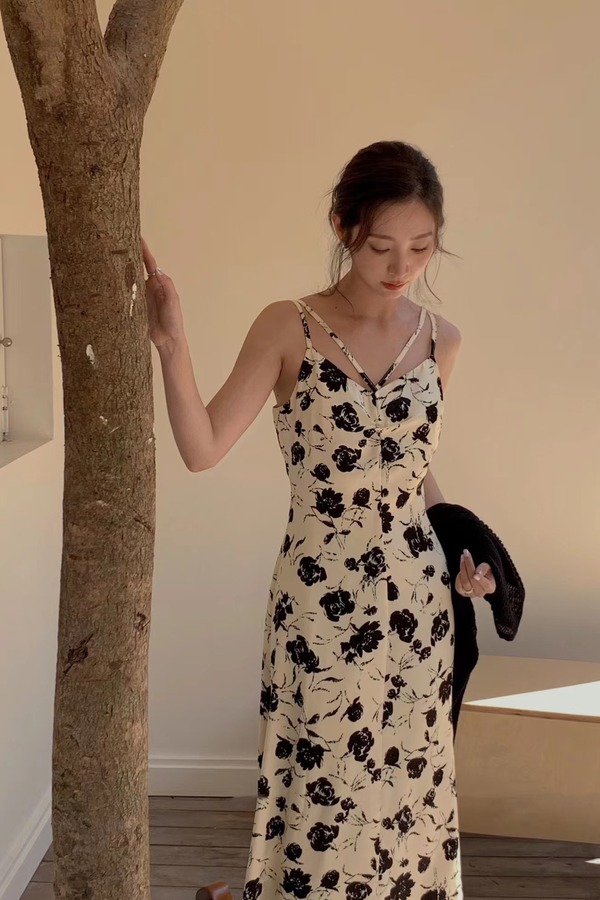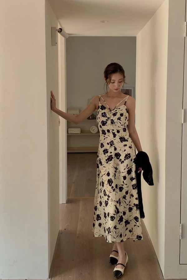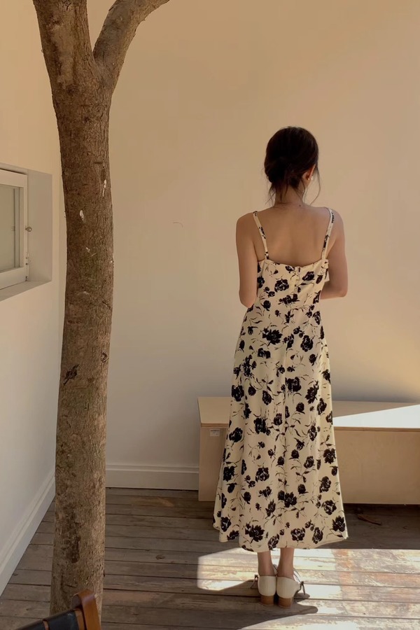SIA SAYLOR 艺术花朵印花吊带连衣裙 18827