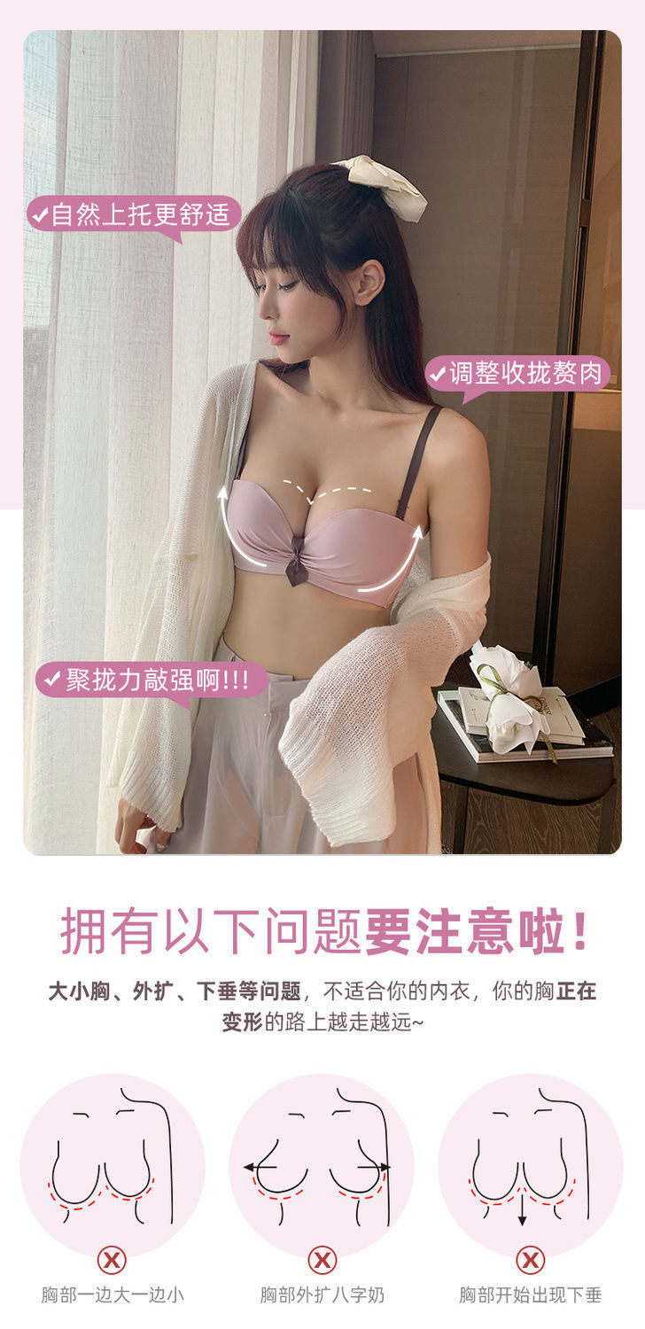 新款秋冬季无痕内衣少女小胸聚拢无钢圈红色本命年性感文胸罩套装