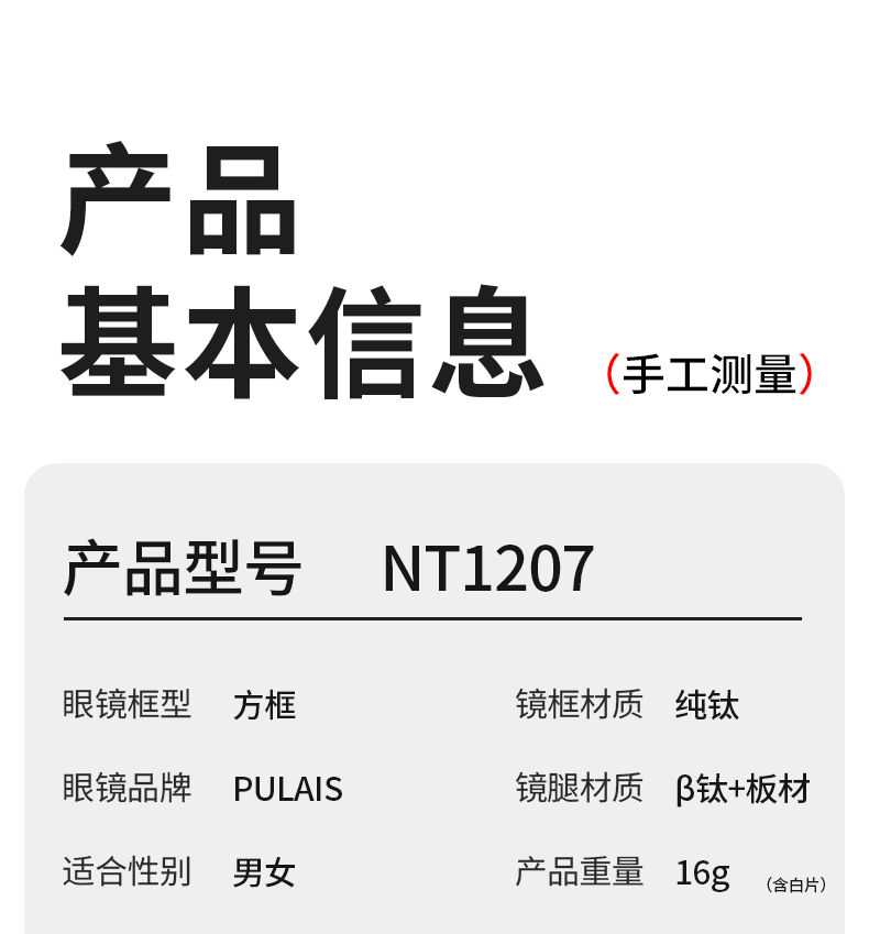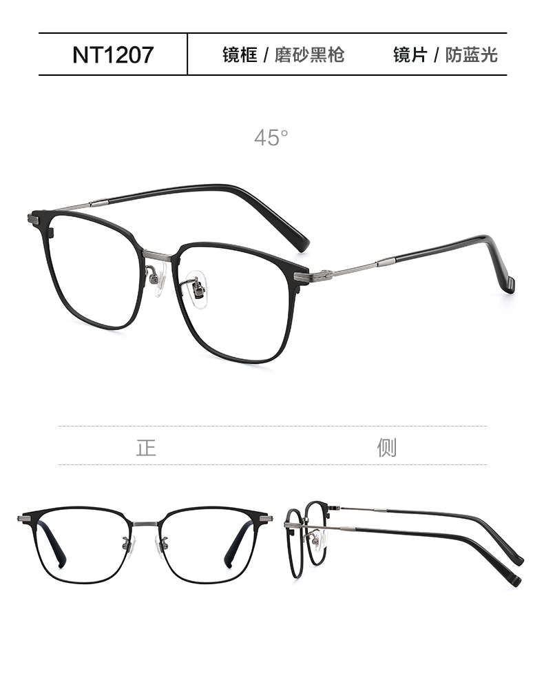 普莱斯光学镜框NT1207 痞帅潮款 时尚修颜 纯钛商务框 三色可选
