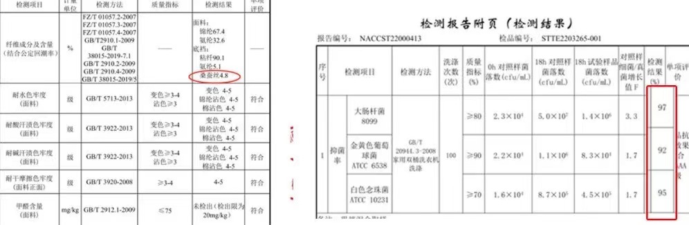 有实在的桑蚕丝含量检测报告、击菌率检测报告(高达97%的击菌率)▼