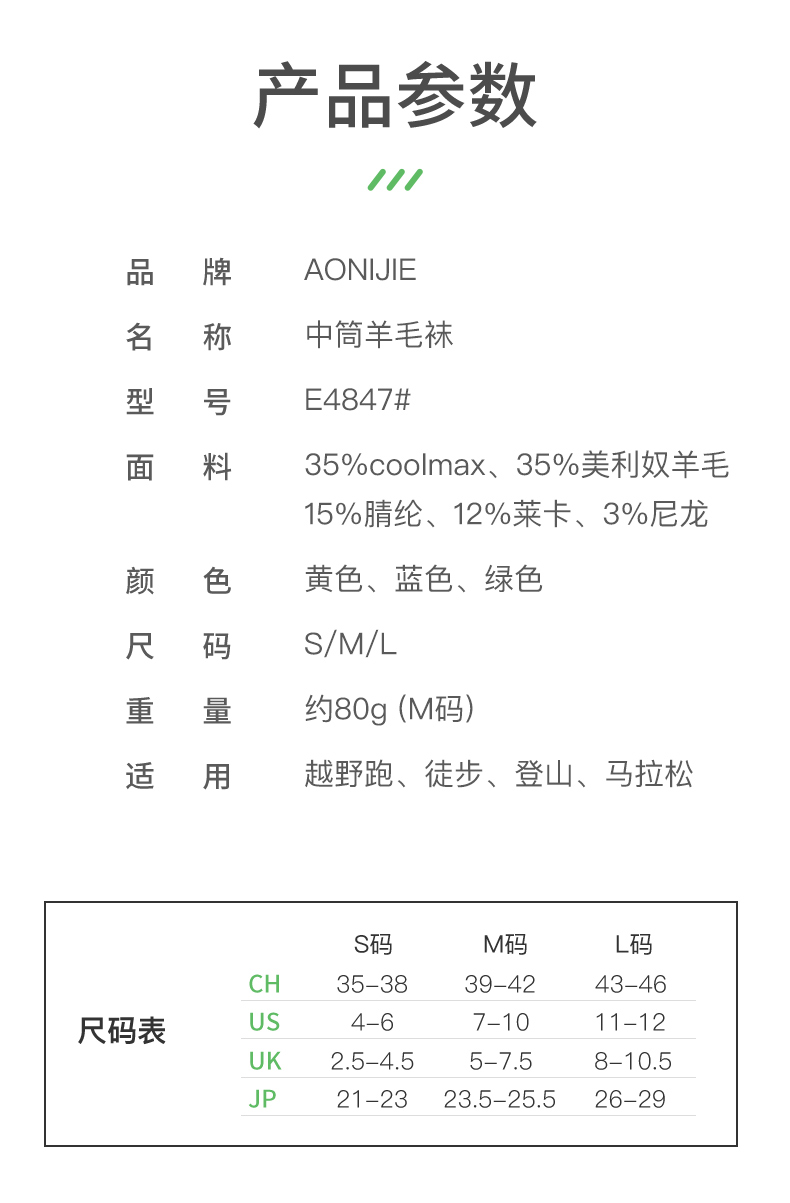奥尼捷美利奴长筒羊毛袜户外登山徒步跑步袜加厚减震越野运动袜男女运动袜