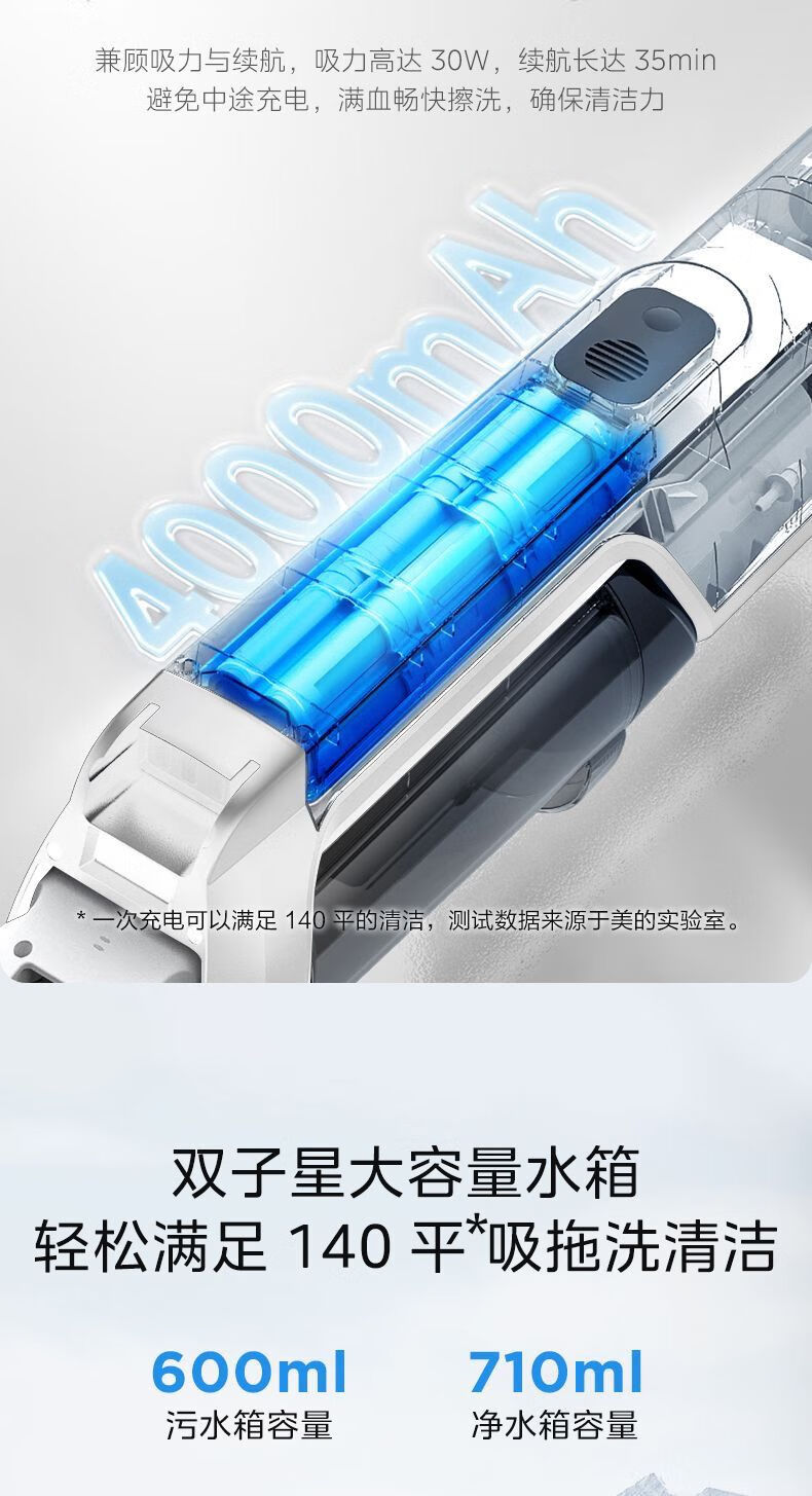 美的(Midea)洗地机FC6无线家用洗拖吸一体机自清洁无尘感 实时电解