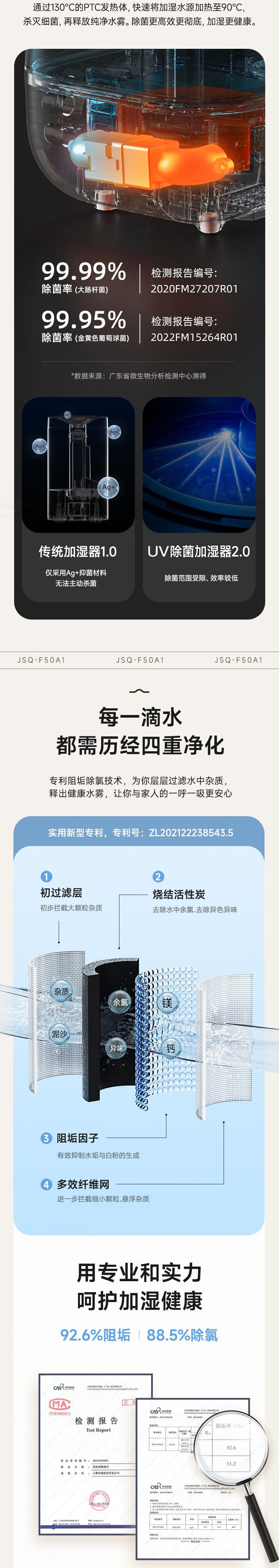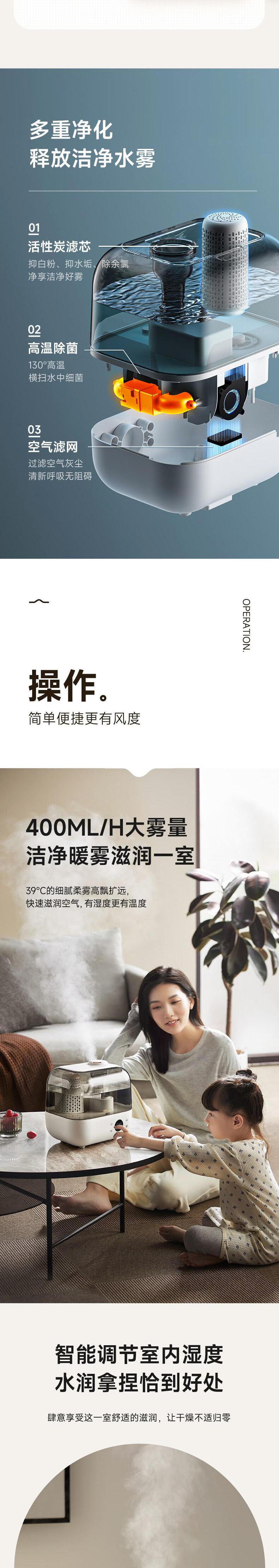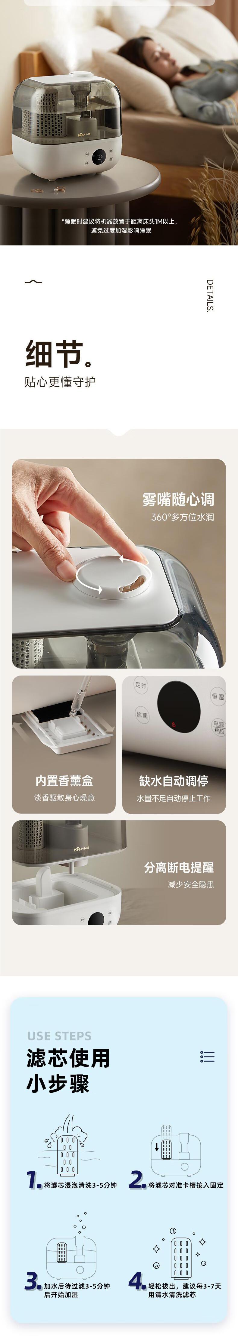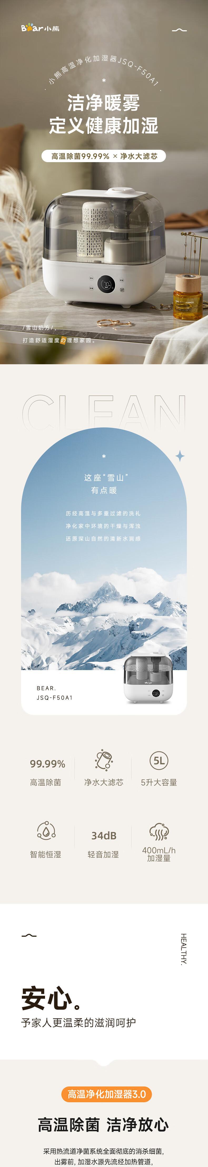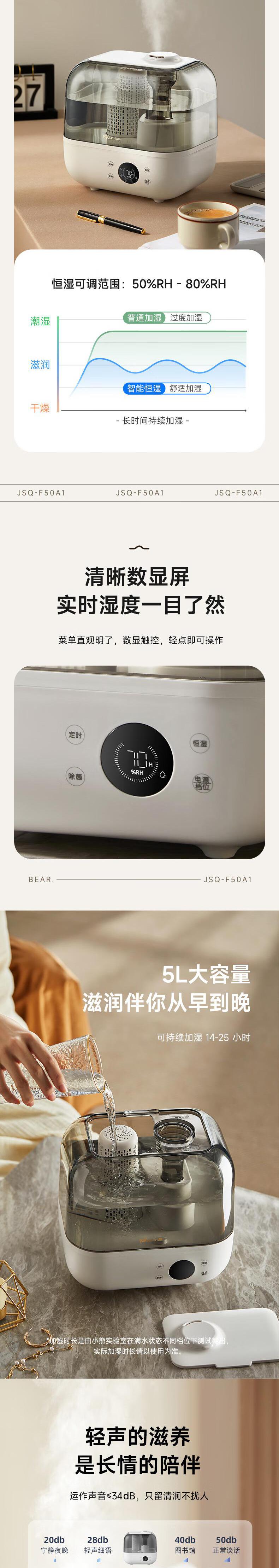 【自营】熊加湿器家用卧室孕妇婴儿净化静空气除菌智能大喷雾加湿机轻音 标准抑菌新款[ JSQ-F50J3银离子抑菌上加水大雾量恒湿睡眠模式