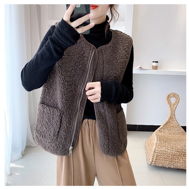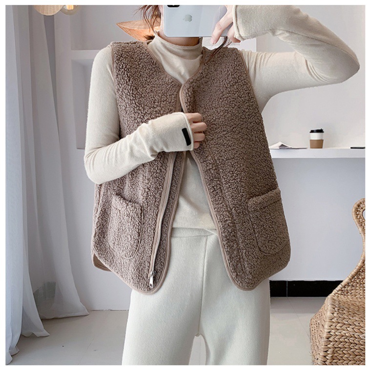 拉链羊羔毛马甲背心女一体外搭显瘦秋冬新款洋气潮流时尚外穿马夹