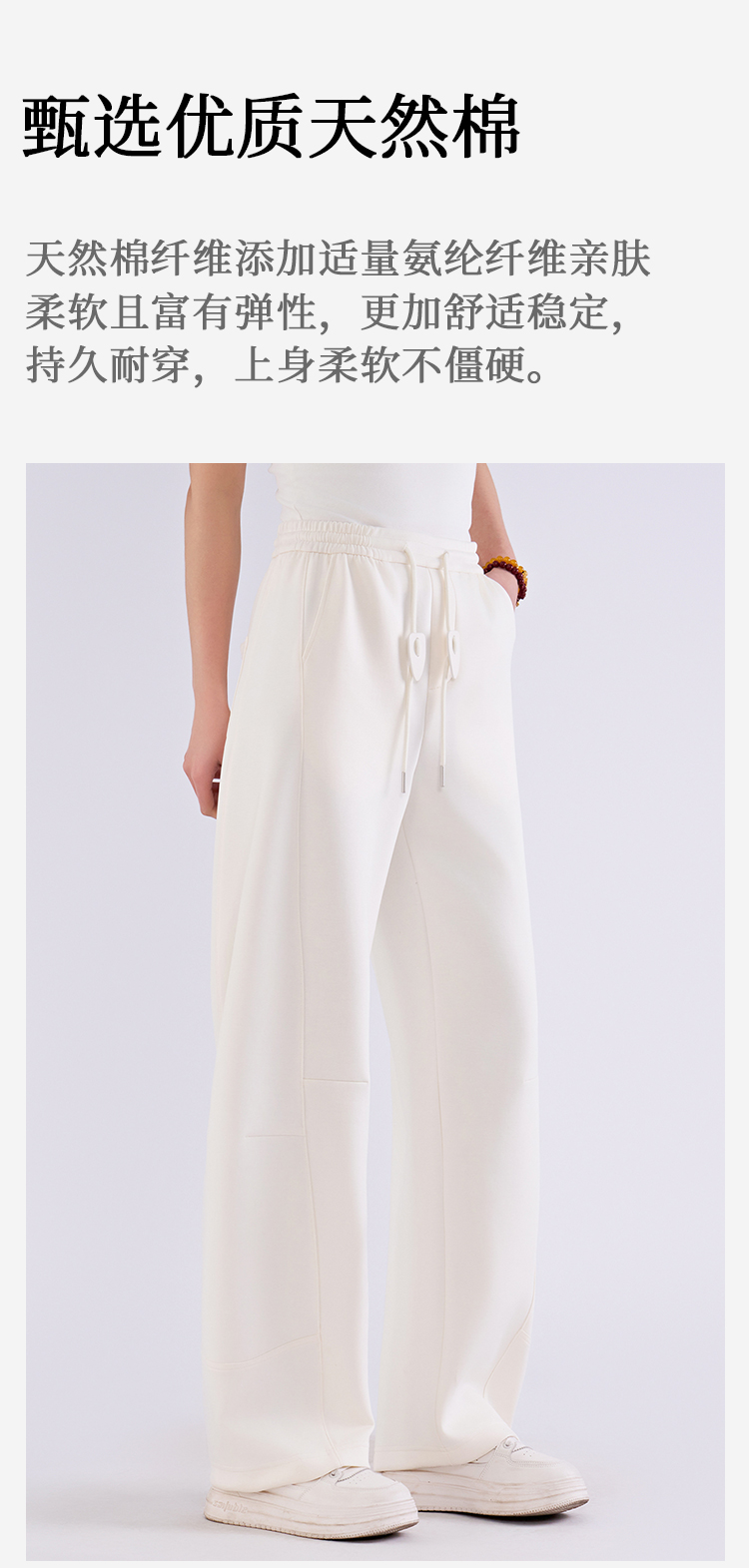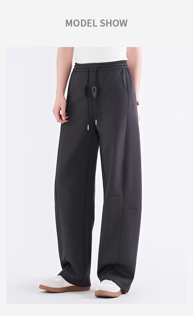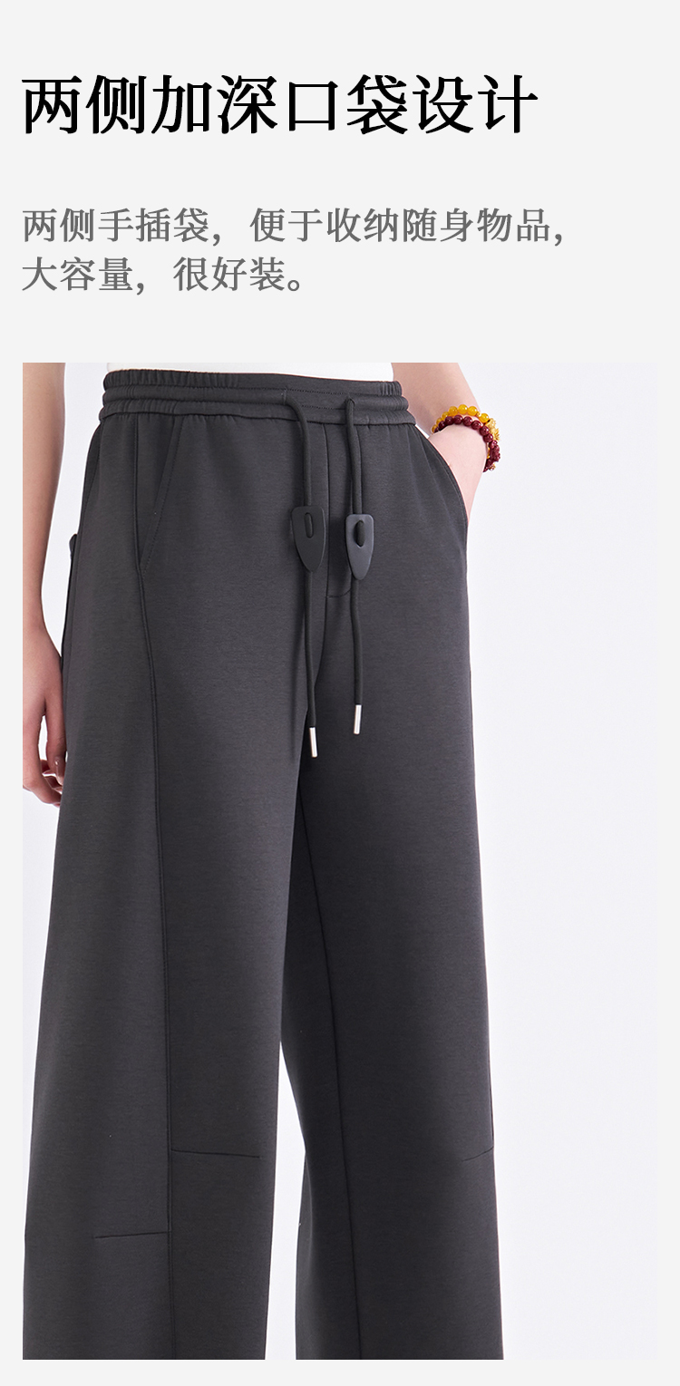 初春新款 女款空气棉莫代尔休闲裤 弯刀直筒拼接设计裸感运动长裤 显瘦修饰腿型女装