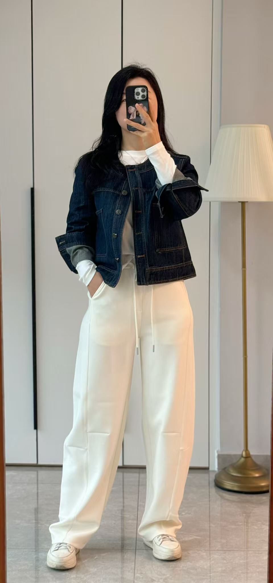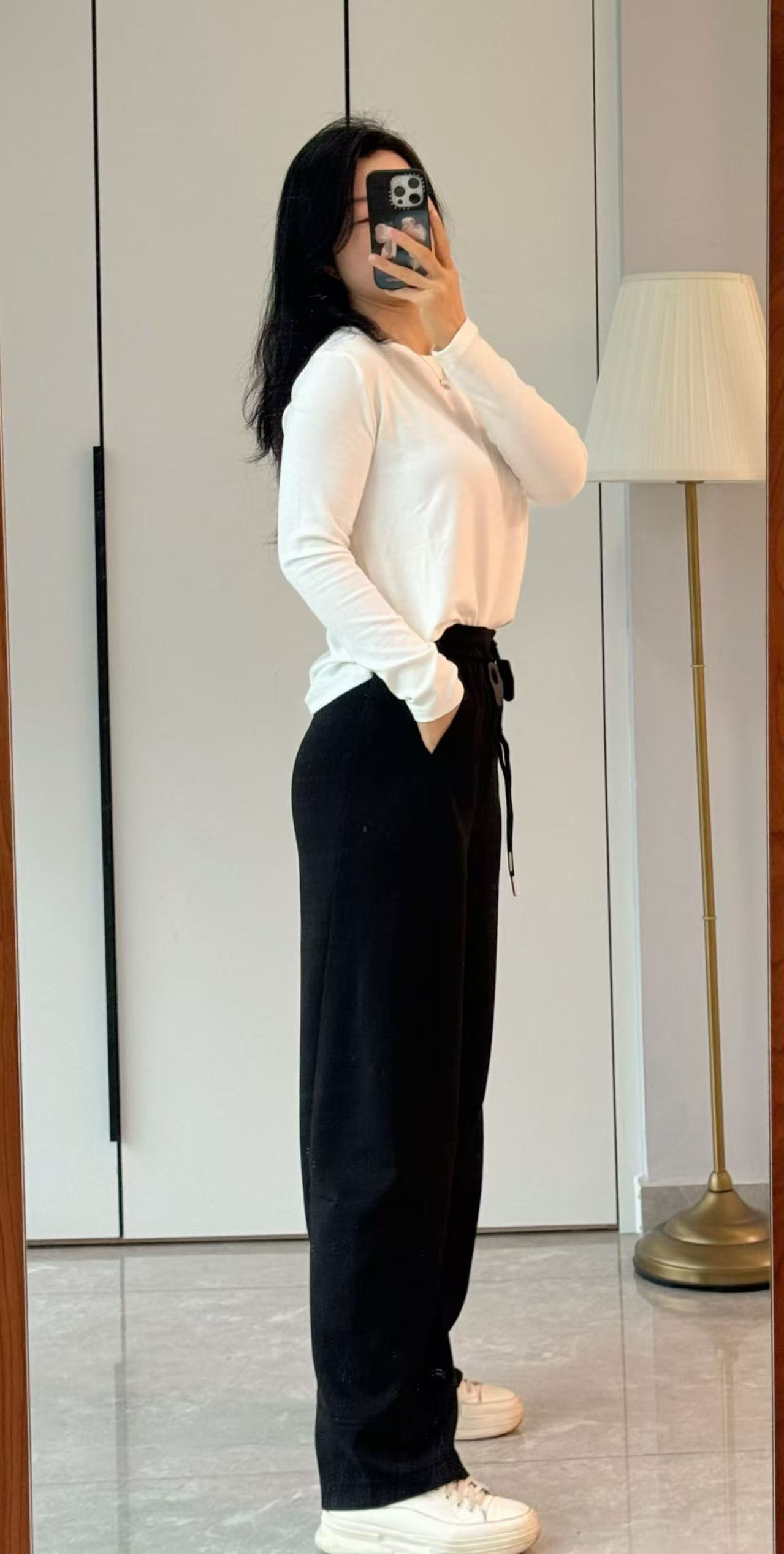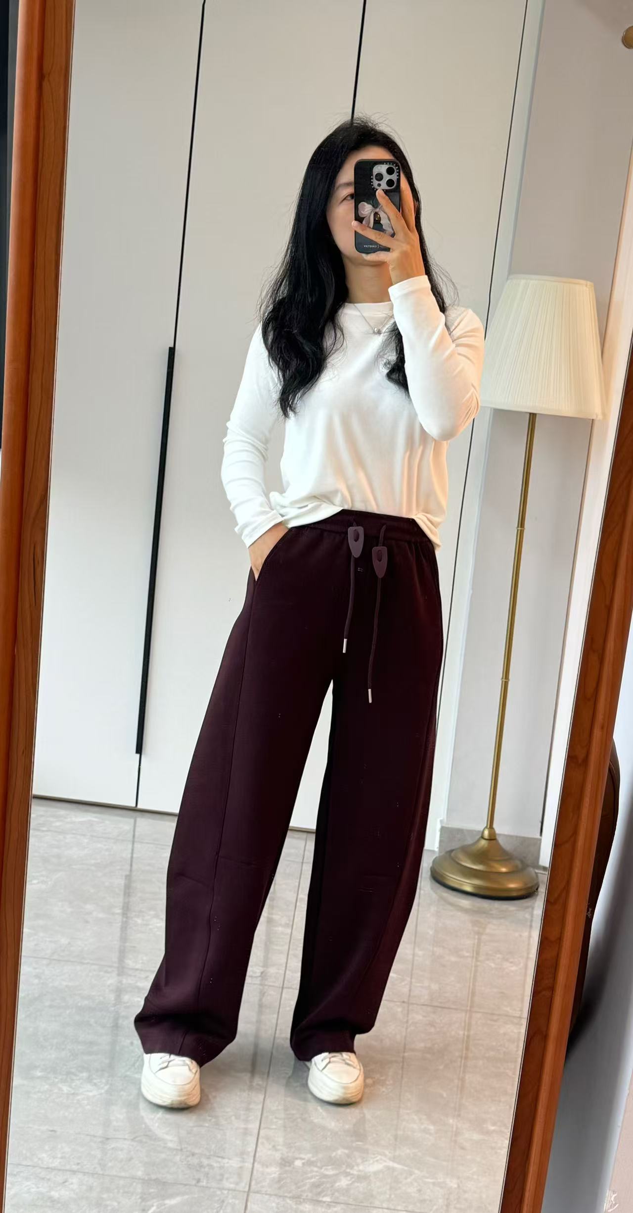 初春新款 女款空气棉莫代尔休闲裤 弯刀直筒拼接设计裸感运动长裤 显瘦修饰腿型女装