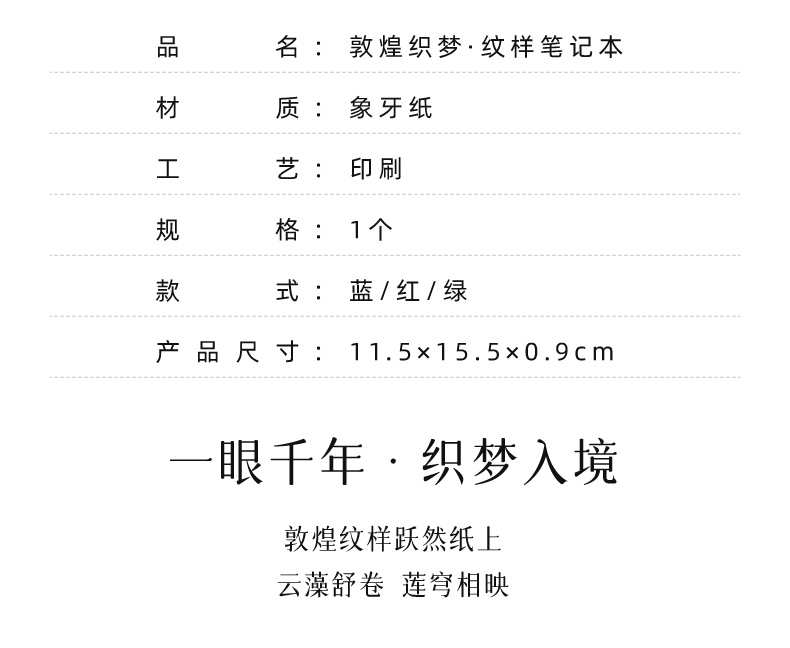 敦煌研究院 【敦煌织梦纹样笔记本】 博物馆文创本子记事本手账本学生便携式本子办公室笔记本中国风本子个性创意