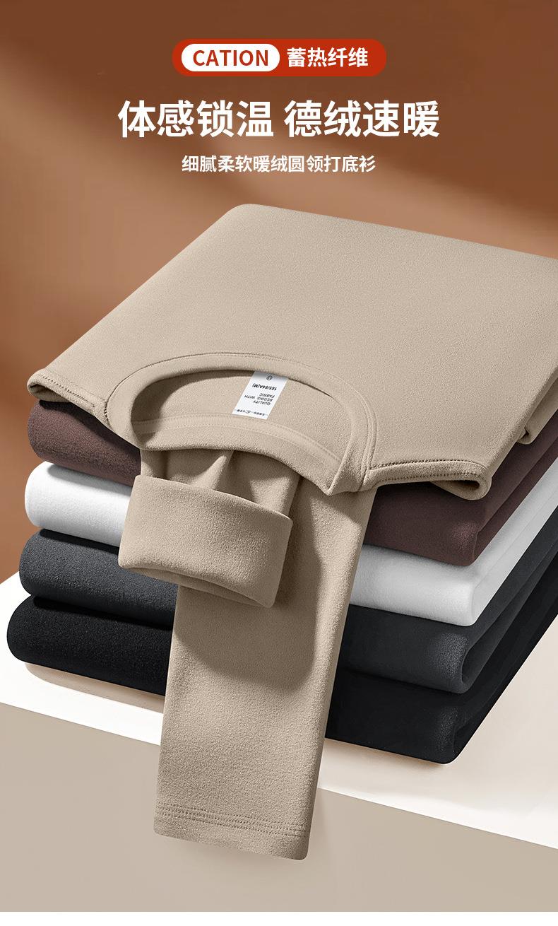 【10A抗菌德绒圆领上衣】青年男士秋冬季厚款保暖加绒长袖t恤上衣