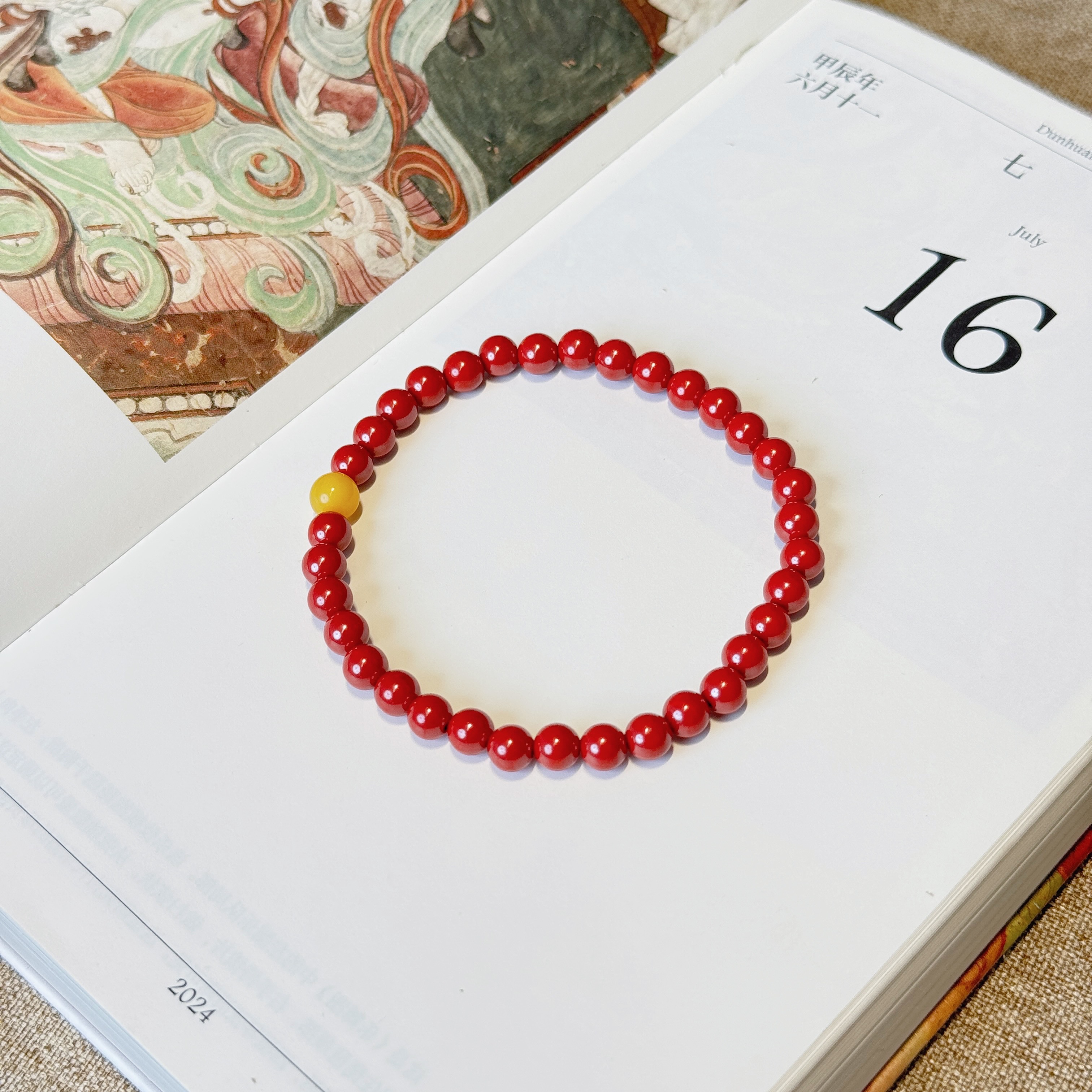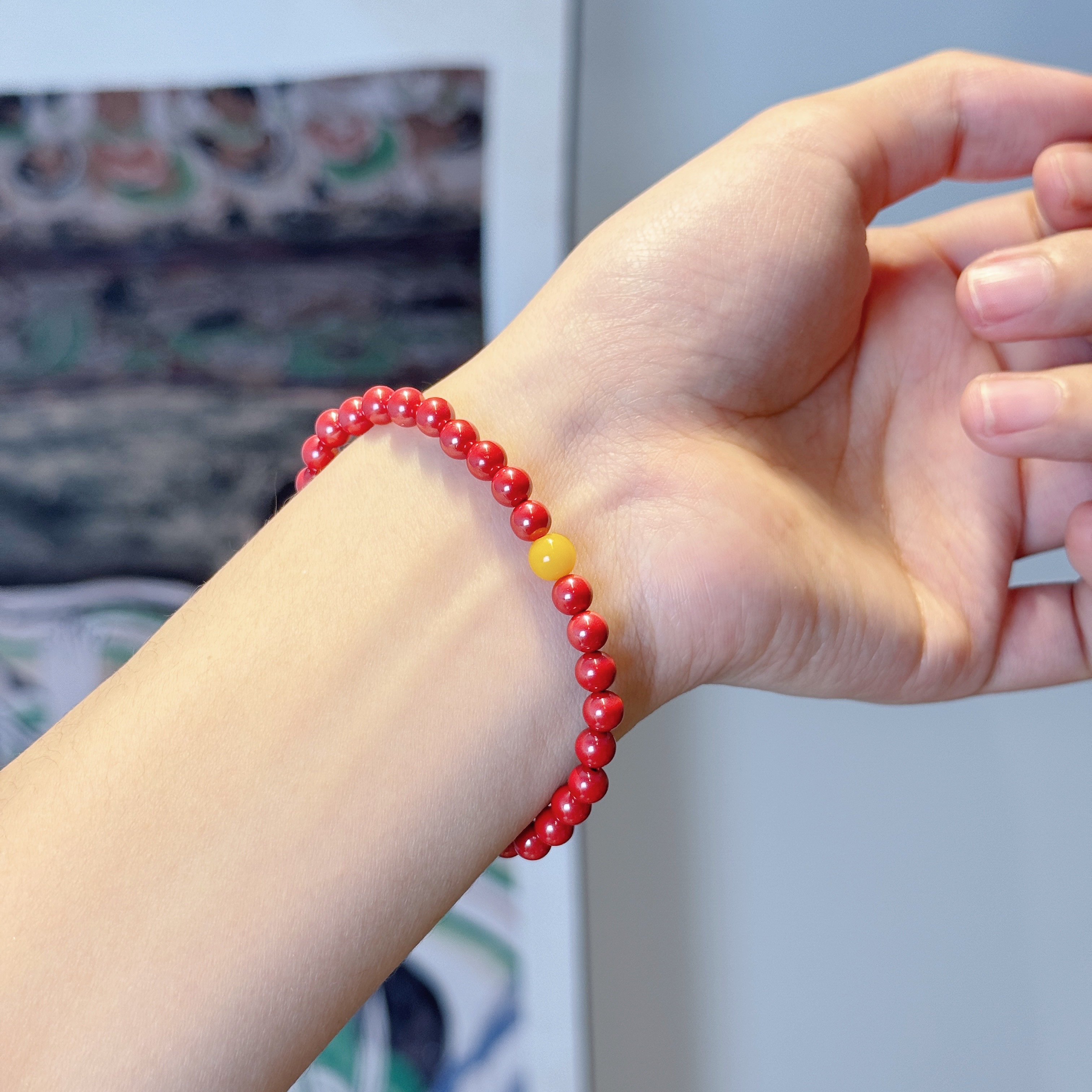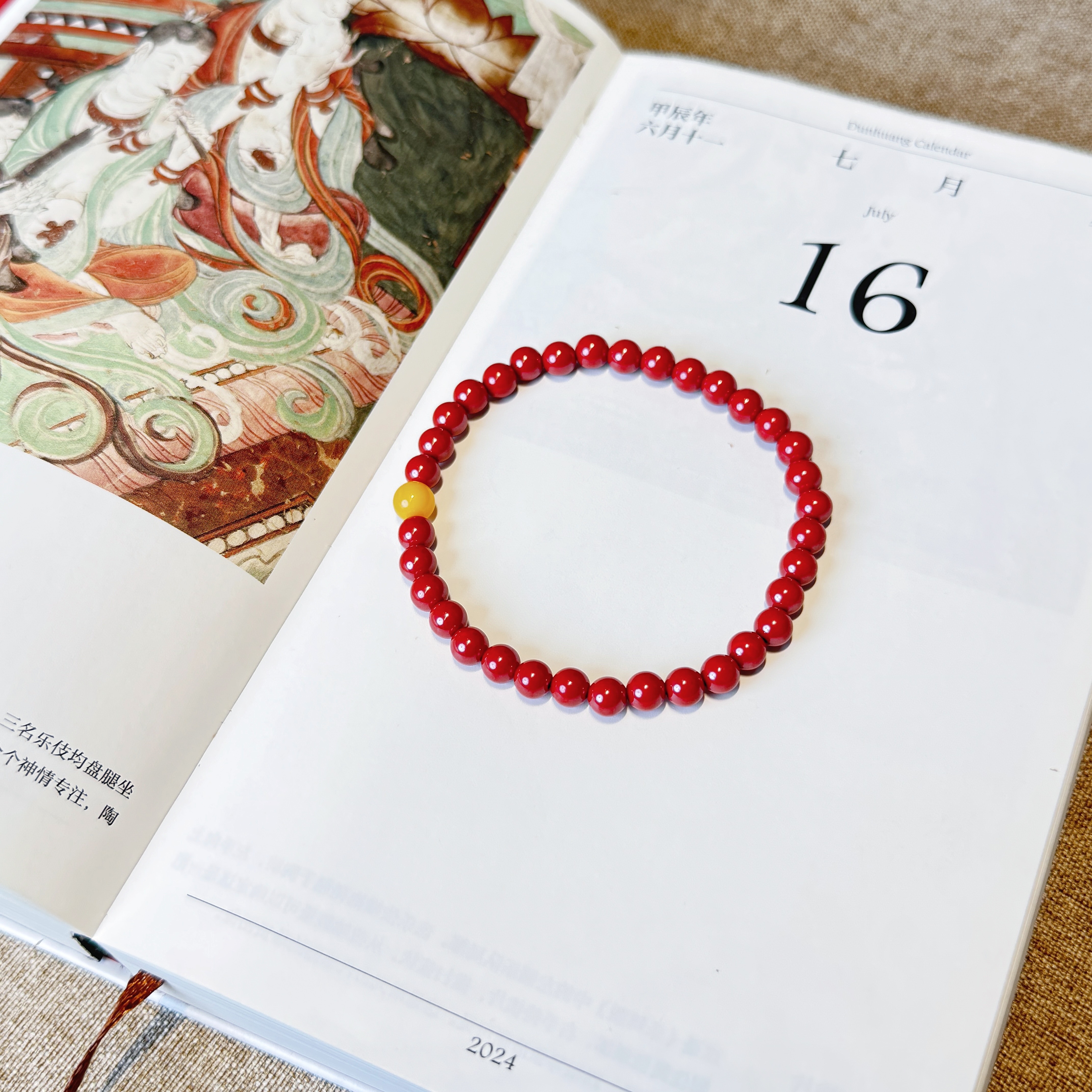 【玲珑·帝王砂蜜蜡手串】敦煌福泽小众帝王砂手链蜜蜡红色国风本命朱砂手串