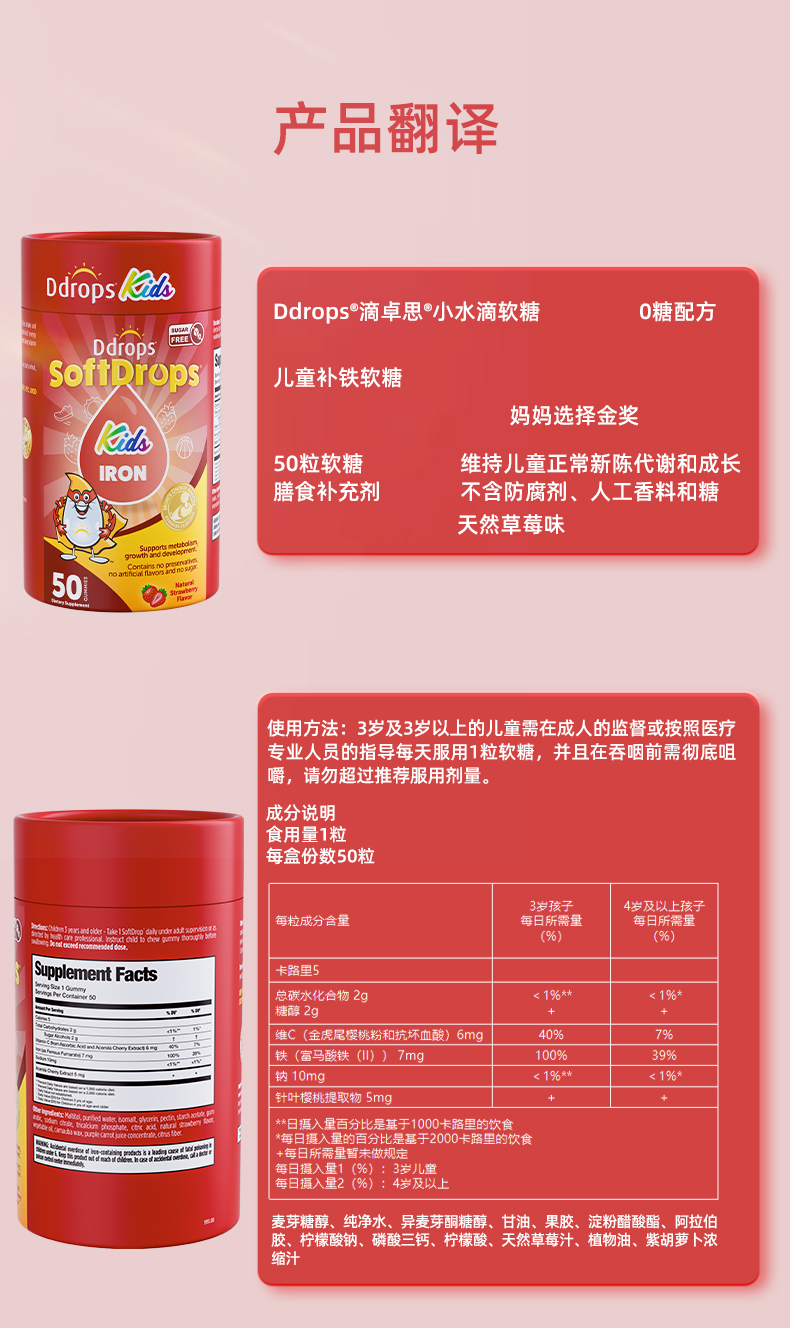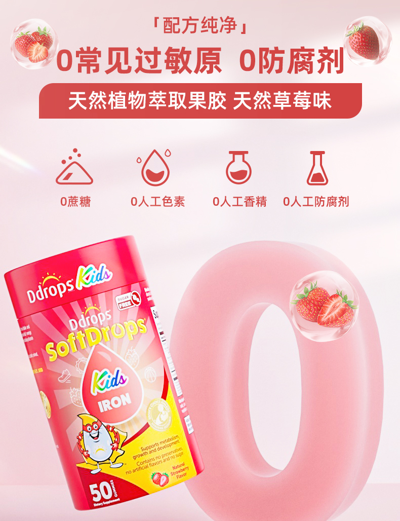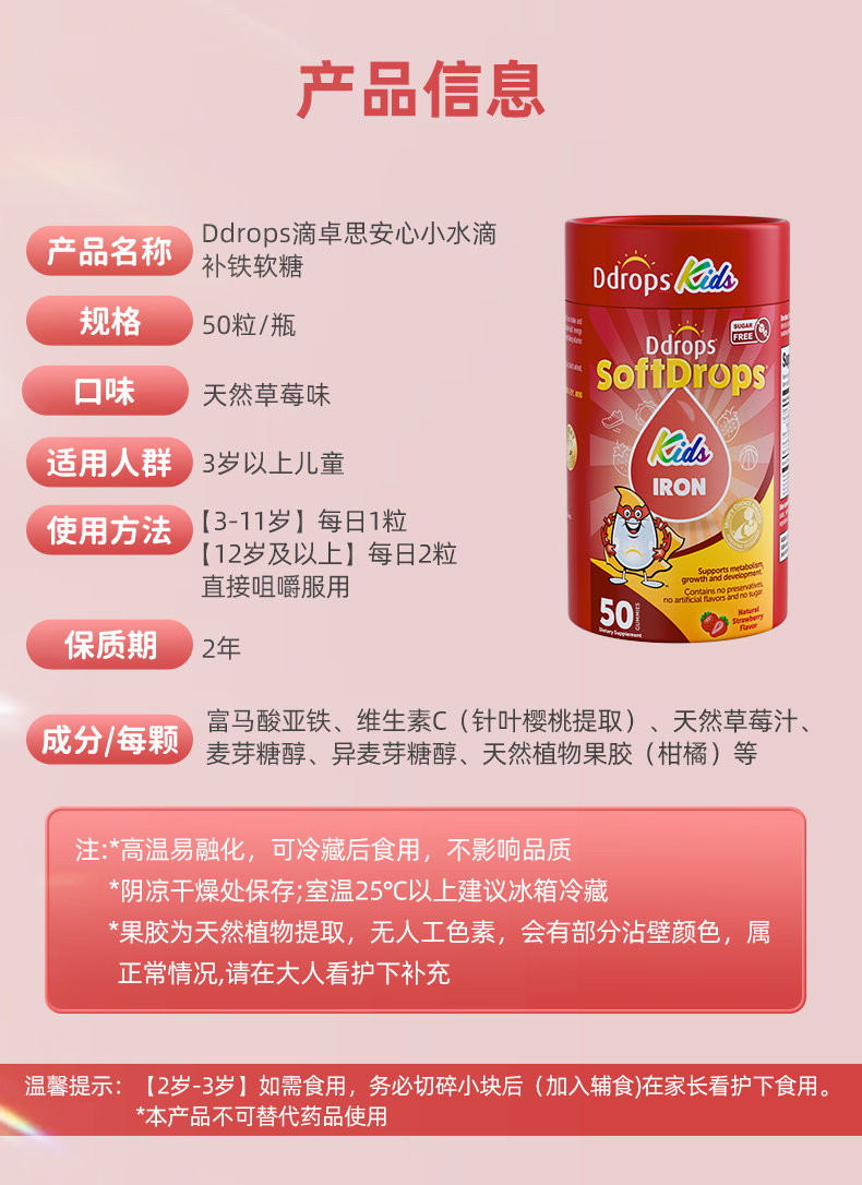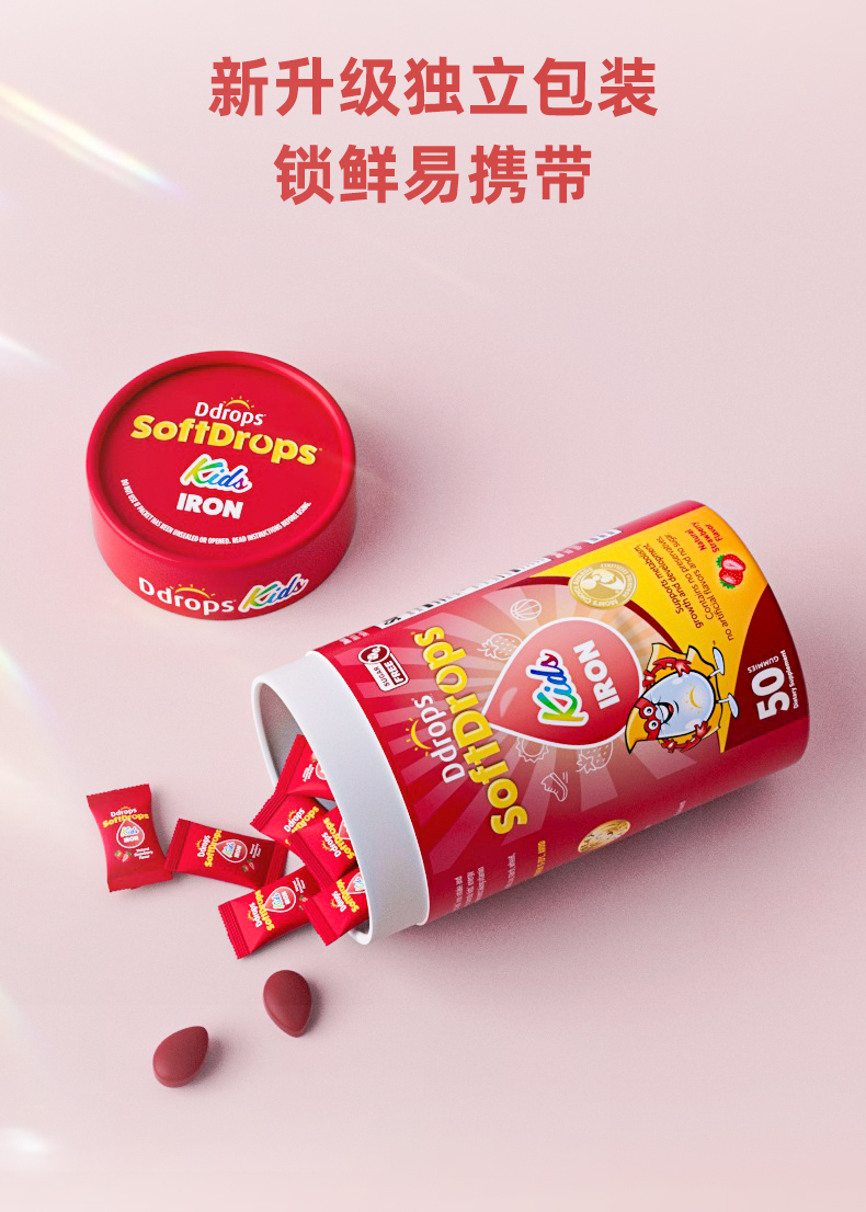 Ddrops滴卓思儿童无糖型补铁软糖50粒/罐