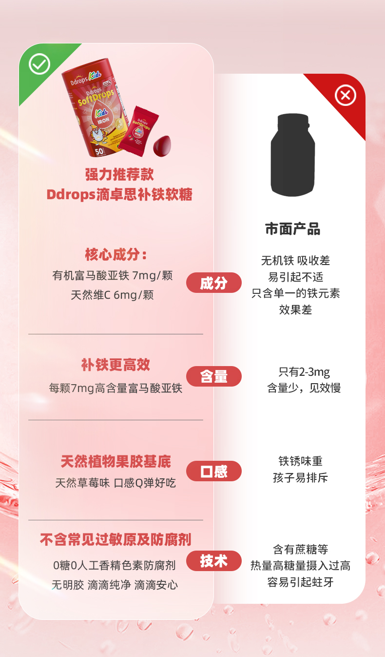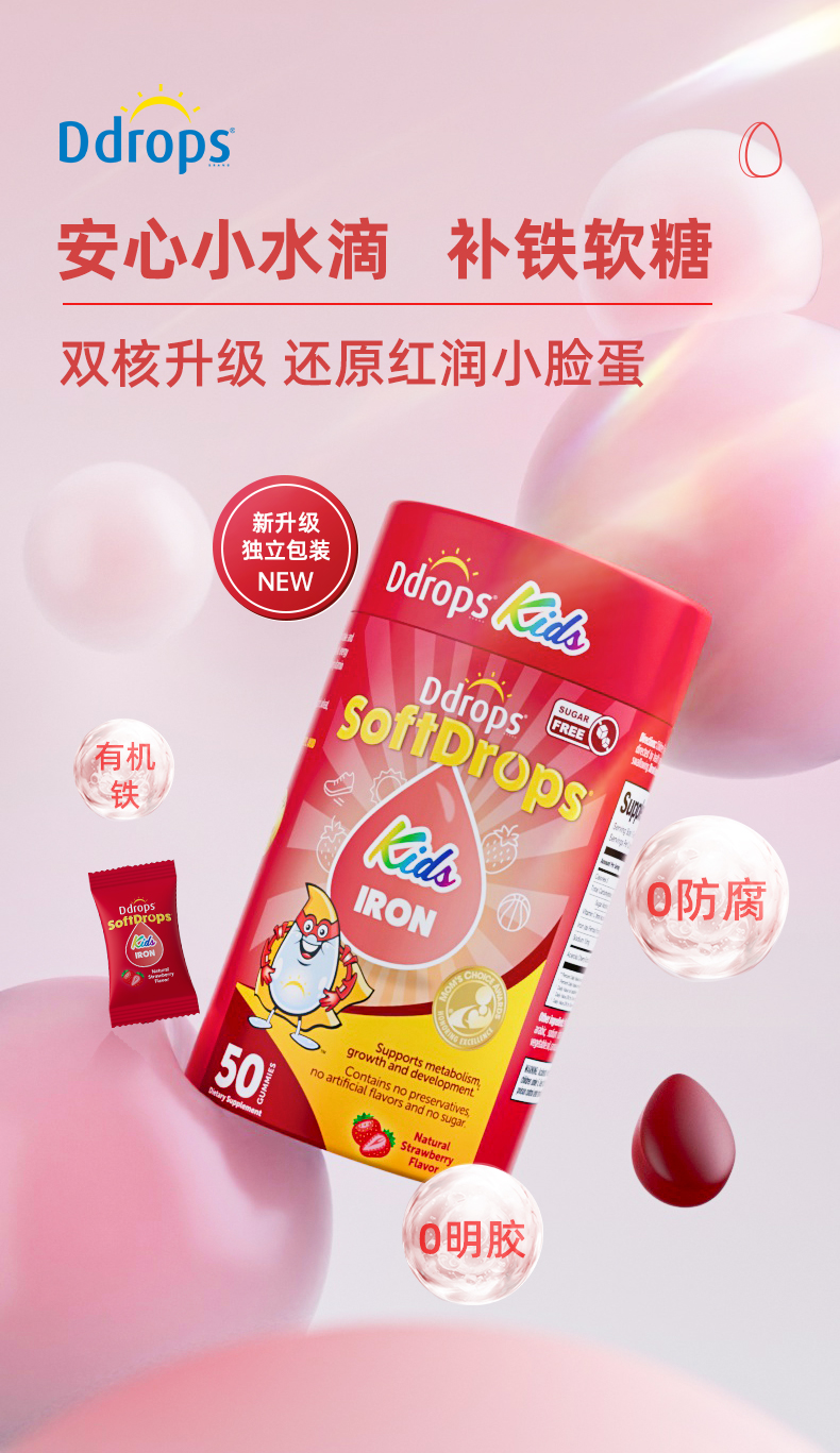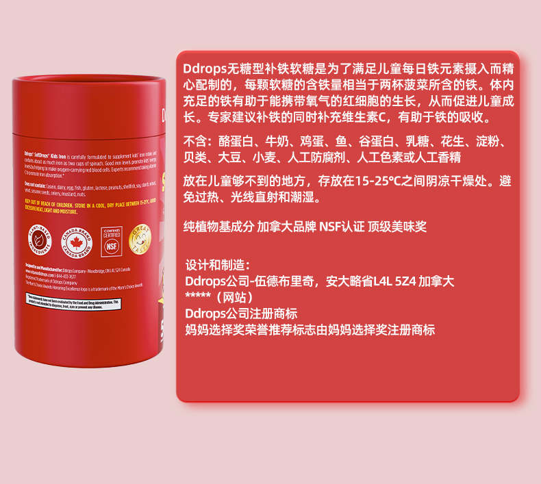 Ddrops滴卓思儿童无糖型补铁软糖50粒/罐