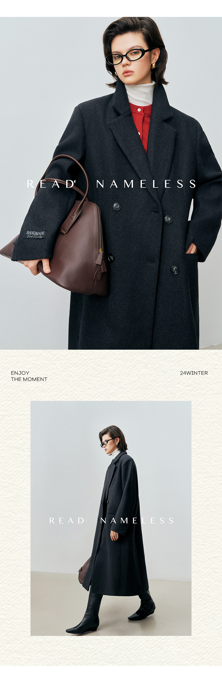 Read Nameless /黑灰色气场双面斜纹羊毛大衣 2024/10/17