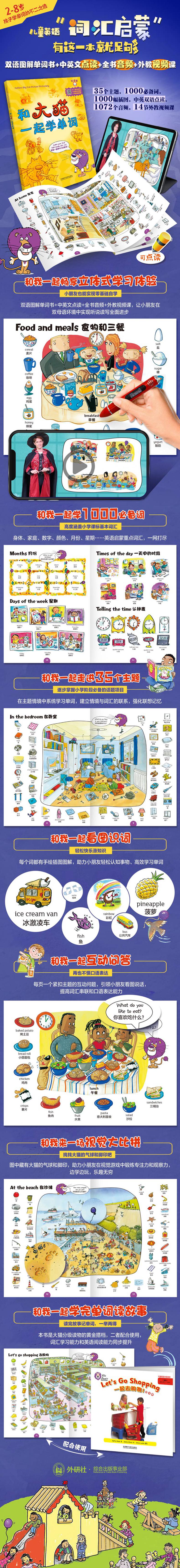 这是专门为2-8岁儿童编写的英语启蒙单词书,与大猫分级读物(教育部重点课题 “中国中小学生英语分级阅读体系标准研制” 实验用书)一脉相承。可爱活泼的大猫带领小朋友们一起在词汇的海洋中遨游、学习。本书以场景和主题来划分,配以精美的插画,方便小朋友看图识物、看图学词,帮助小朋友系统地认知身边的事物、学习日常必备的单词。插画精美,画风清新可爱,大图细节丰富,小朋友们可以看图说话,与大猫进行互动问答,锻炼口语表达,还可以在大图中寻找大猫的气球和脚印,边学边玩儿,其乐无穷。本书是大猫分级读物的黄金搭档,学单词、读故事,相辅相成,一举两得。全书可点读,中英文发音准确地道。没有点读笔的小朋友也不用担心,本书还配有同步双语音频,扫码即得。本书还有14节配套外教动画视频课,外教变身魔法师,配上灵动有趣的动画,让小朋友们从此爱上学单词。图、文、音、画全面助力英语启蒙,这是一本小朋友一见倾心的宝藏图书!