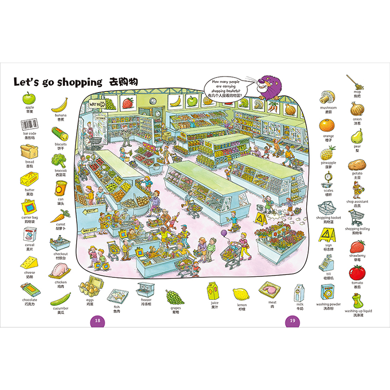· 插图精美:1000多幅生动活泼的彩色插图,图中的细节丰富有趣,有助于激发小朋友的学习兴趣、提高看图识词的能力