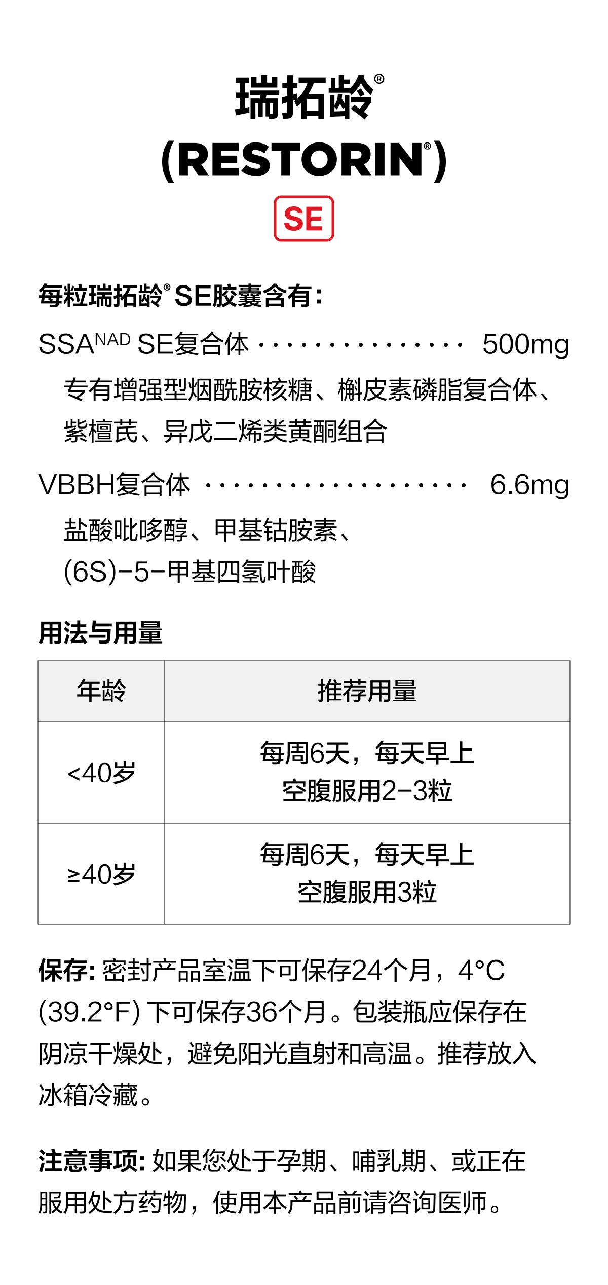 瑞拓龄RESTORIN SE赛诺根制药 国药赛诺根衰老抑制剂双瓶装