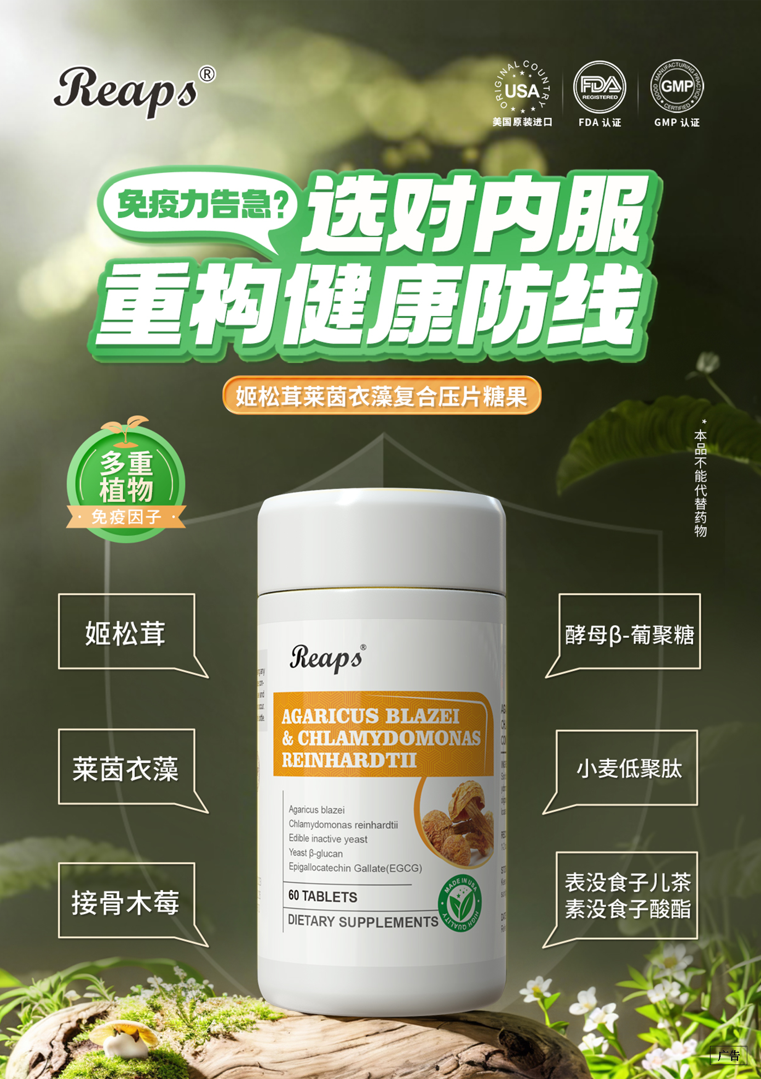 Reaps 瑞普斯 姬松茸莱茵衣藻复合压片糖果 60片/瓶