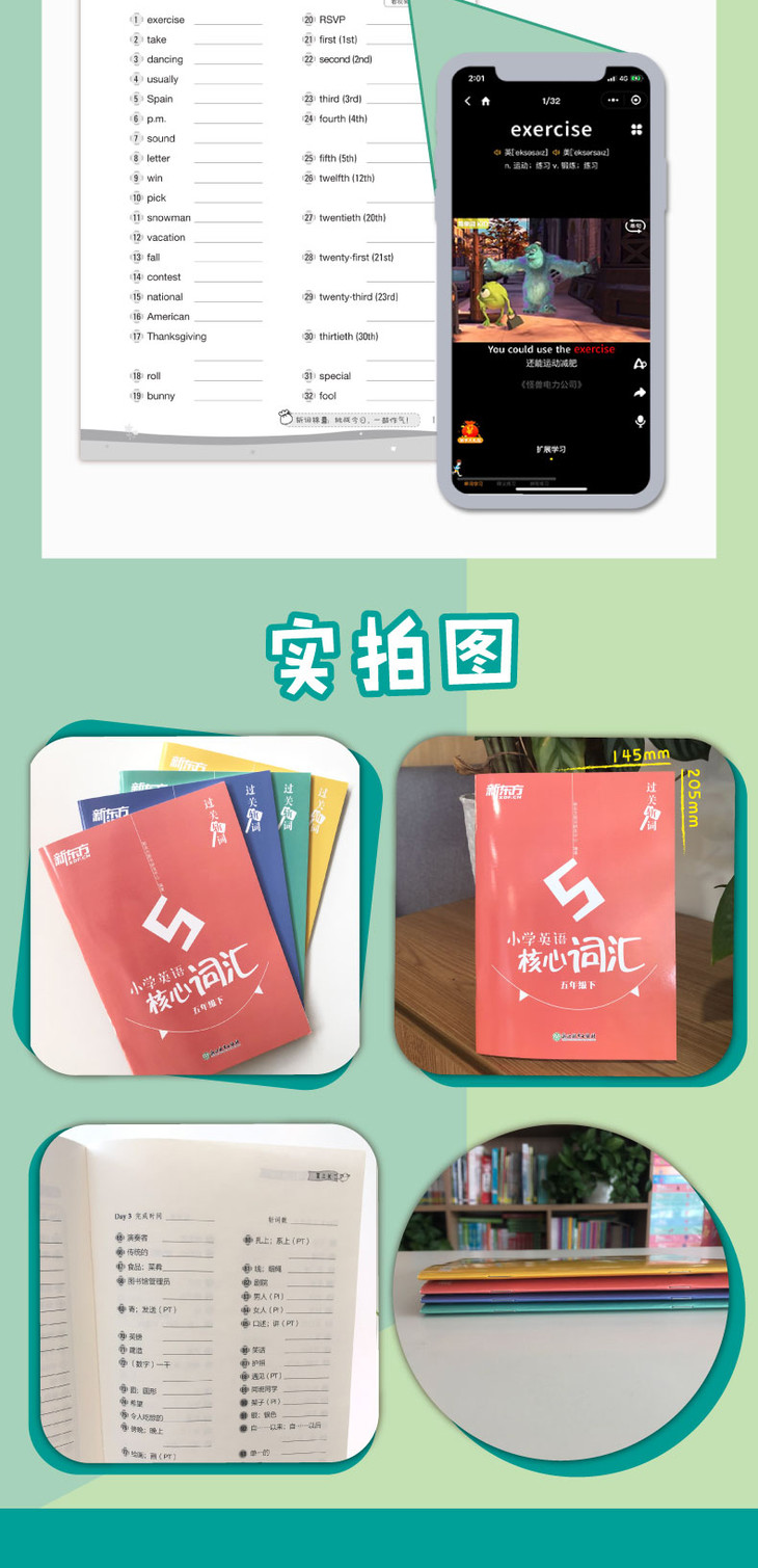 过关斩词:小学英语核心词汇五年级下 小学生考试英语基础入门 单词记忆 常用词汇知识大全书籍 主流教材核心词汇短语 新东方英语