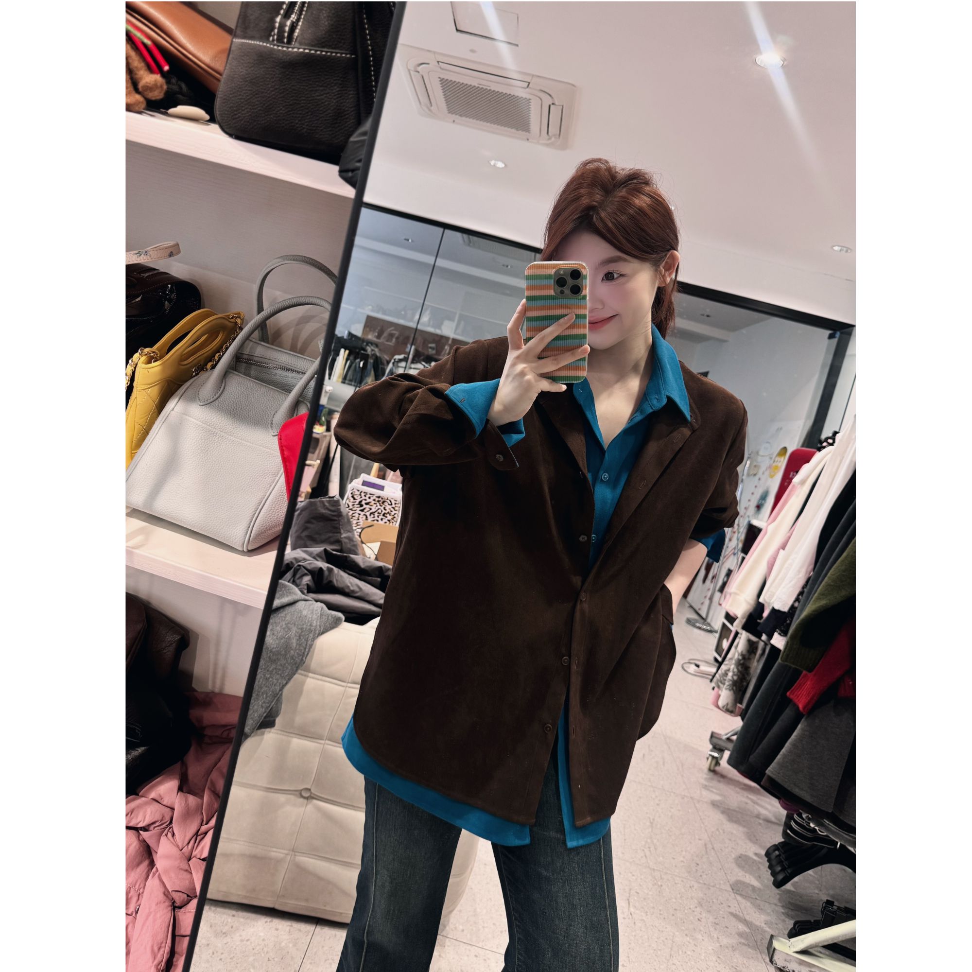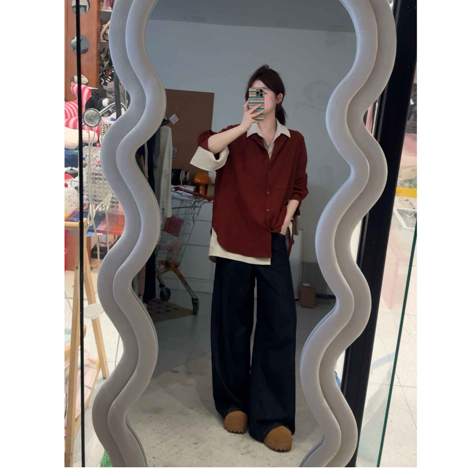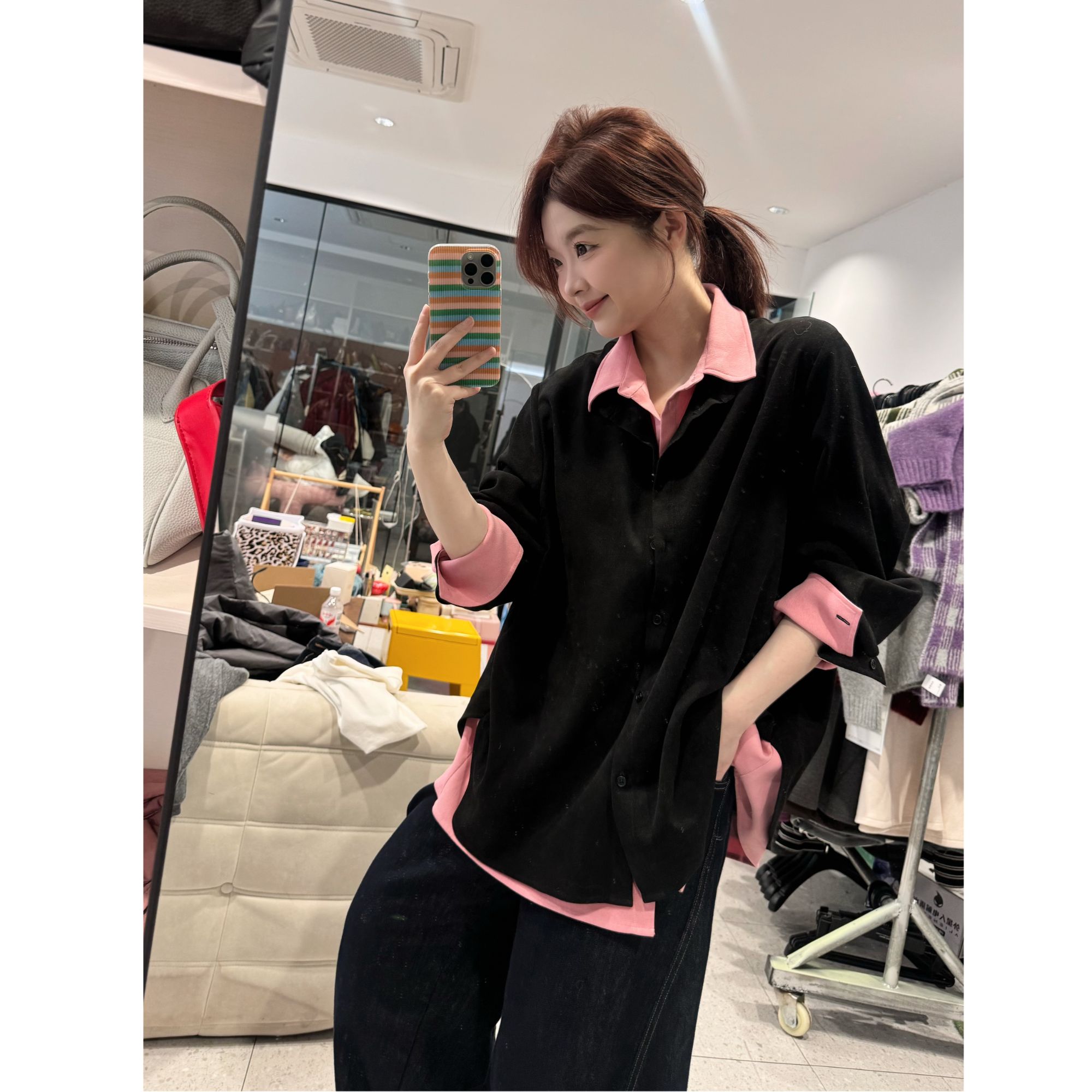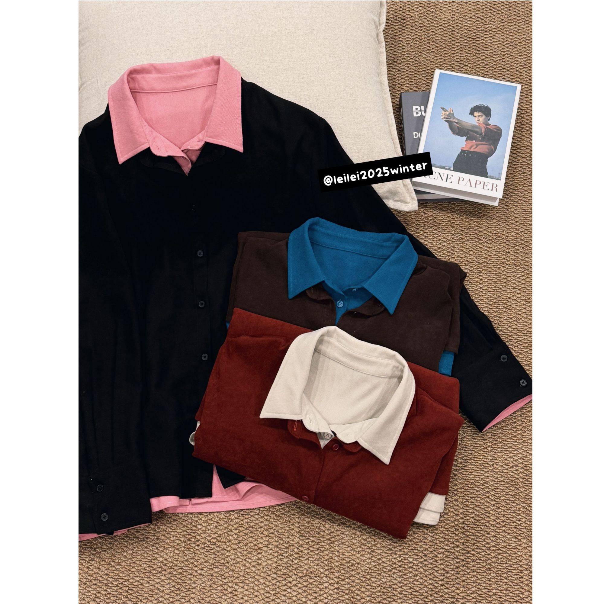 25AW上新 蕾蕾同款【双生花!】冬季撞色拼接假两件宽松衬衫外套